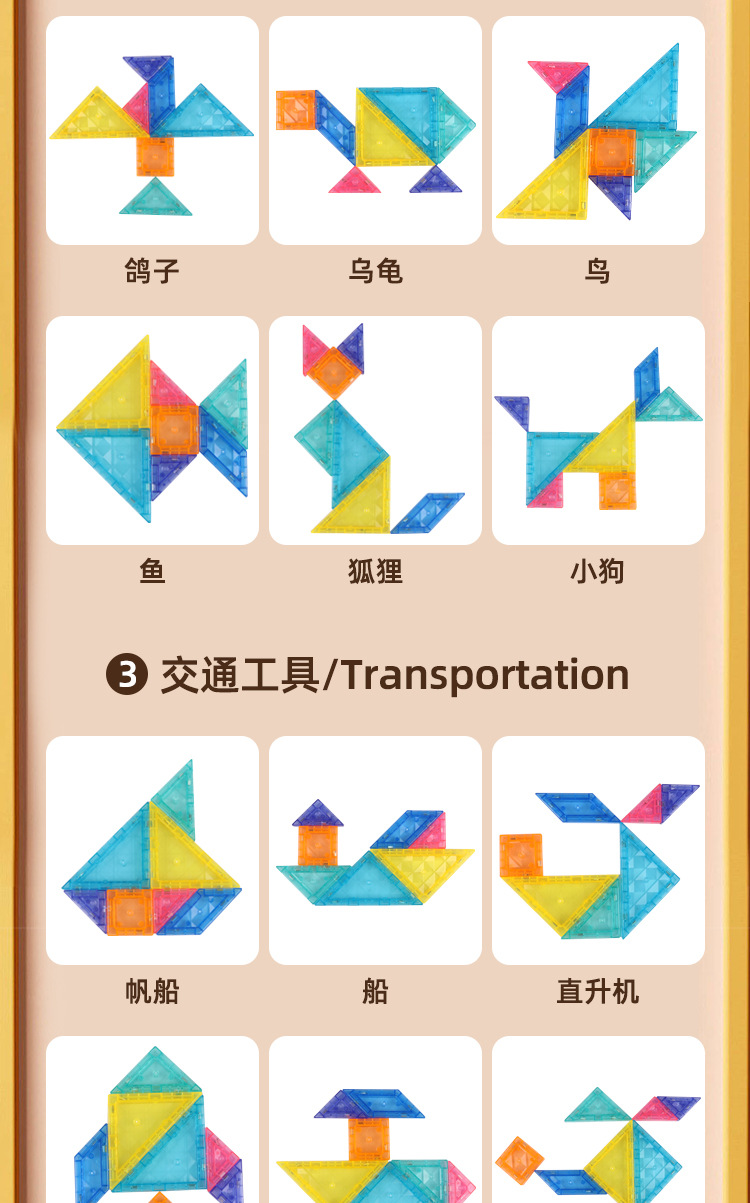 跨境儿童磁力七巧板宝宝认知早教益智立体拼图拼板积木玩具批发