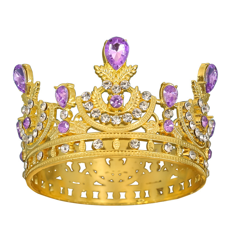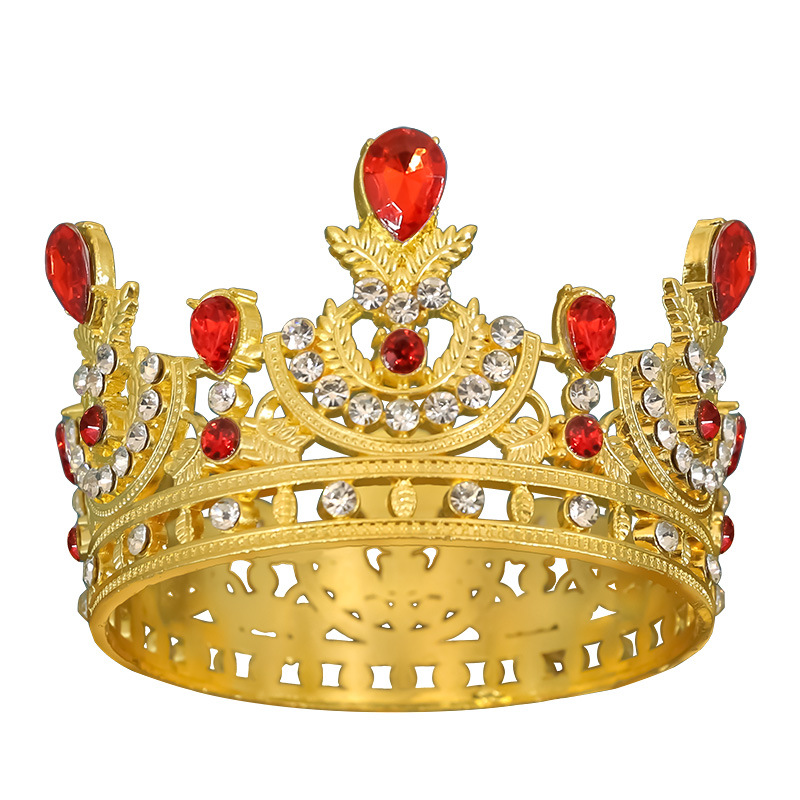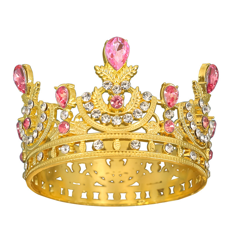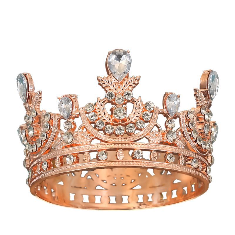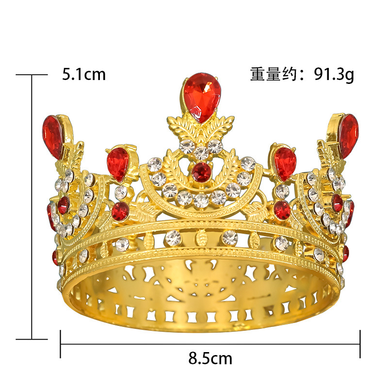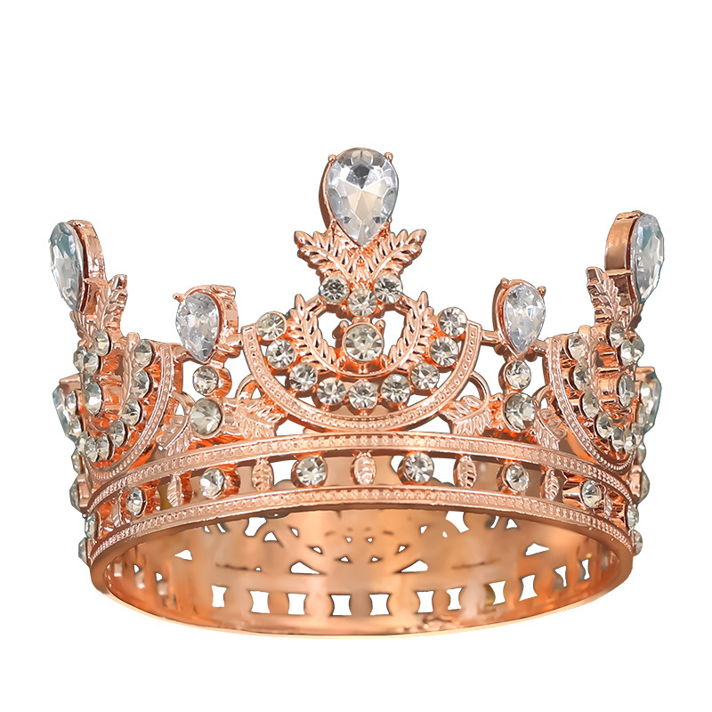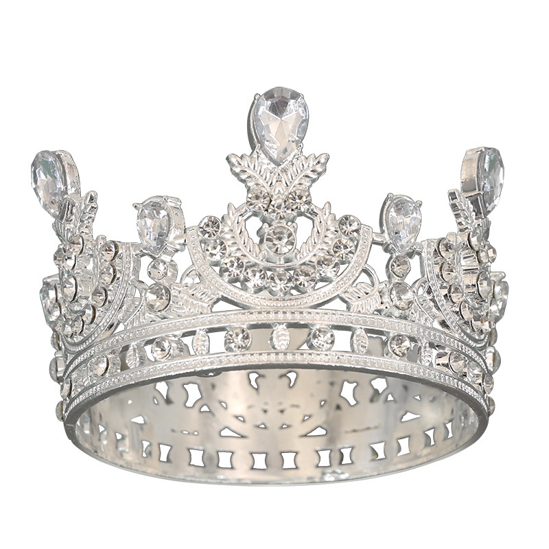 原创新款跨境鲜花装饰水滴皇冠精美合金圆王冠生日派对蛋糕装饰