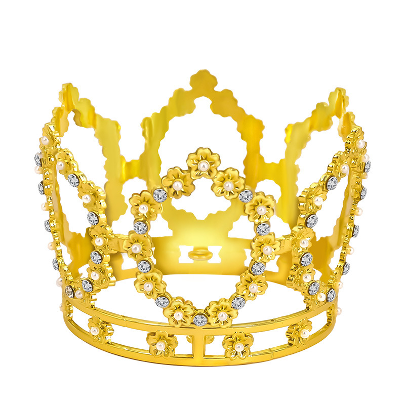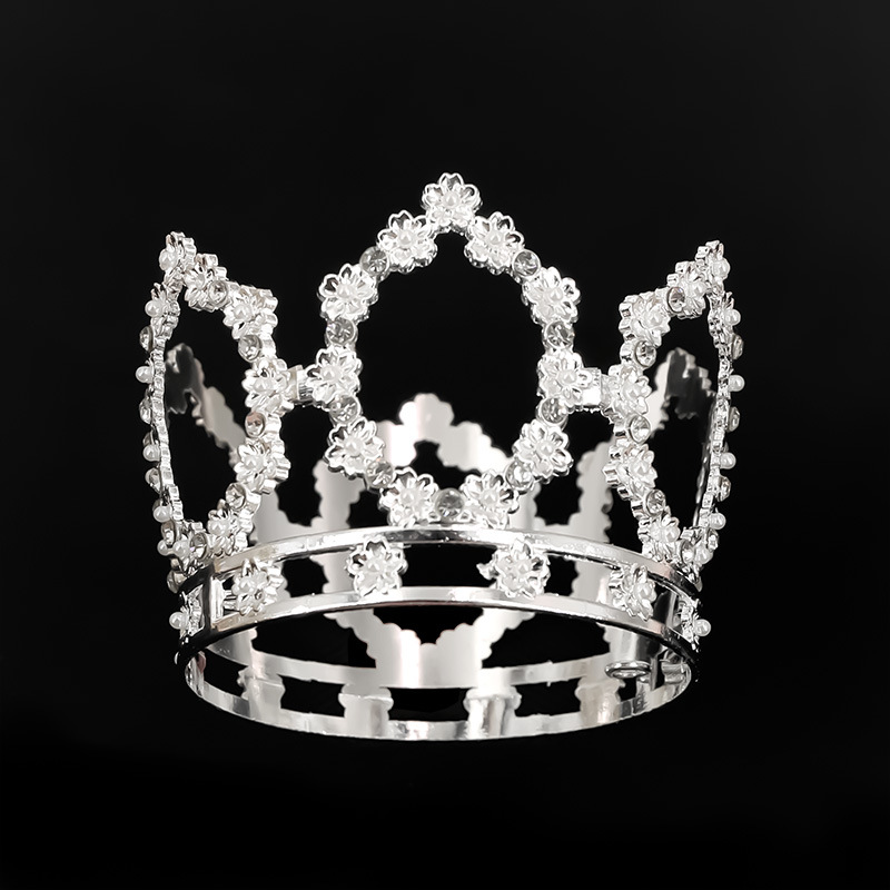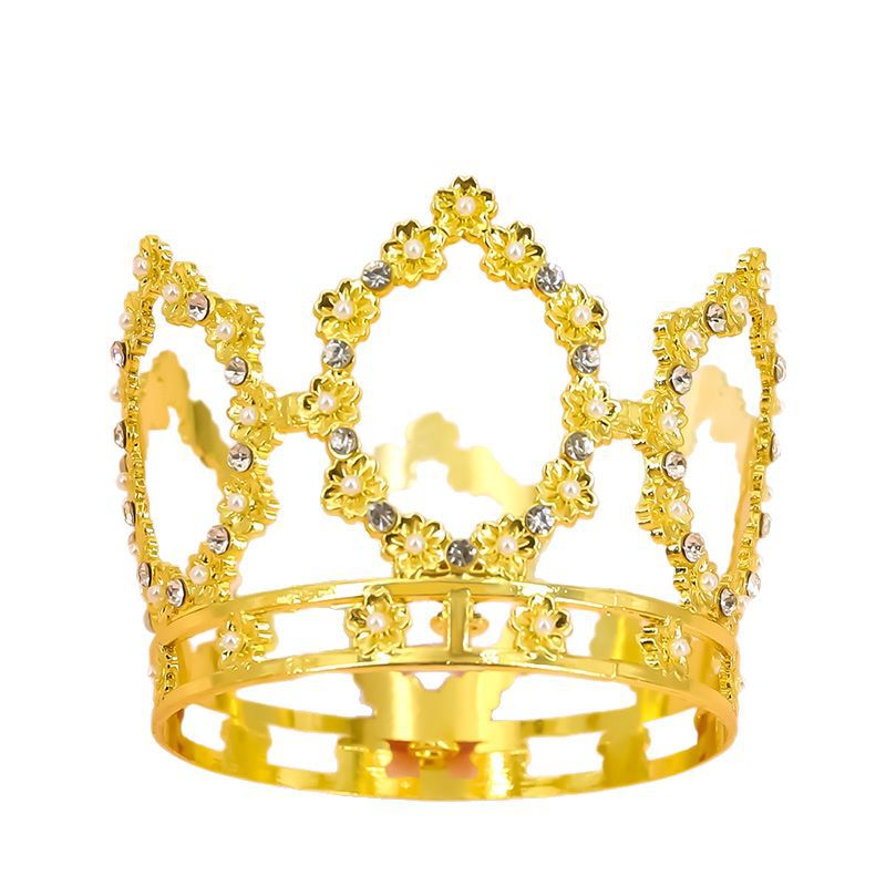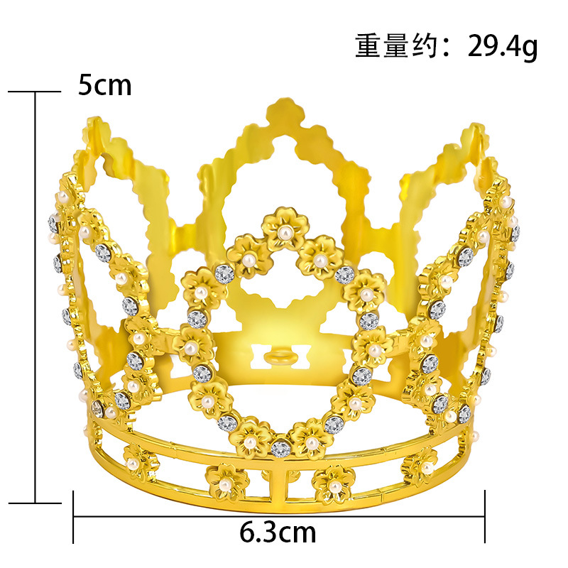 原创新款跨境鲜花装饰珍珠皇冠精美合金圆王冠生日派对蛋糕装饰