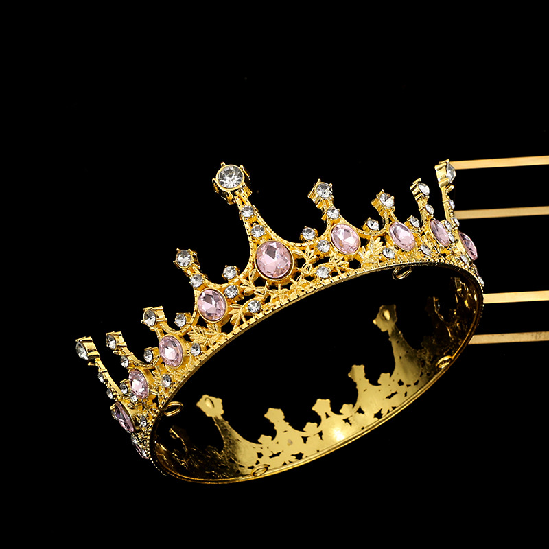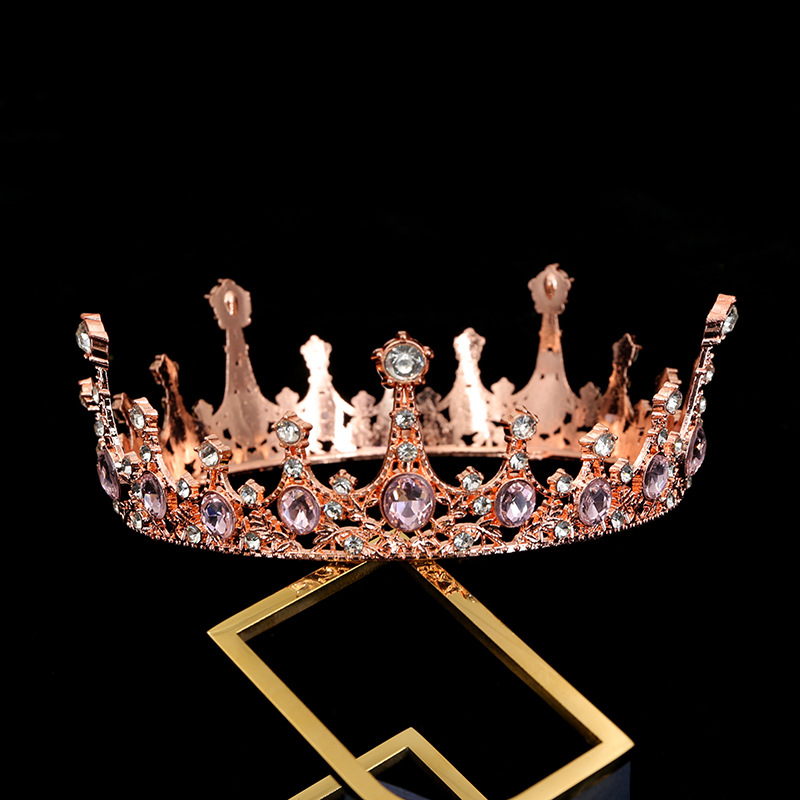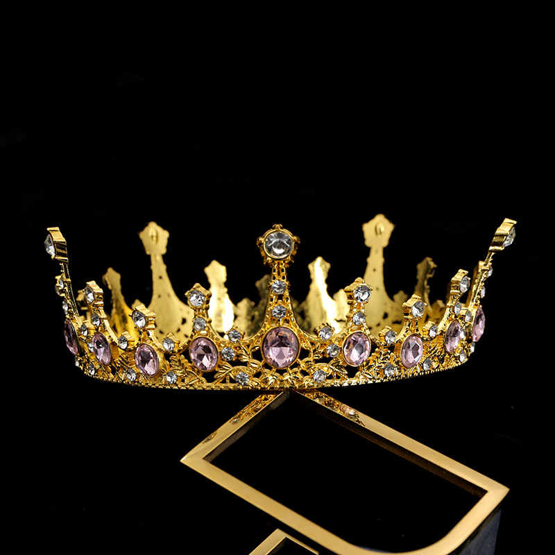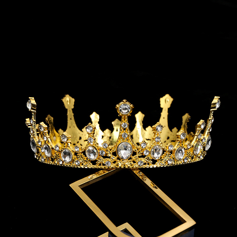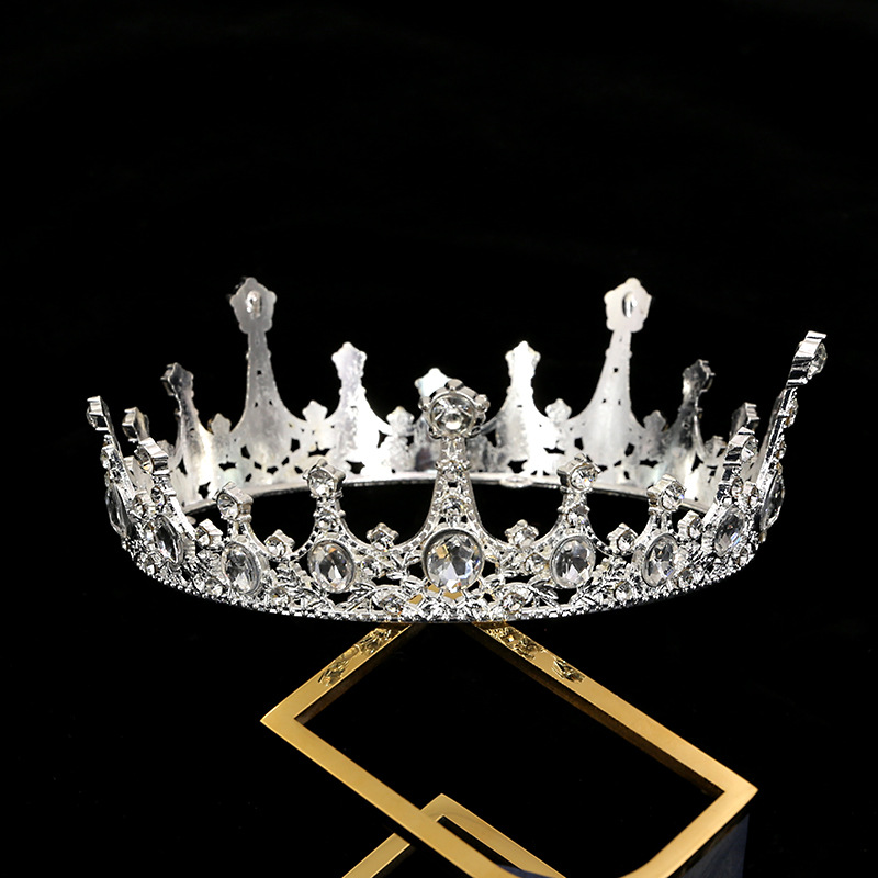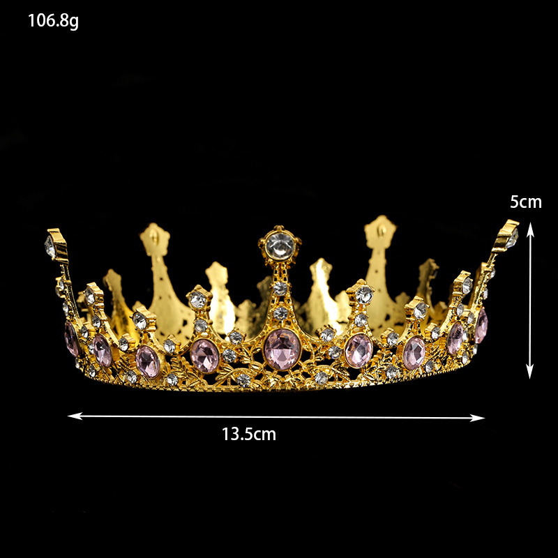 皇冠新娘水晶全圆巴洛克王冠网红头饰生日蛋糕装饰品结婚厂家批发