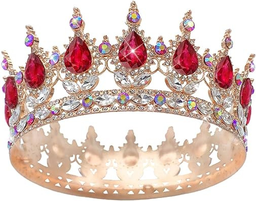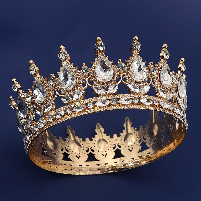 跨境欧美新娘饰品大圆皇冠头饰彩色巴洛克复古发饰王冠满钻