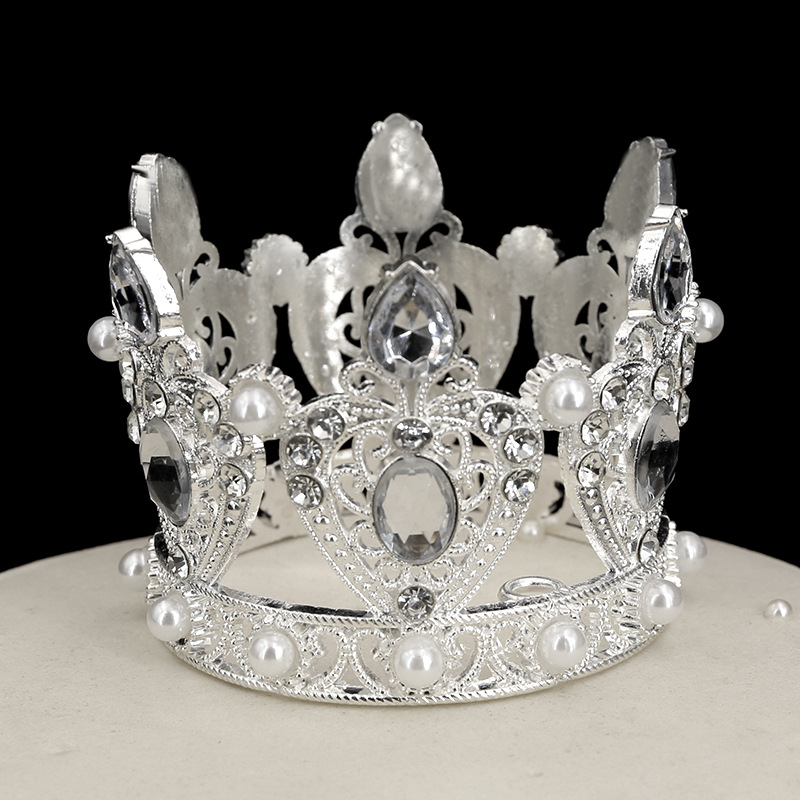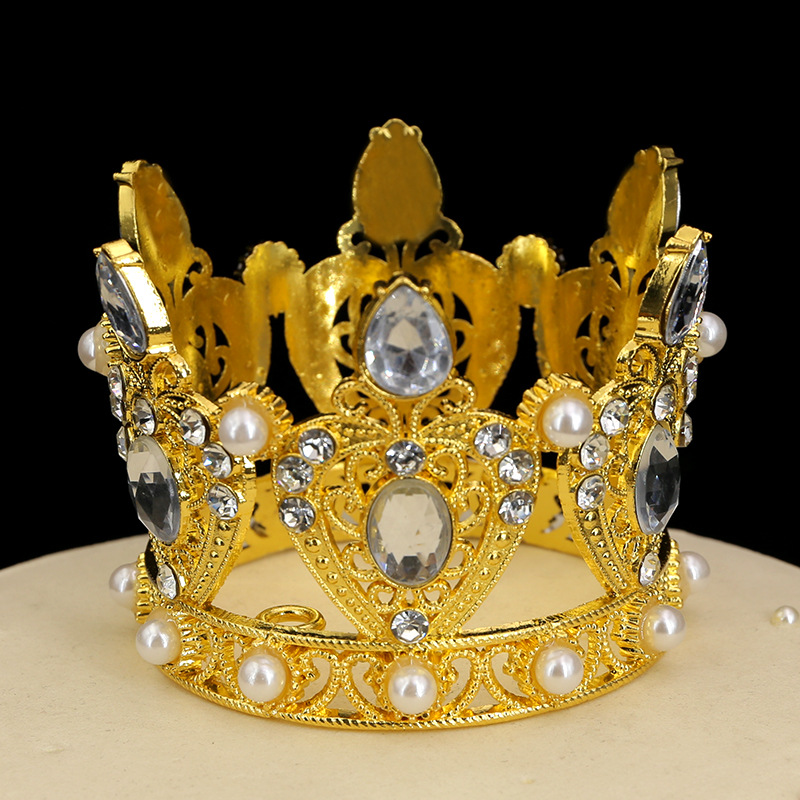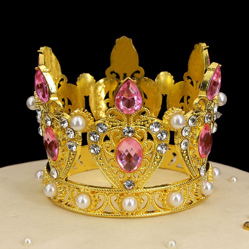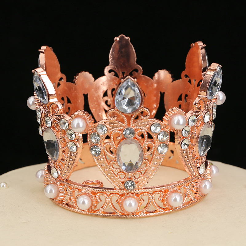 原创跨境鲜花汽车儿童桃心水滴水钻蛋糕装饰摆件迷你合金皇冠