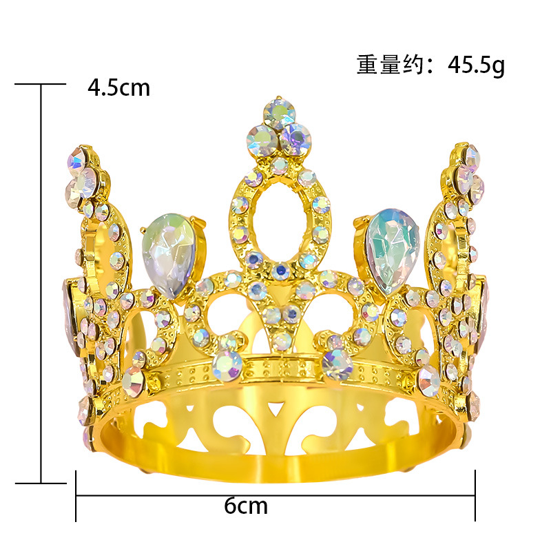 跨境亚马逊爱心迷你蛋糕装饰摆件礼品水钻圆皇冠儿童生日装扮王冠
