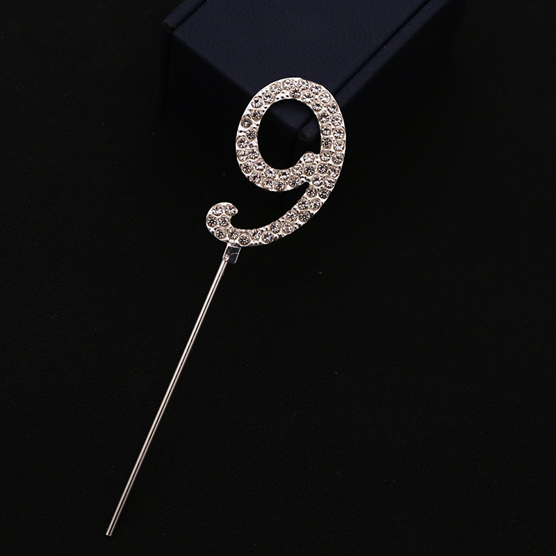 跨境生日蛋糕装饰插牌数字字母happybirthday插旗插卡金属镶钻