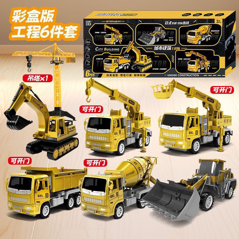 男孩玩具大号工程车挖机小汽车儿童挖掘机推土机搅拌吊车礼盒套装