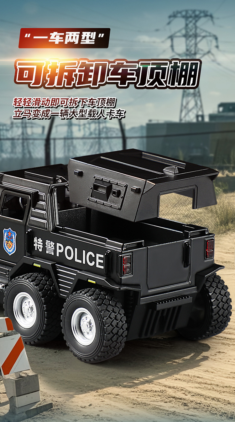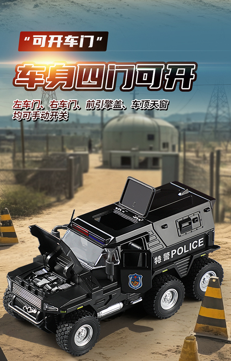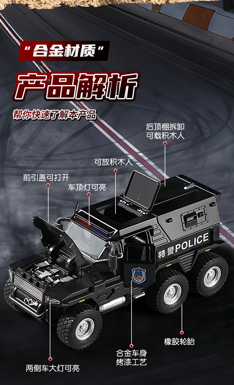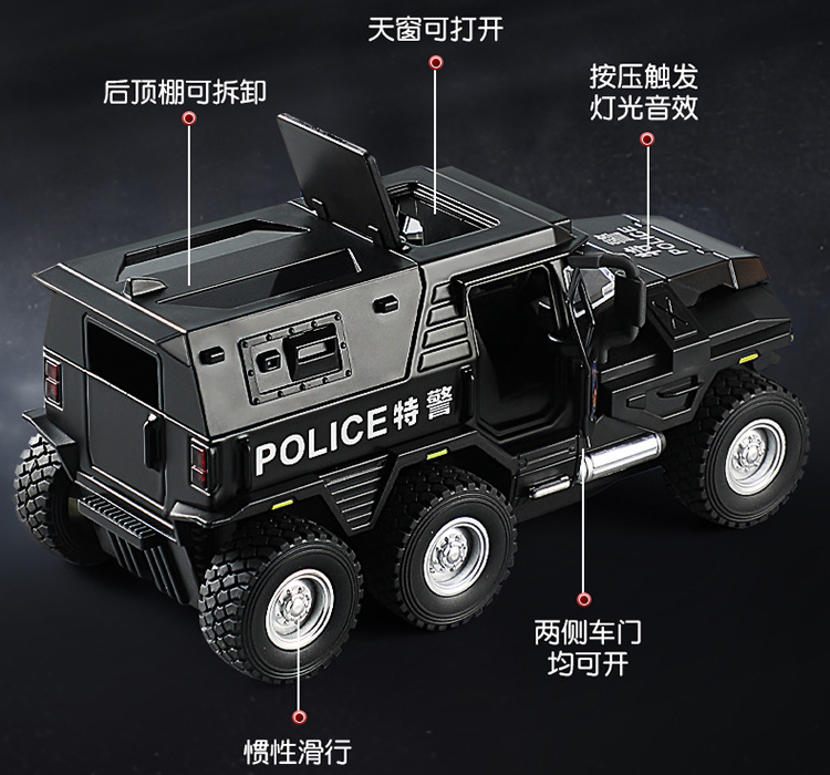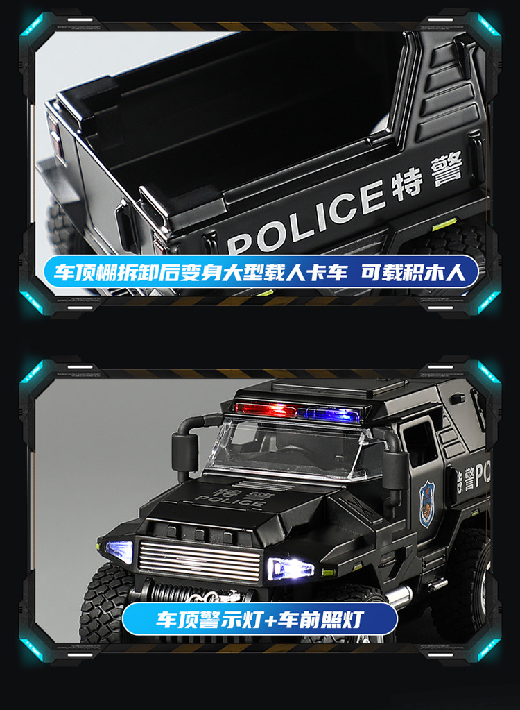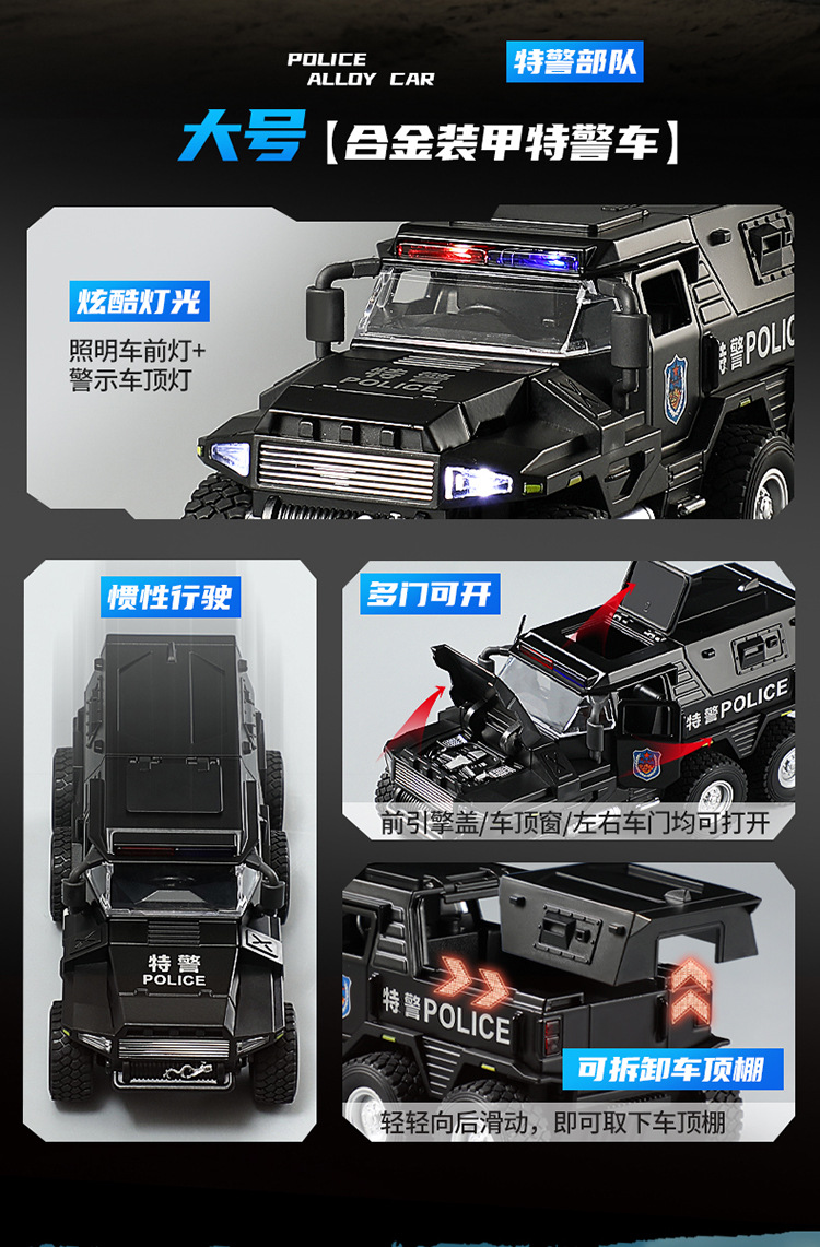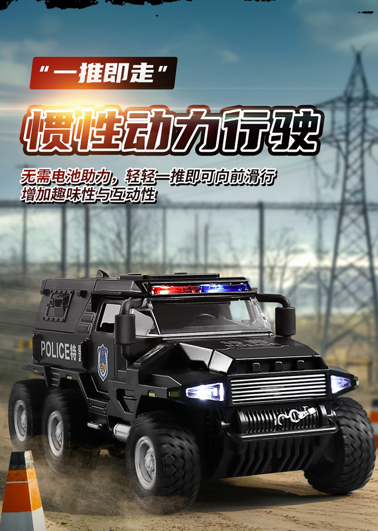 钢力威1:32大号合金警车玩具惯性公安小汽车仿真模型特警装甲车批