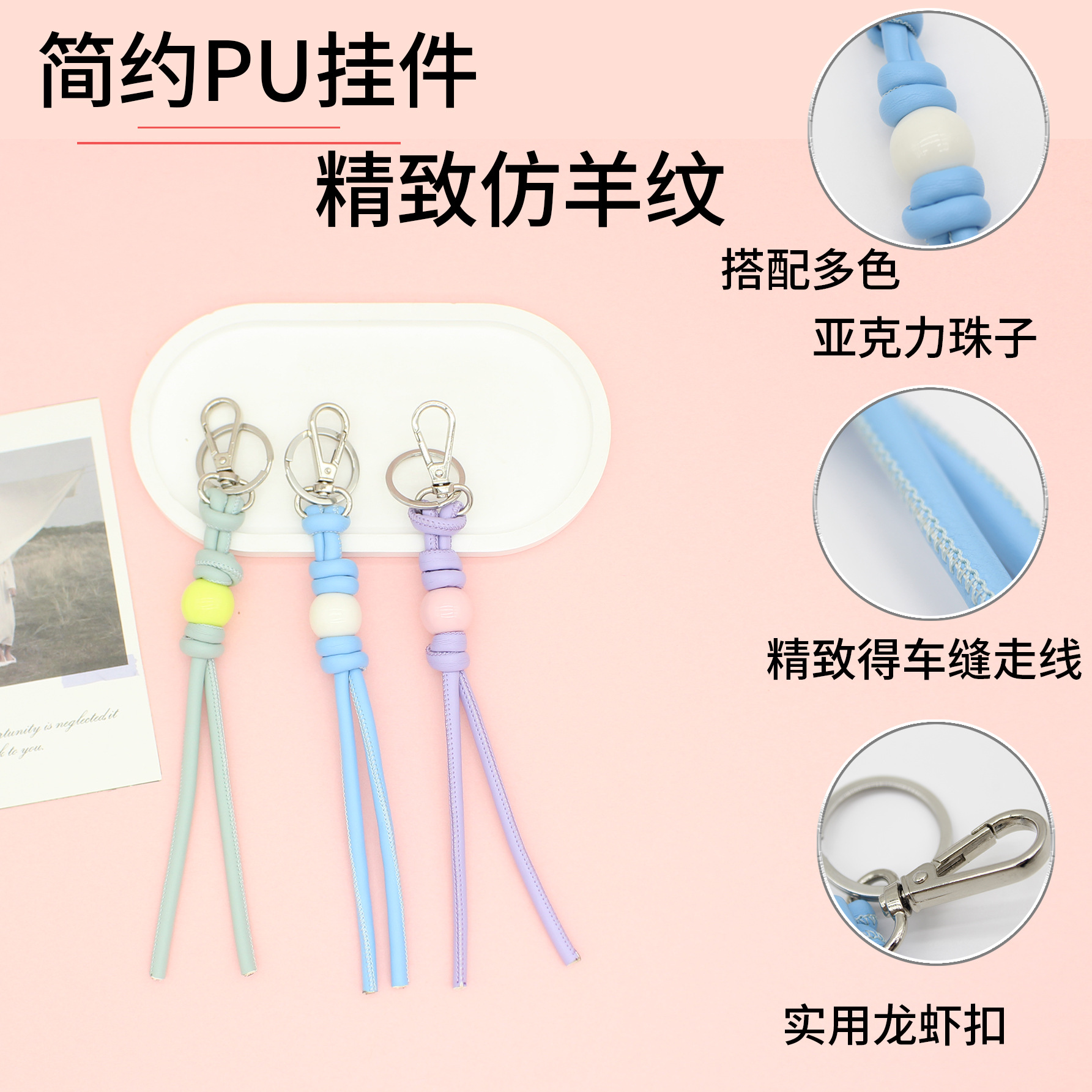 新款简约diy皮质编织钥匙扣挂件创意手腕绳汽车挂饰包挂件小红书