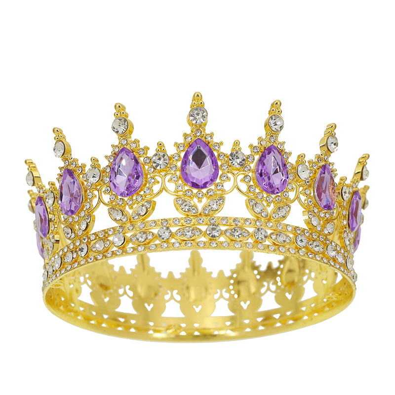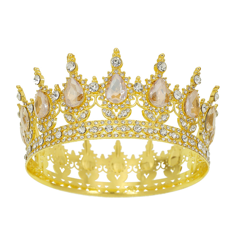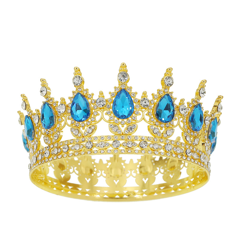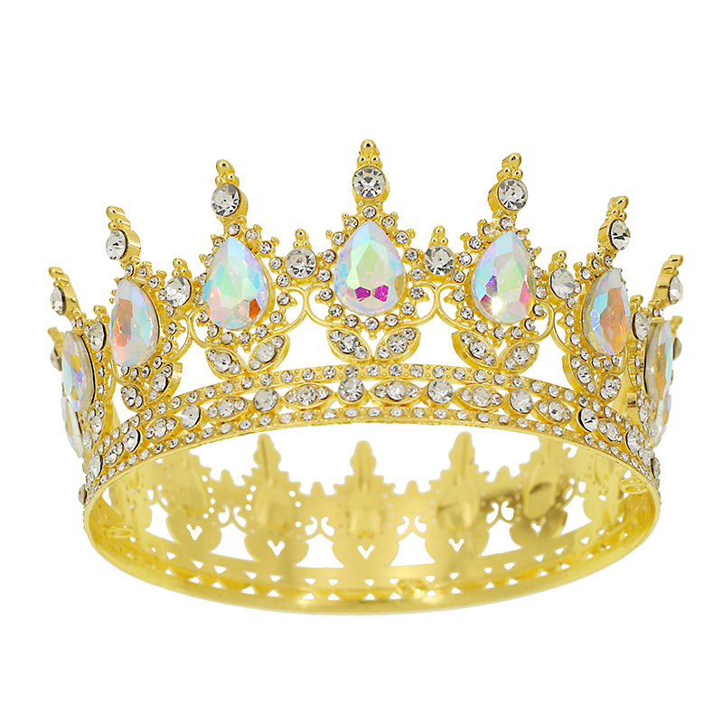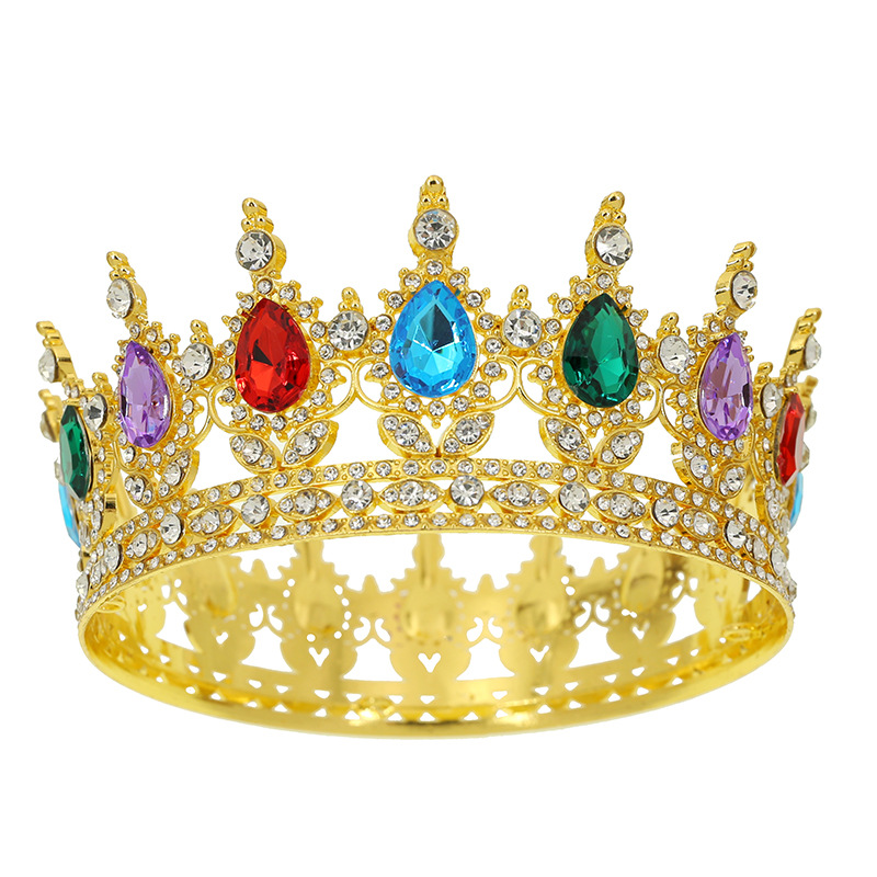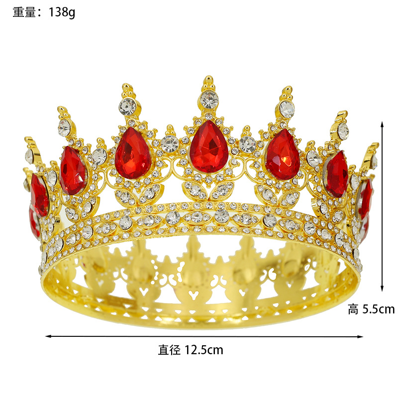 欧美跨境新娘圆皇冠头饰巴洛克彩色水钻发饰高贵气质女王整圈王冠