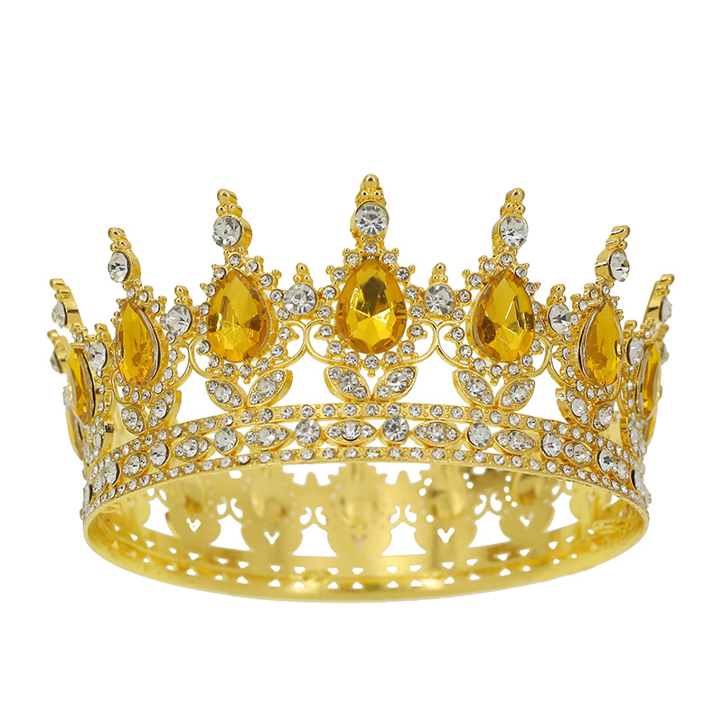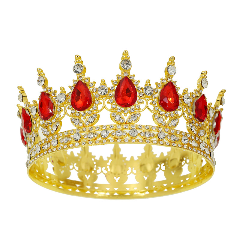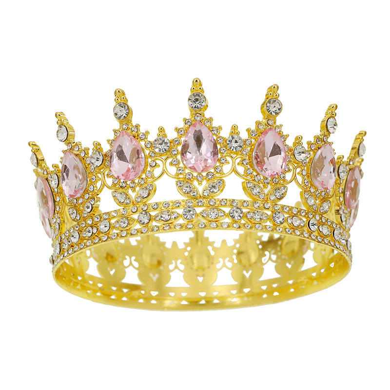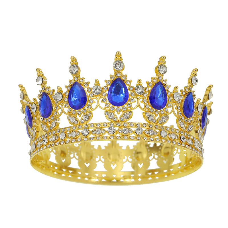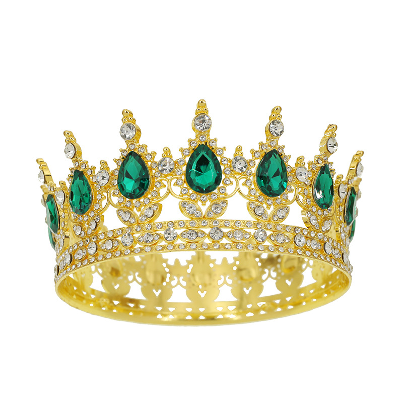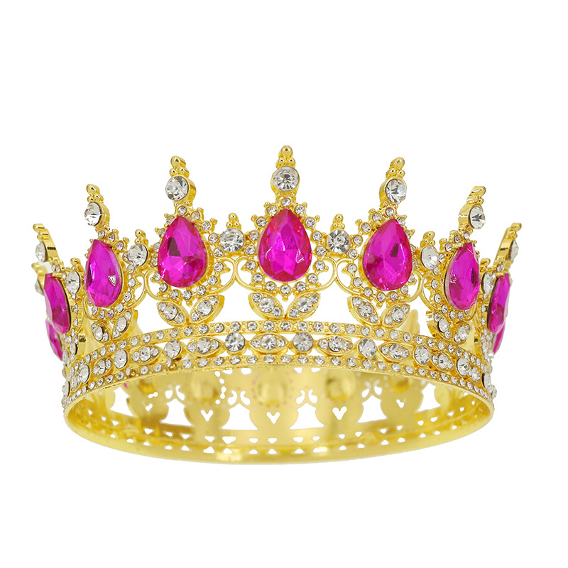 欧美跨境新娘圆皇冠头饰巴洛克彩色水钻发饰高贵气质女王整圈王冠