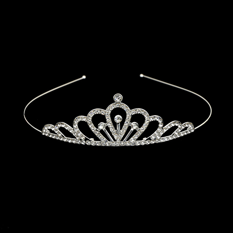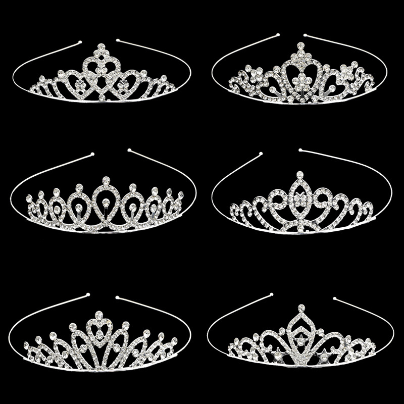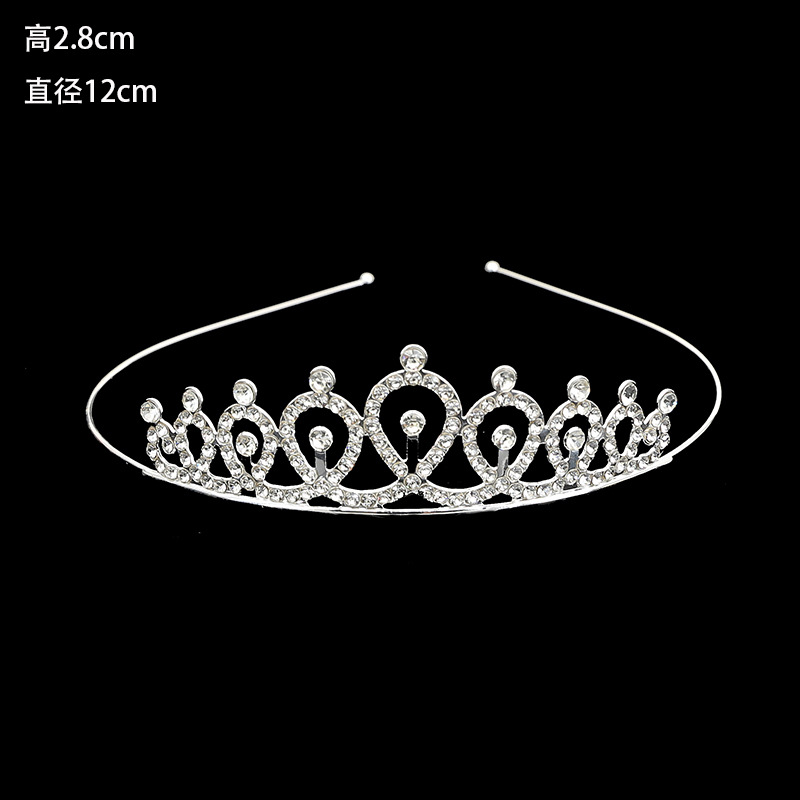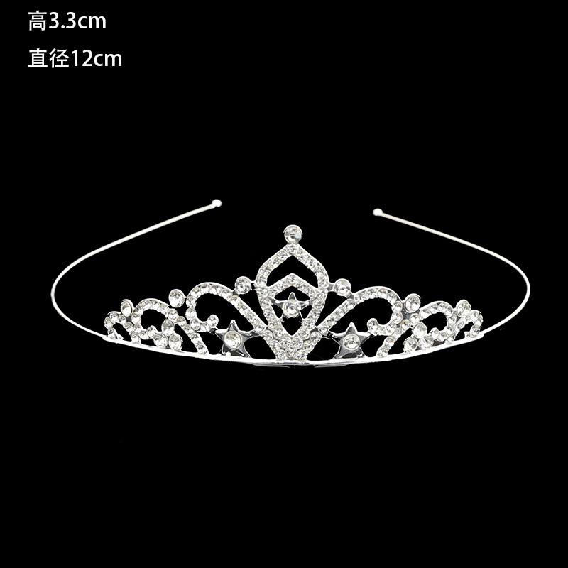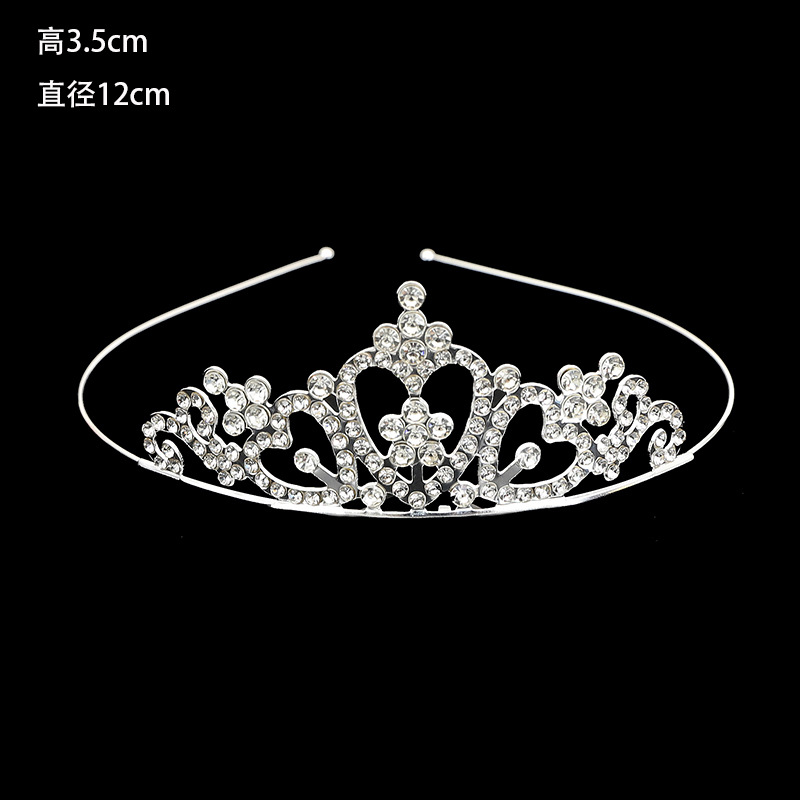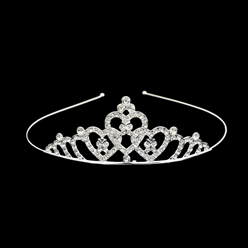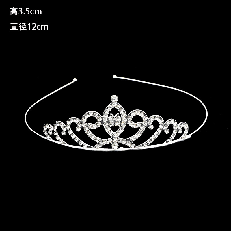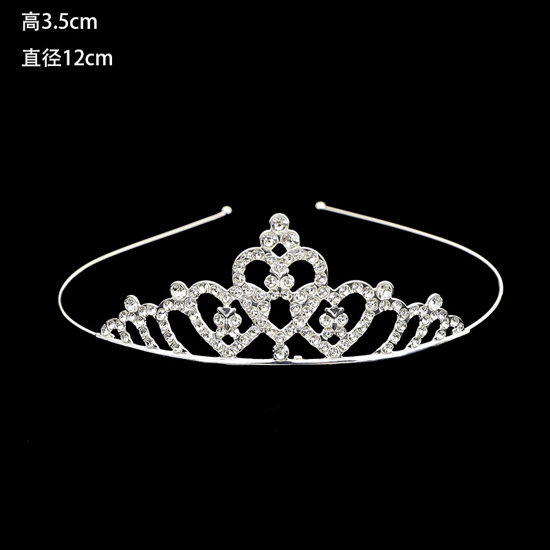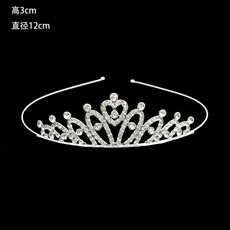 跨境外贸儿童新娘合金皇冠发箍简约爱心水钻生日表演头饰小王冠