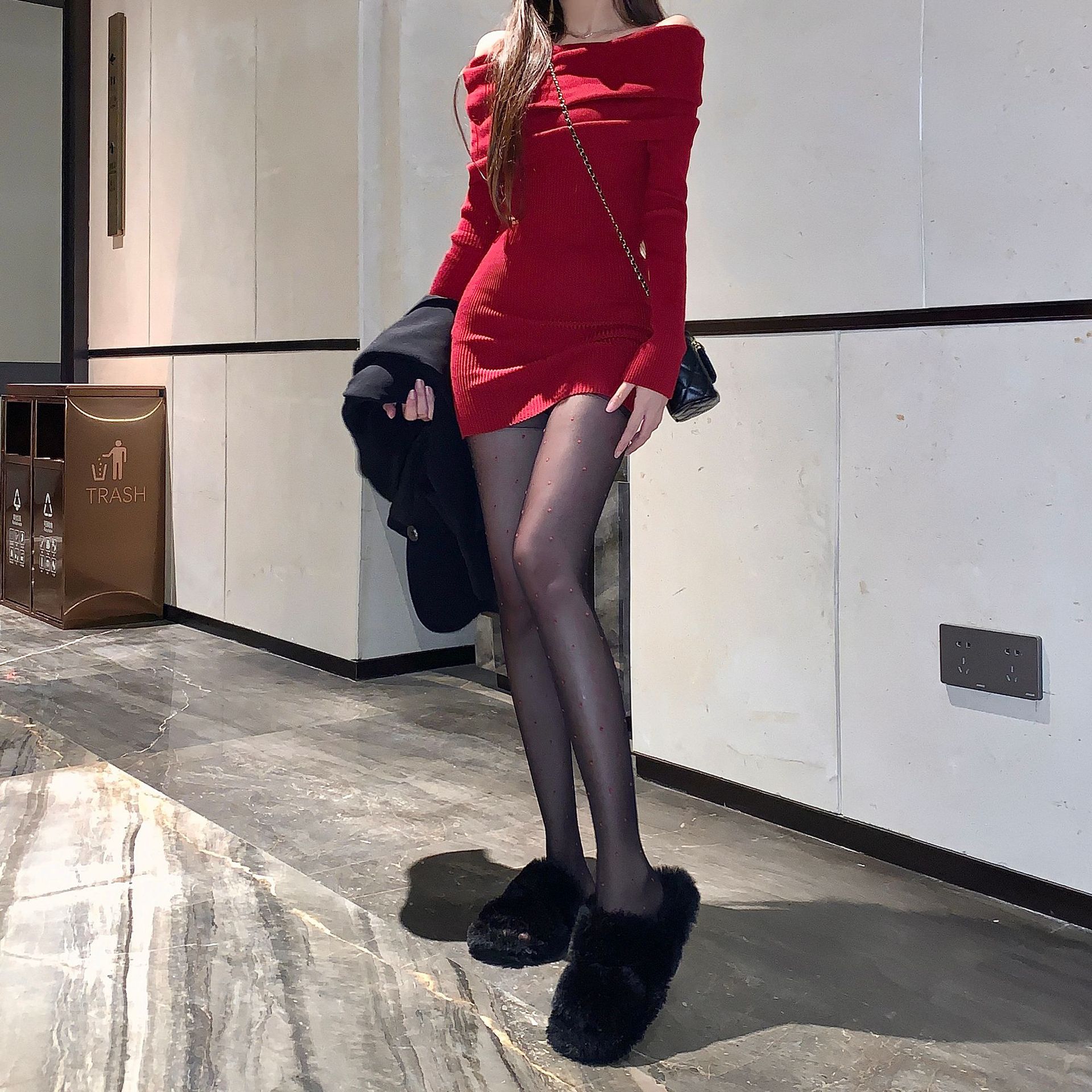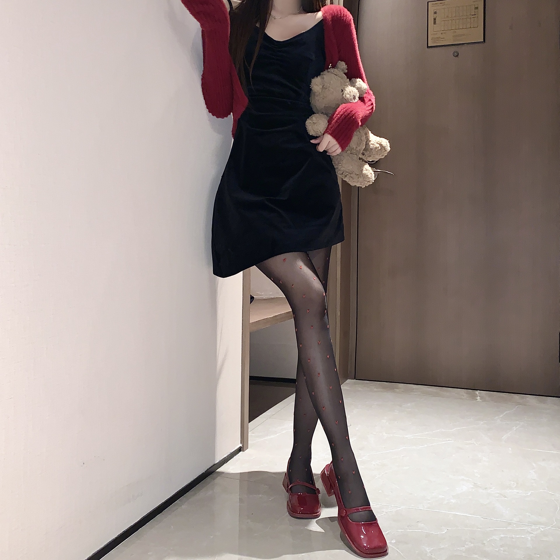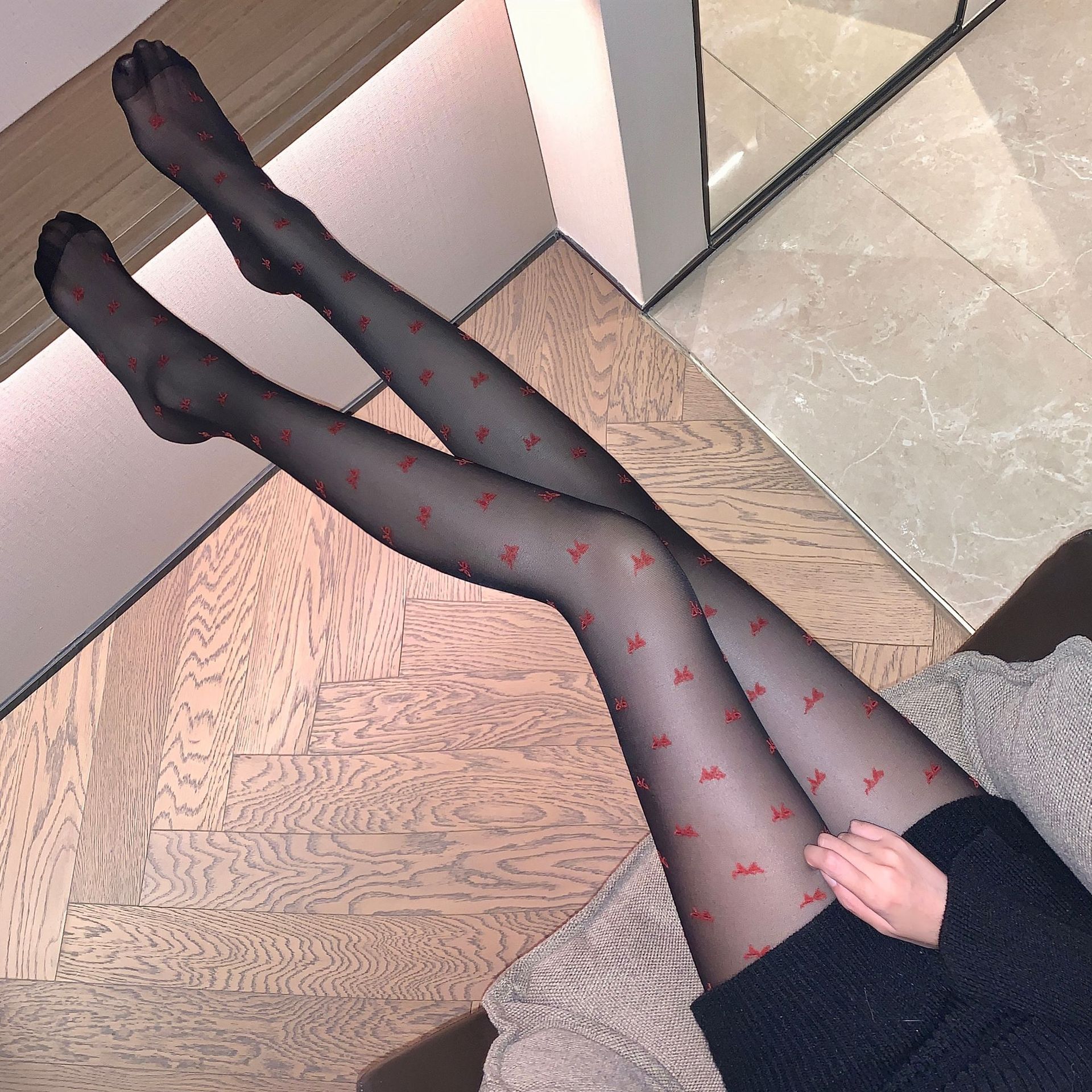 新年丝袜红色爱心红色圆点情人节新品性感黑丝提花连裤袜春夏女士