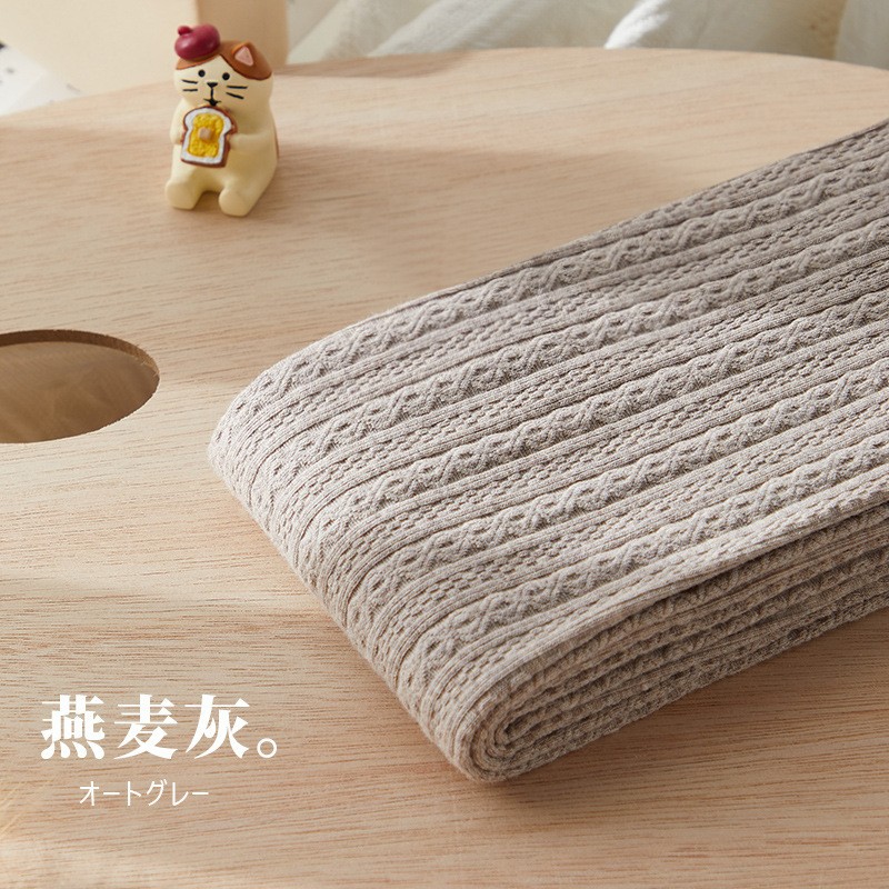 日系甜美森系麻花燕麦色保暖加绒打底裤女秋冬微压显瘦棉质连裤袜