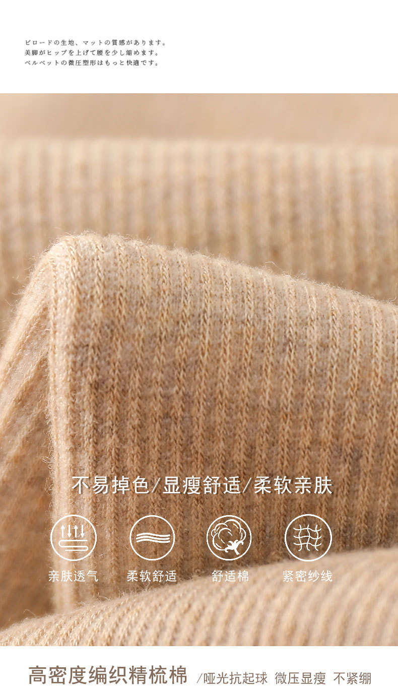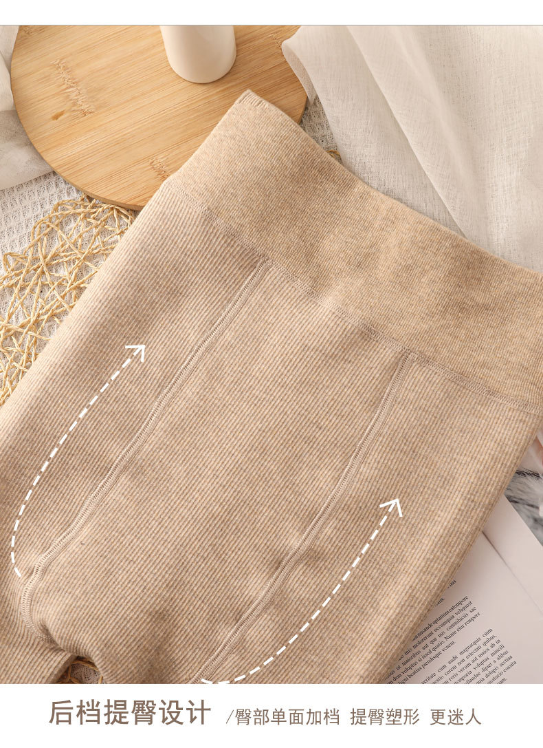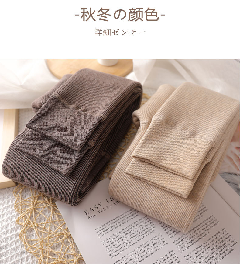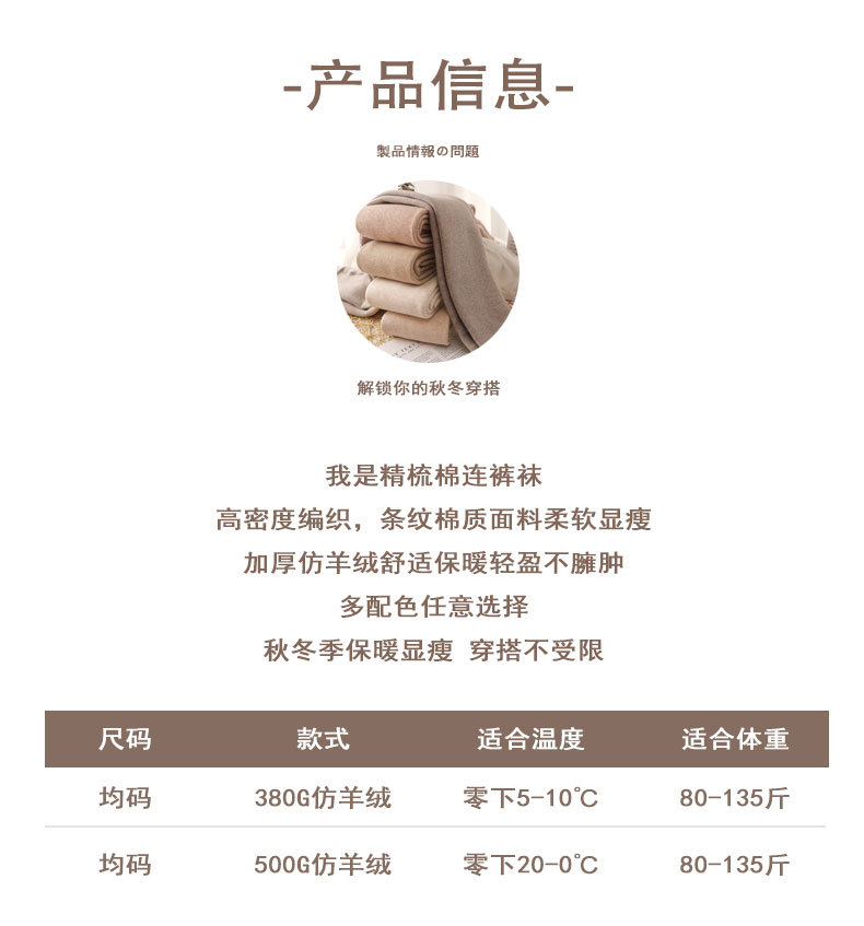 秋冬新品加绒加厚九分打底裤棉女外穿日系竖条纹保暖连裤袜燕麦白