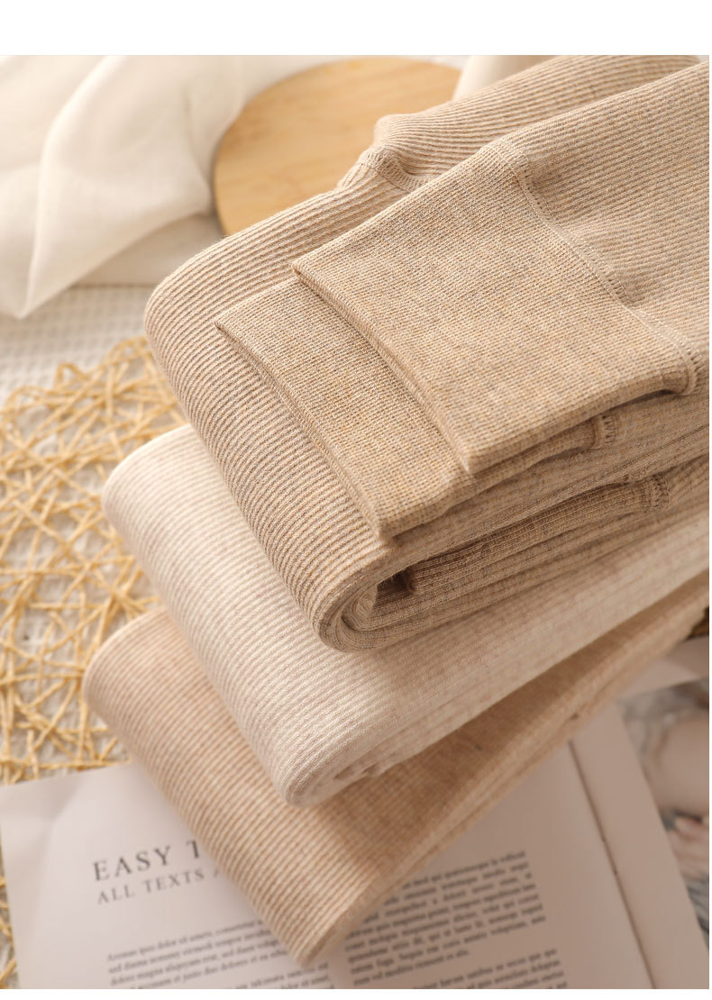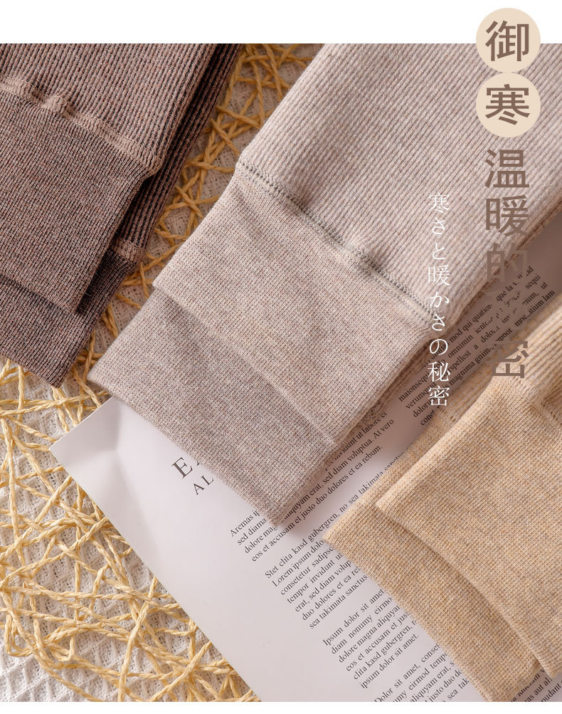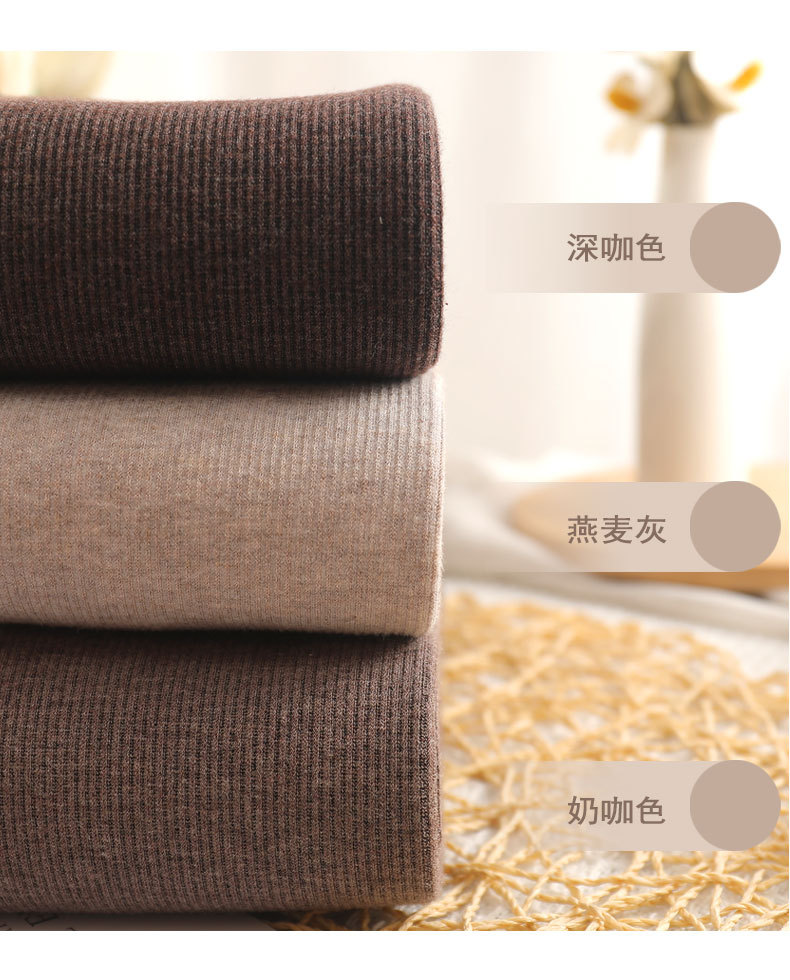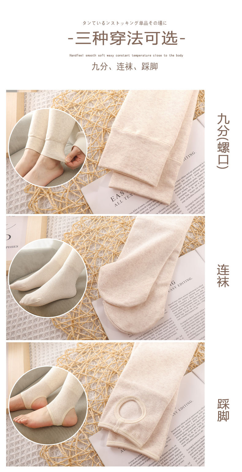 秋冬新品加绒加厚九分打底裤棉女外穿日系竖条纹保暖连裤袜燕麦白