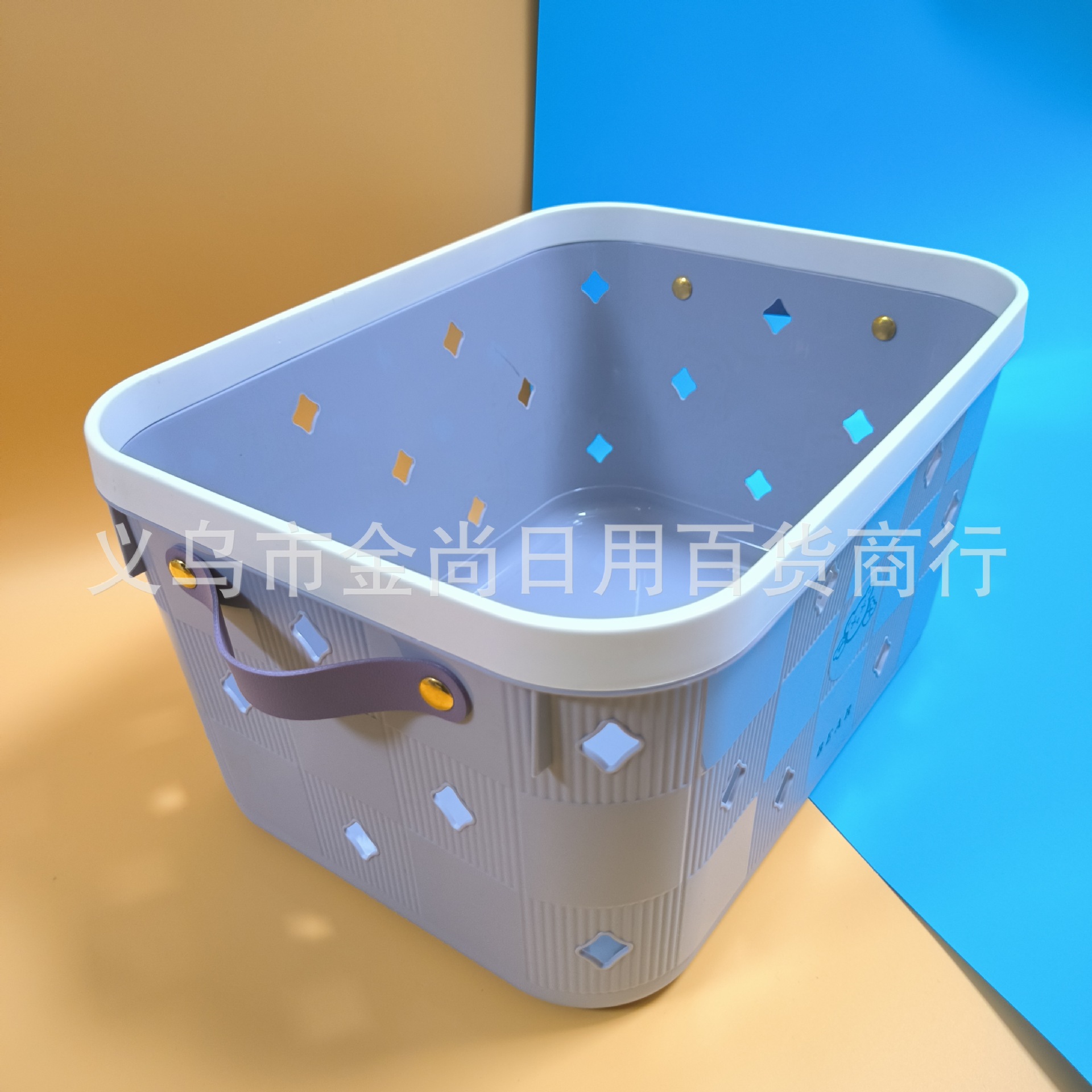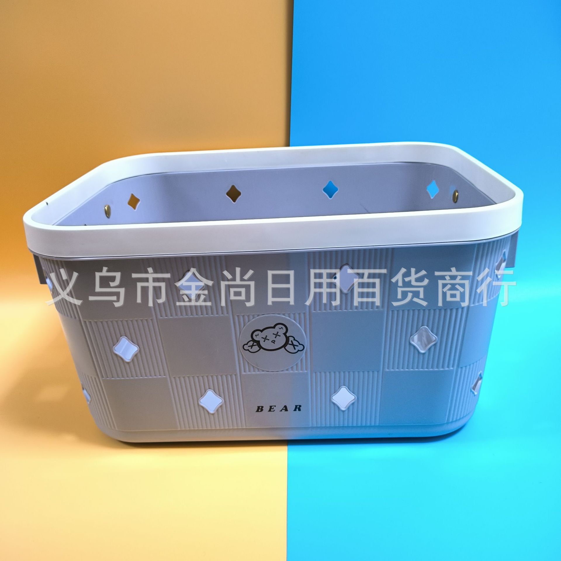 新款酷酷熊收纳篮塑料小格子不规则花纹收纳篮厨房手提杂物篮批发