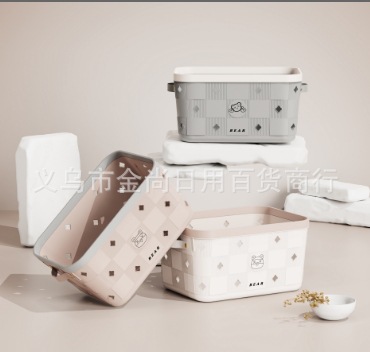 new cool bear storage basket plastic small plaid irregular pattern storage basket kitchen portable sundries basket wholesale