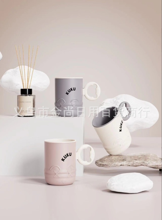 创意简约英文塑料杯高颜值撞色新双套熊杯马克杯浴室漱口杯家用