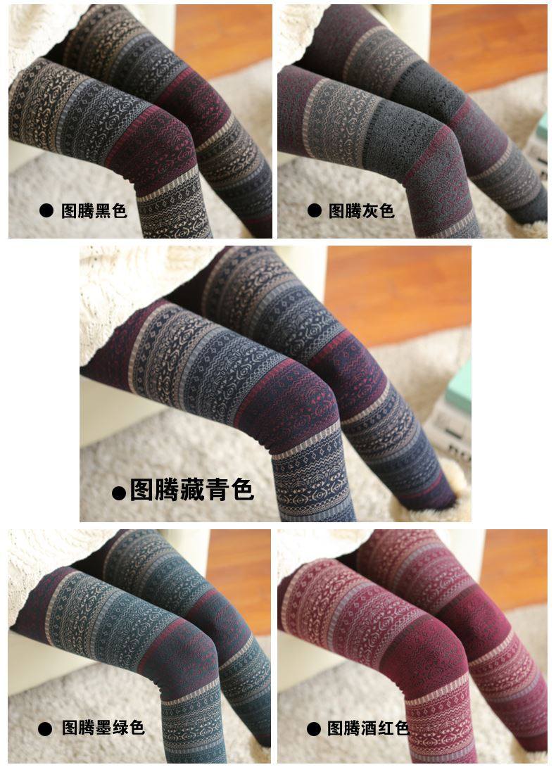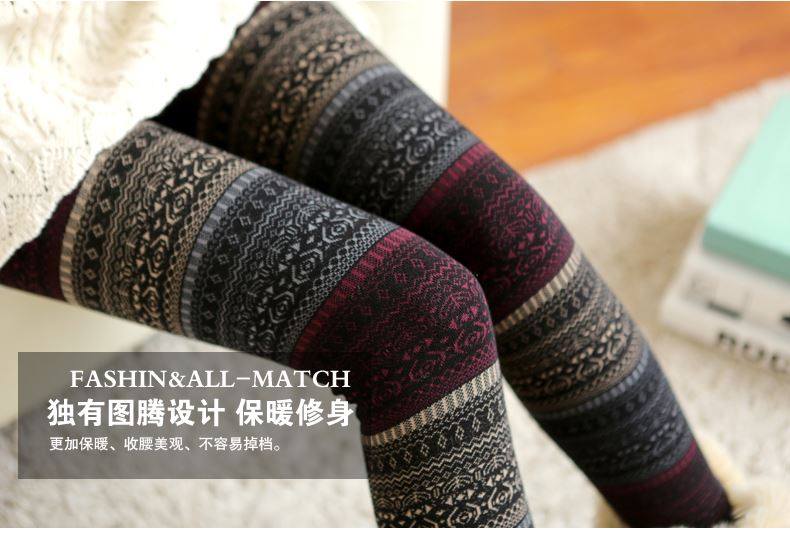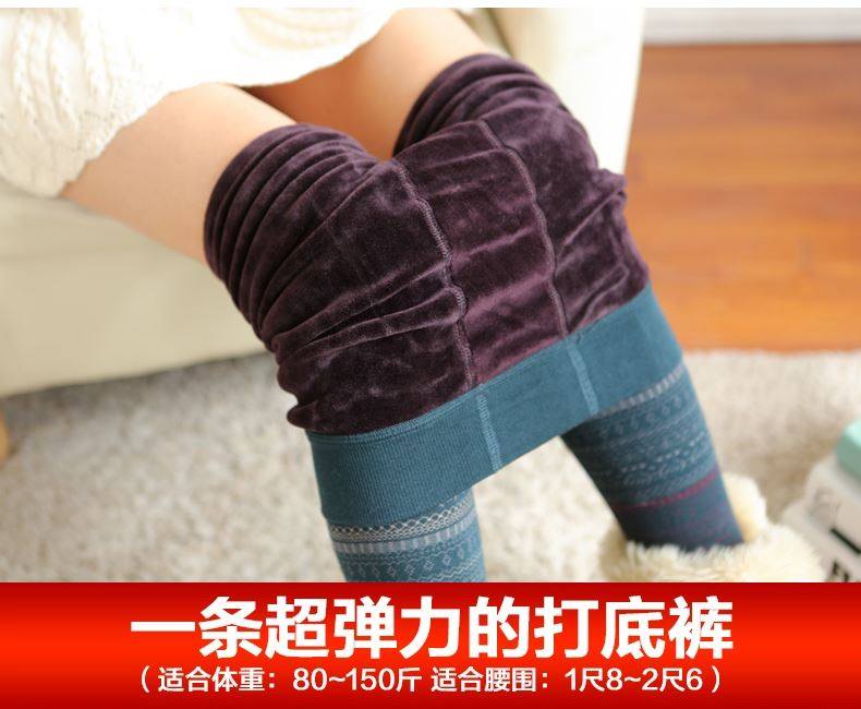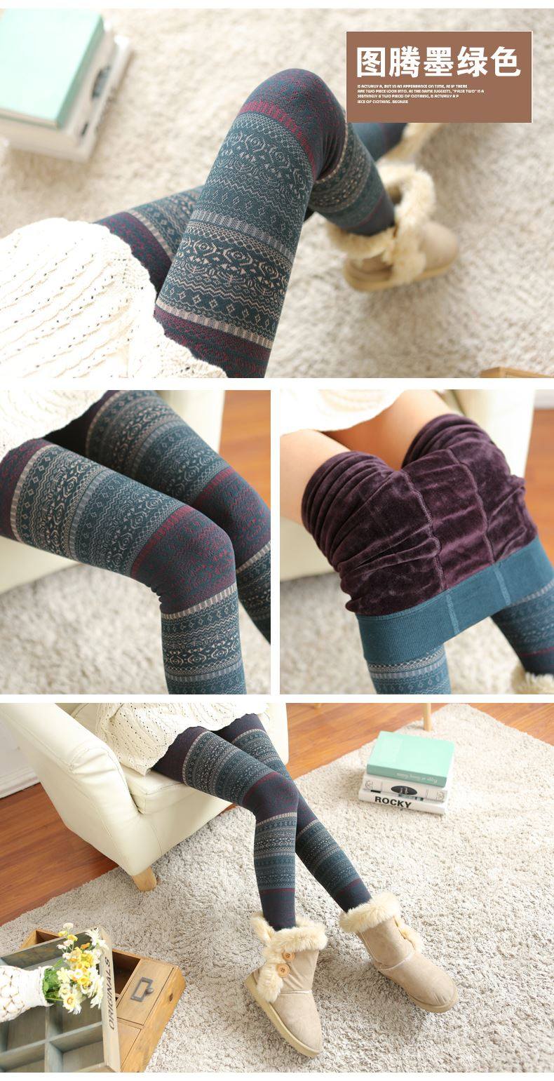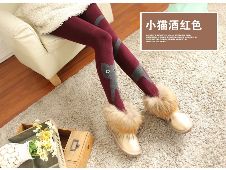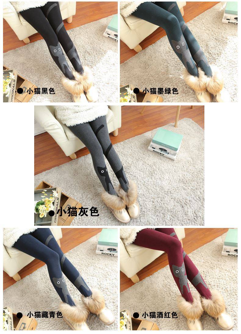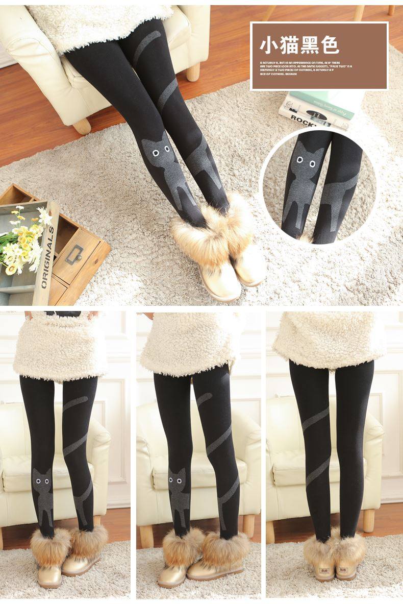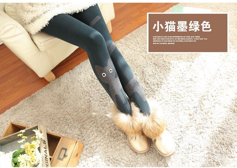 秋冬季复古图腾小猫打底裤加绒加厚女外穿保暖双层裤印花九分裤子