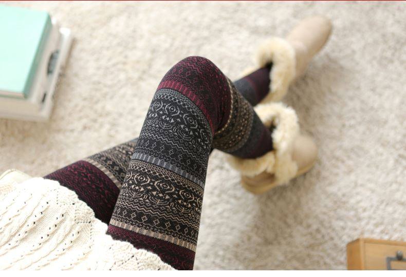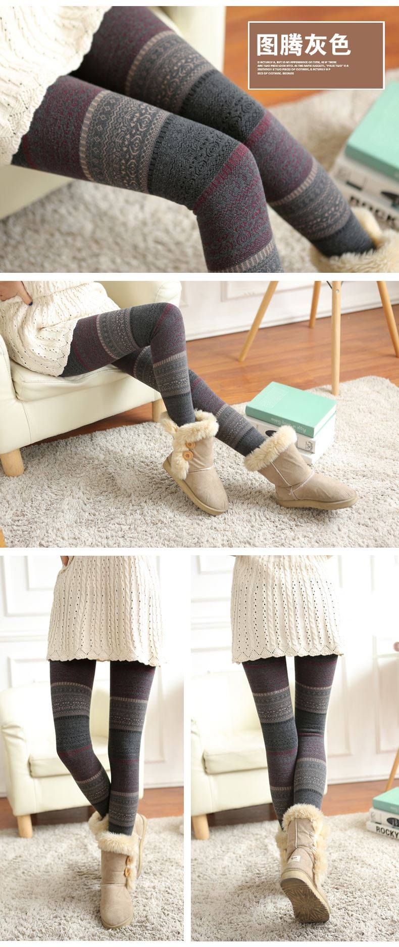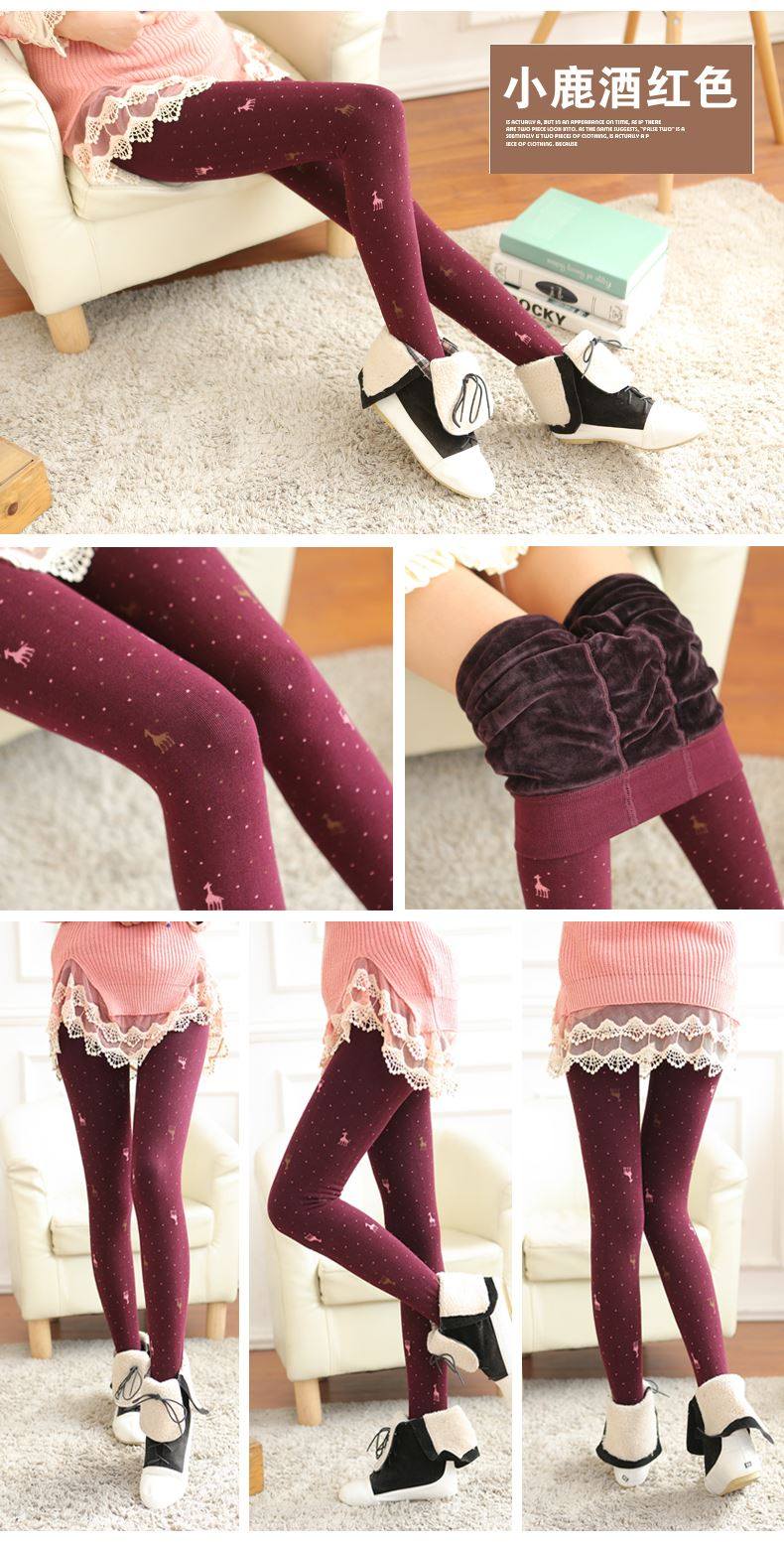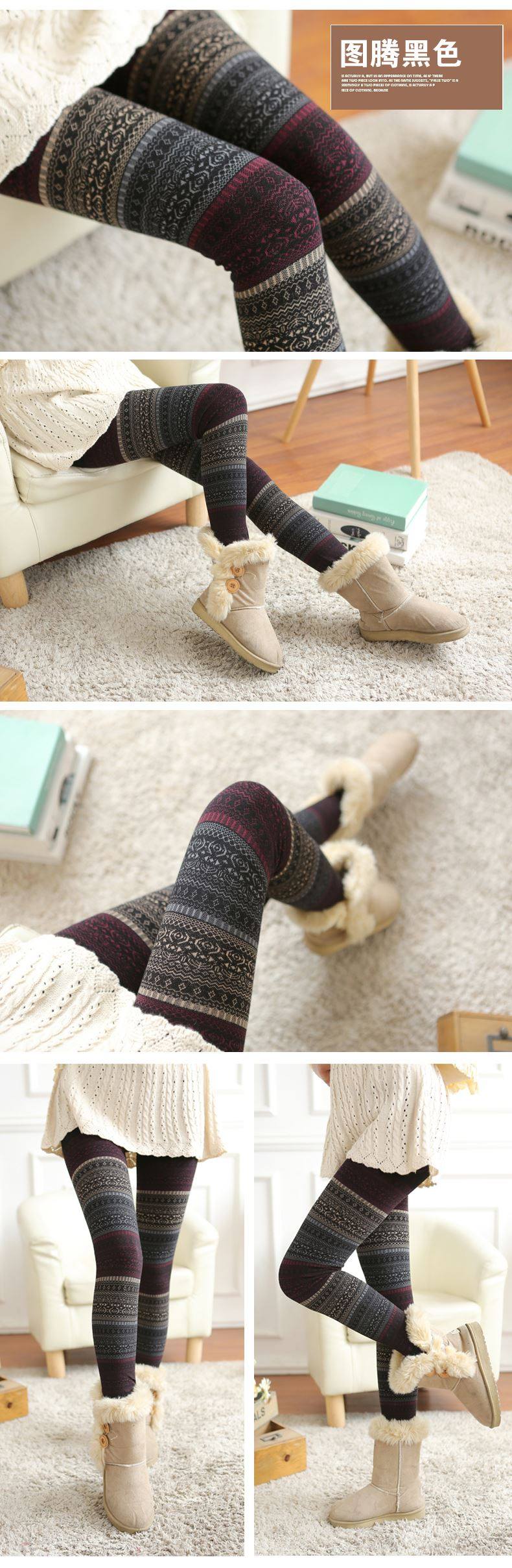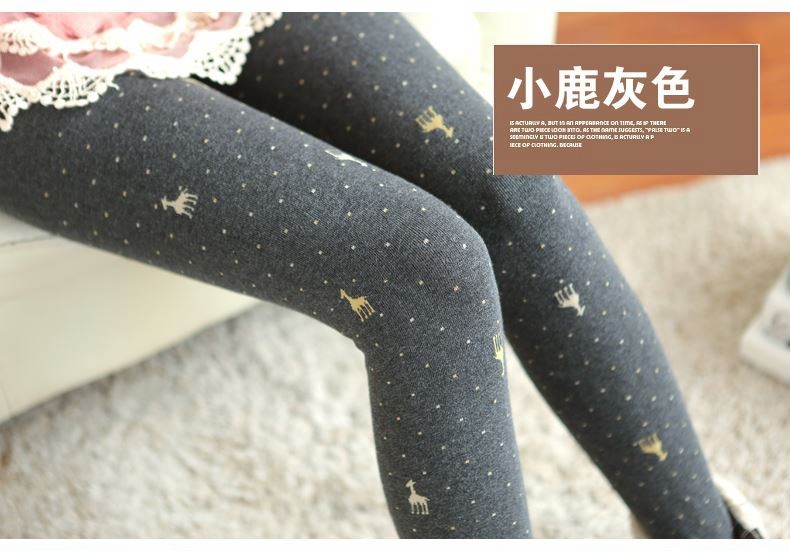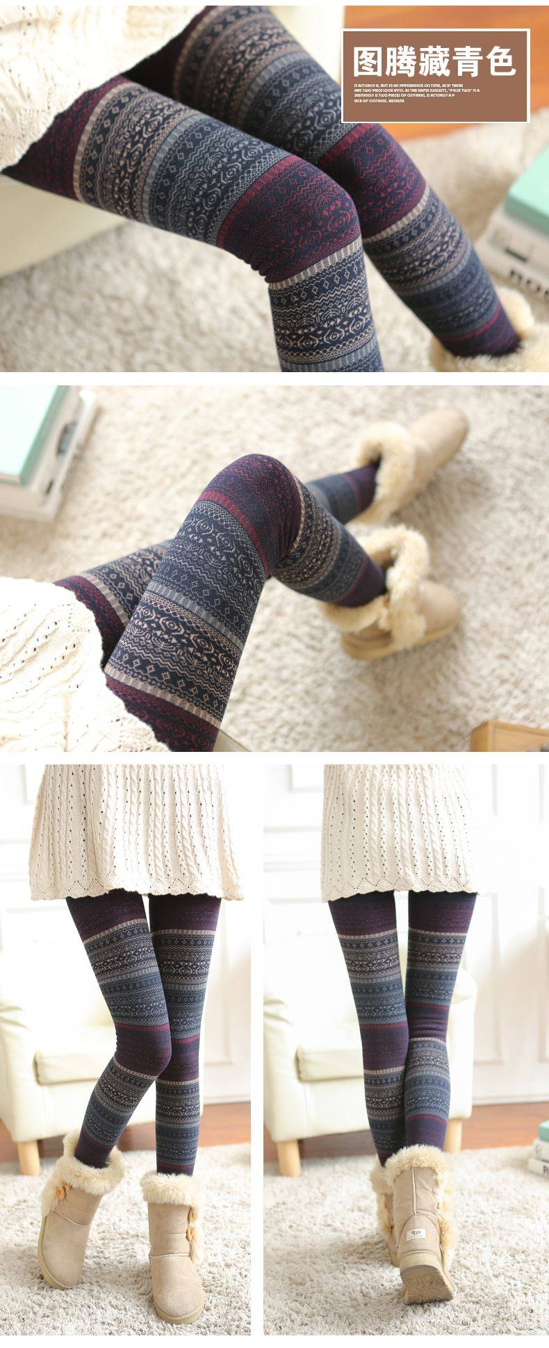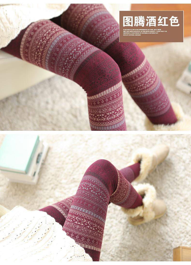 秋冬季复古图腾小猫打底裤加绒加厚女外穿保暖双层裤印花九分裤子