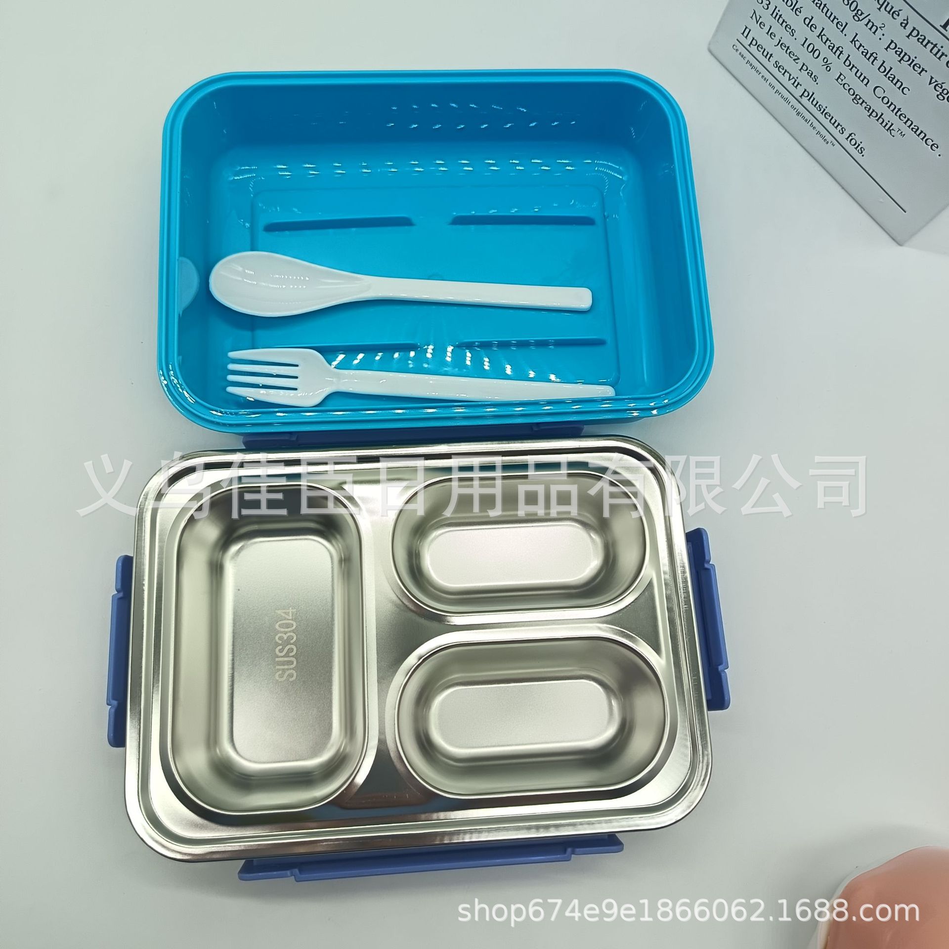 跨境热销304不锈钢饭盒可接少量图案饭盒多分格野餐盒学生上班族
