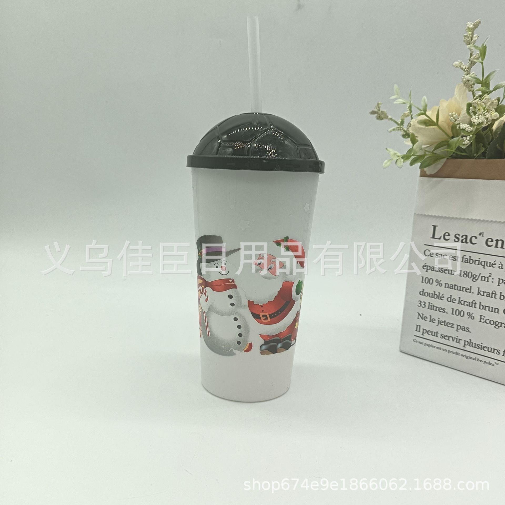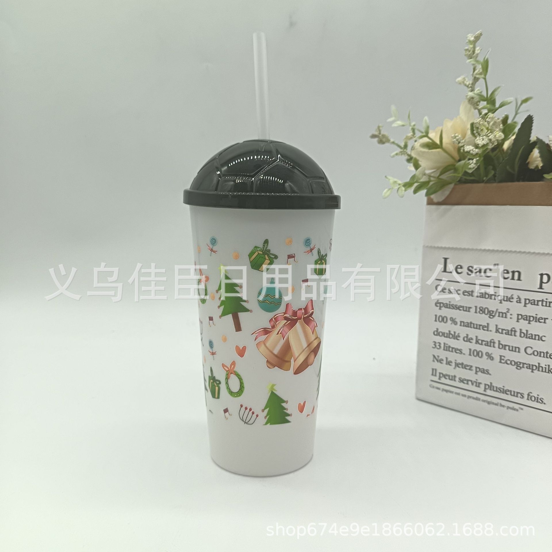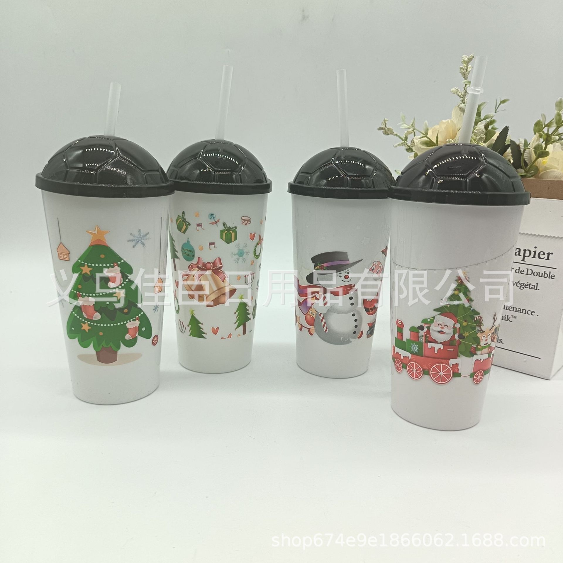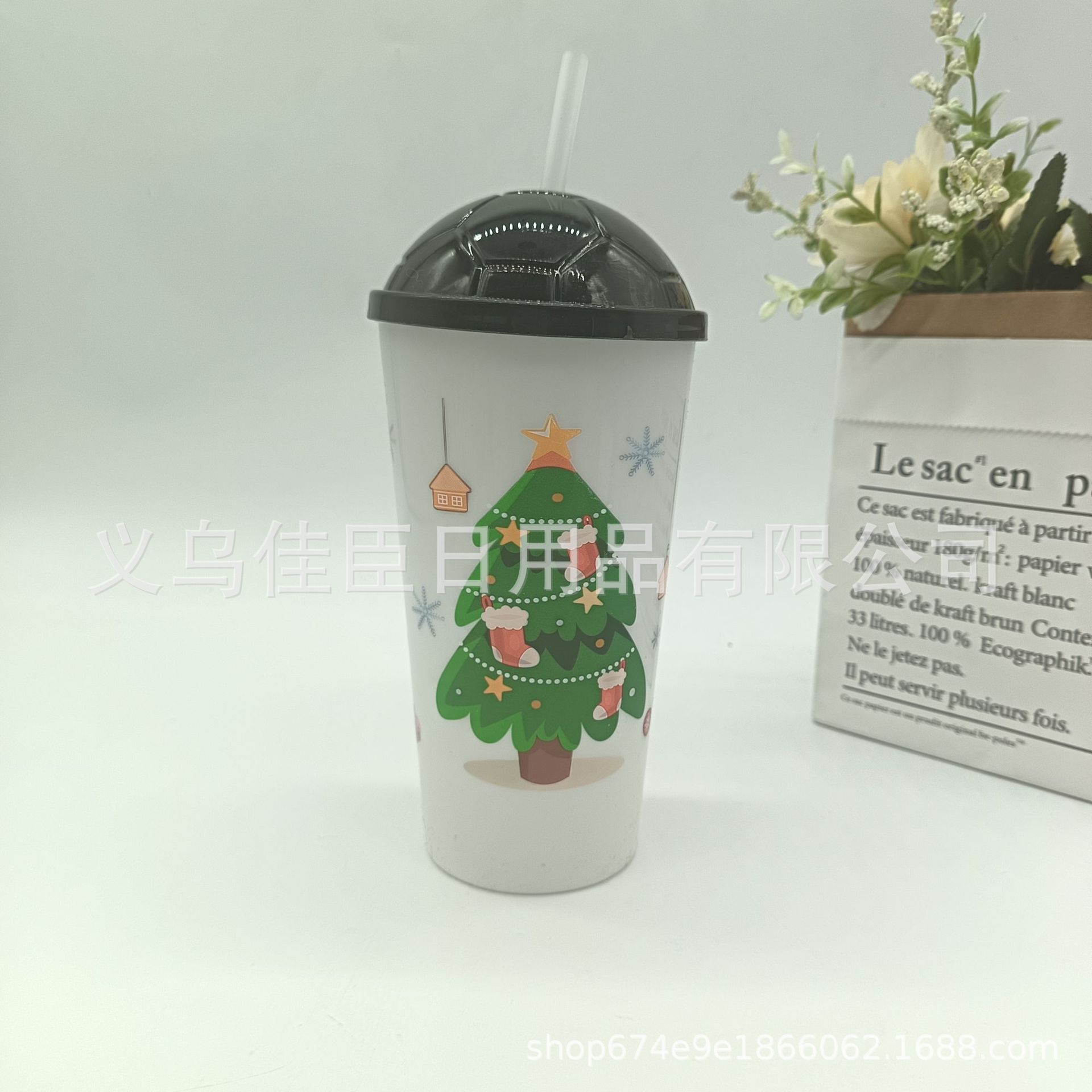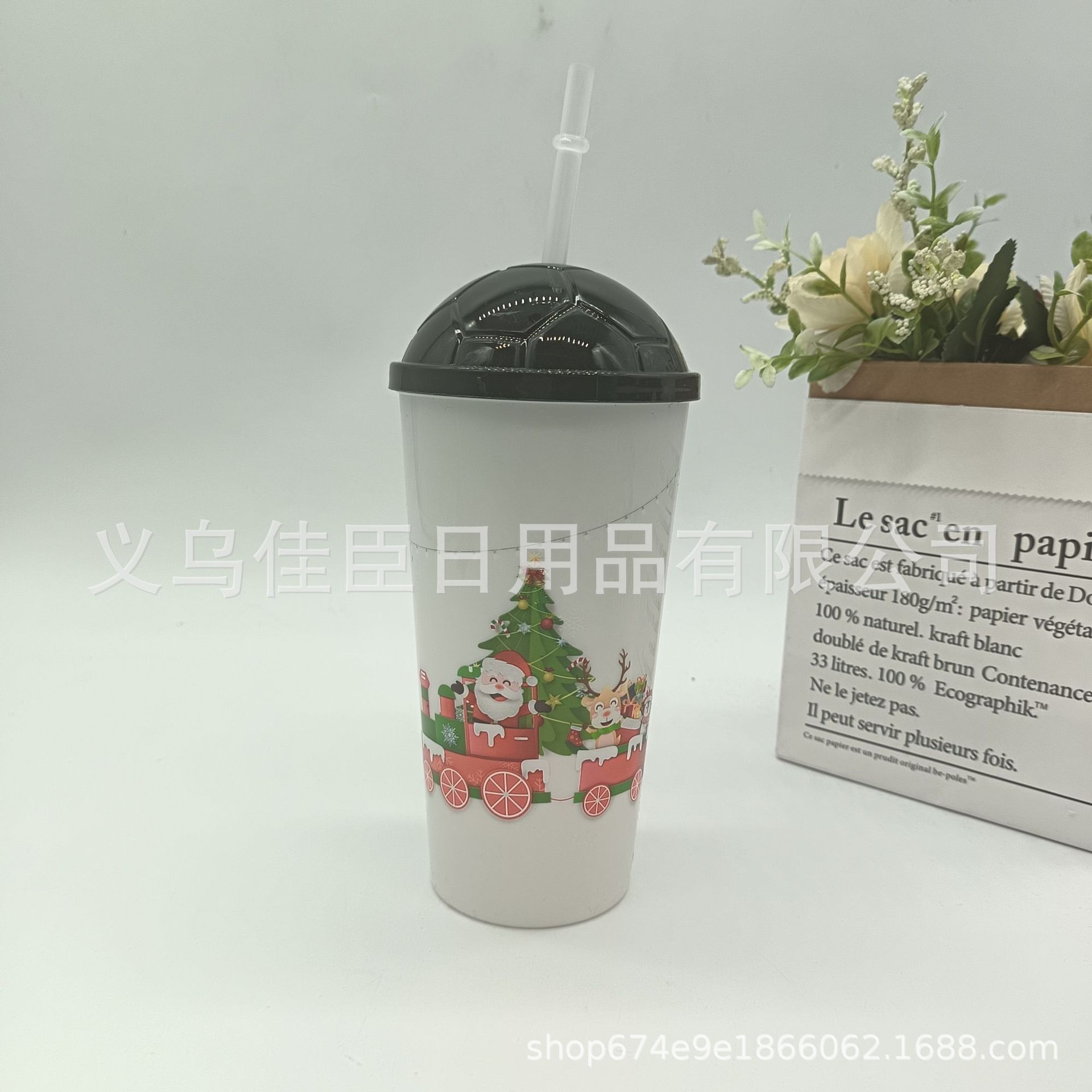 跨境热销圣诞系列吸管杯果汁饮料杯简约高颜值便携学生上班喝水杯