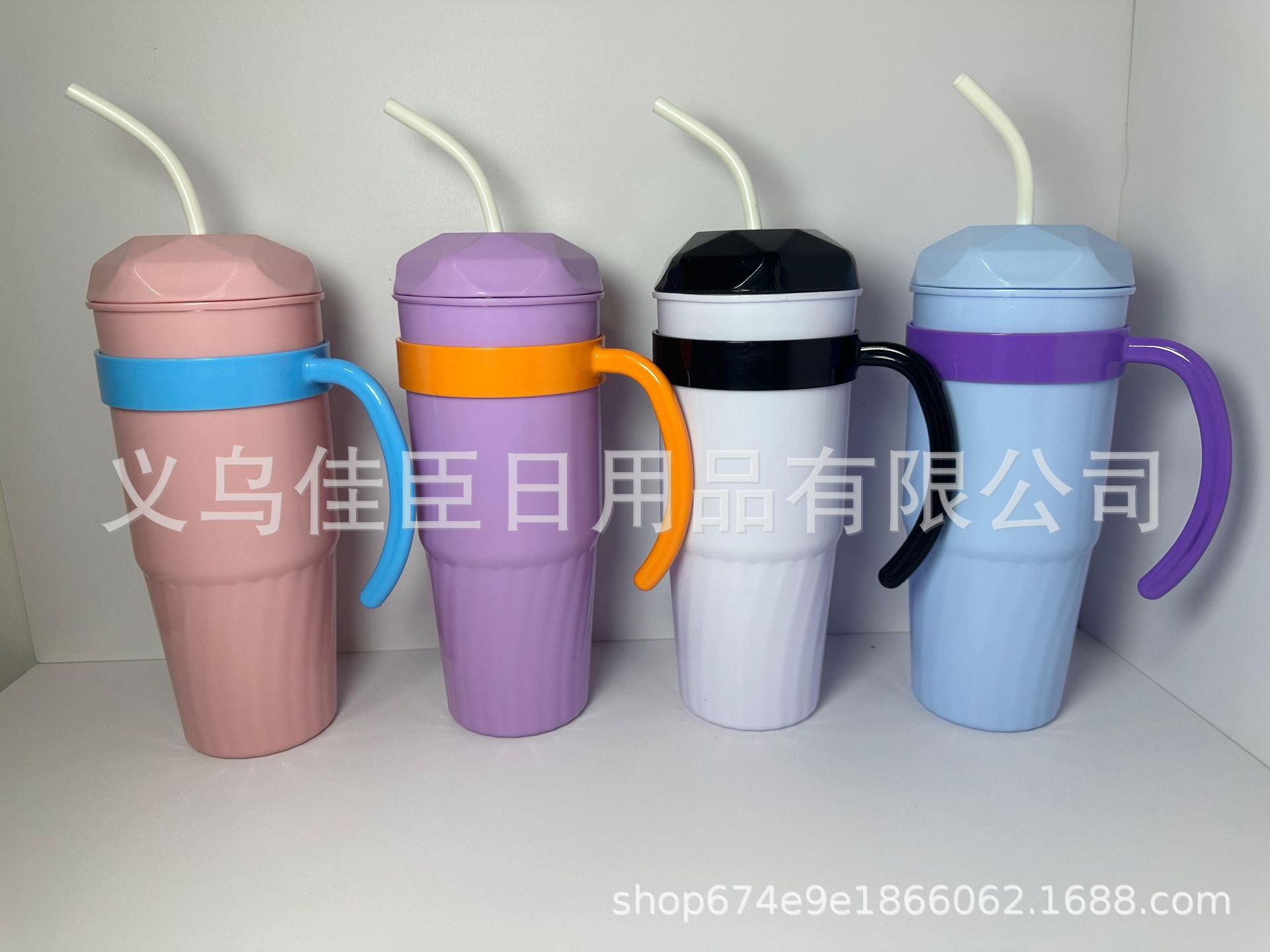 外贸热销款塑料材质车载杯吸管杯现代简约大容量上班办公杯大容量