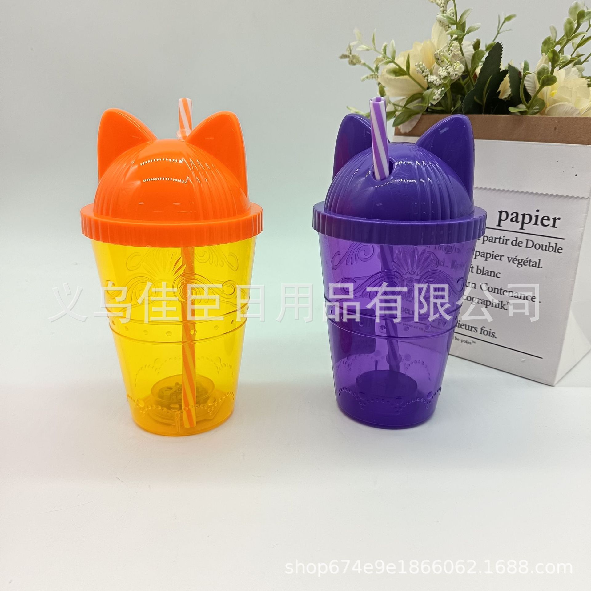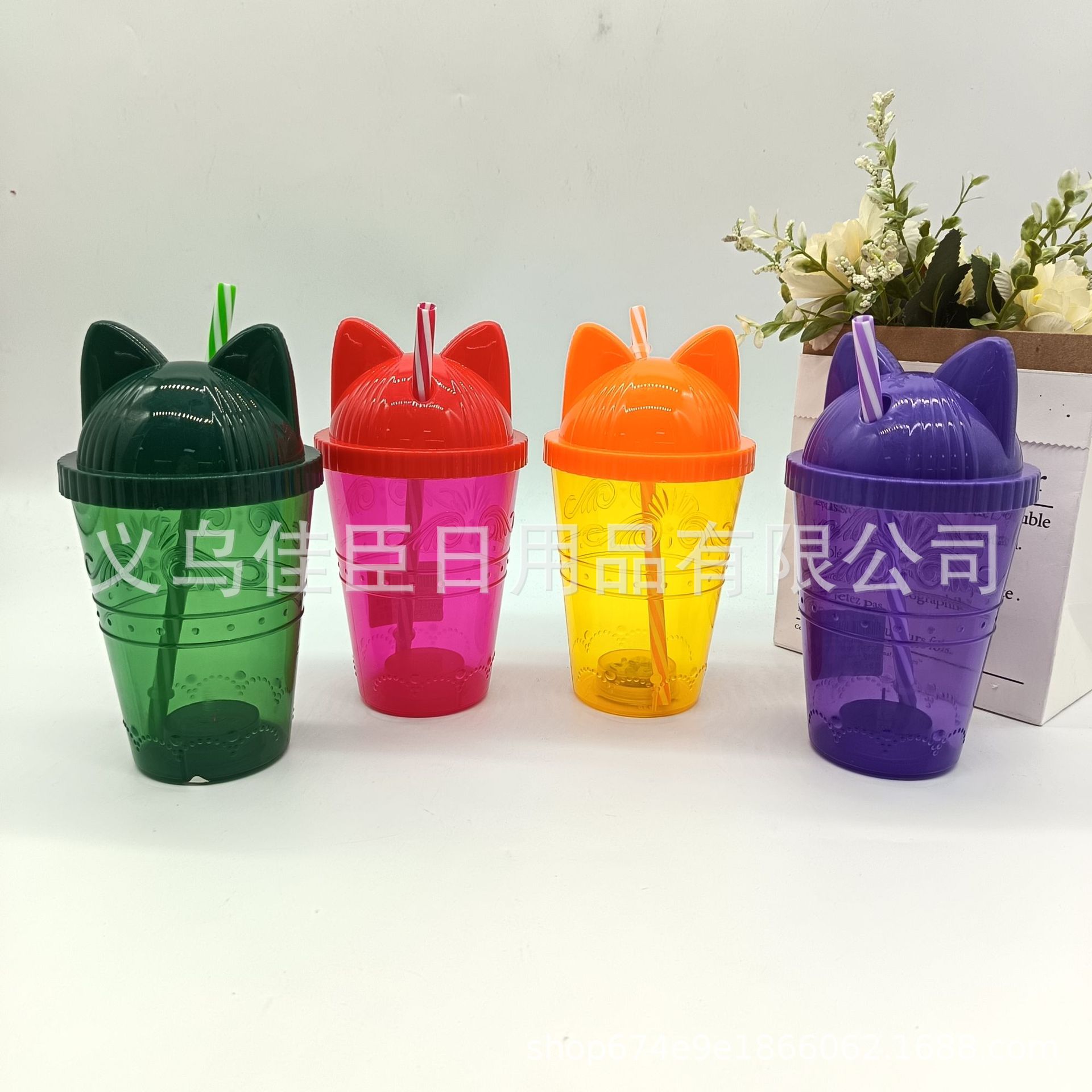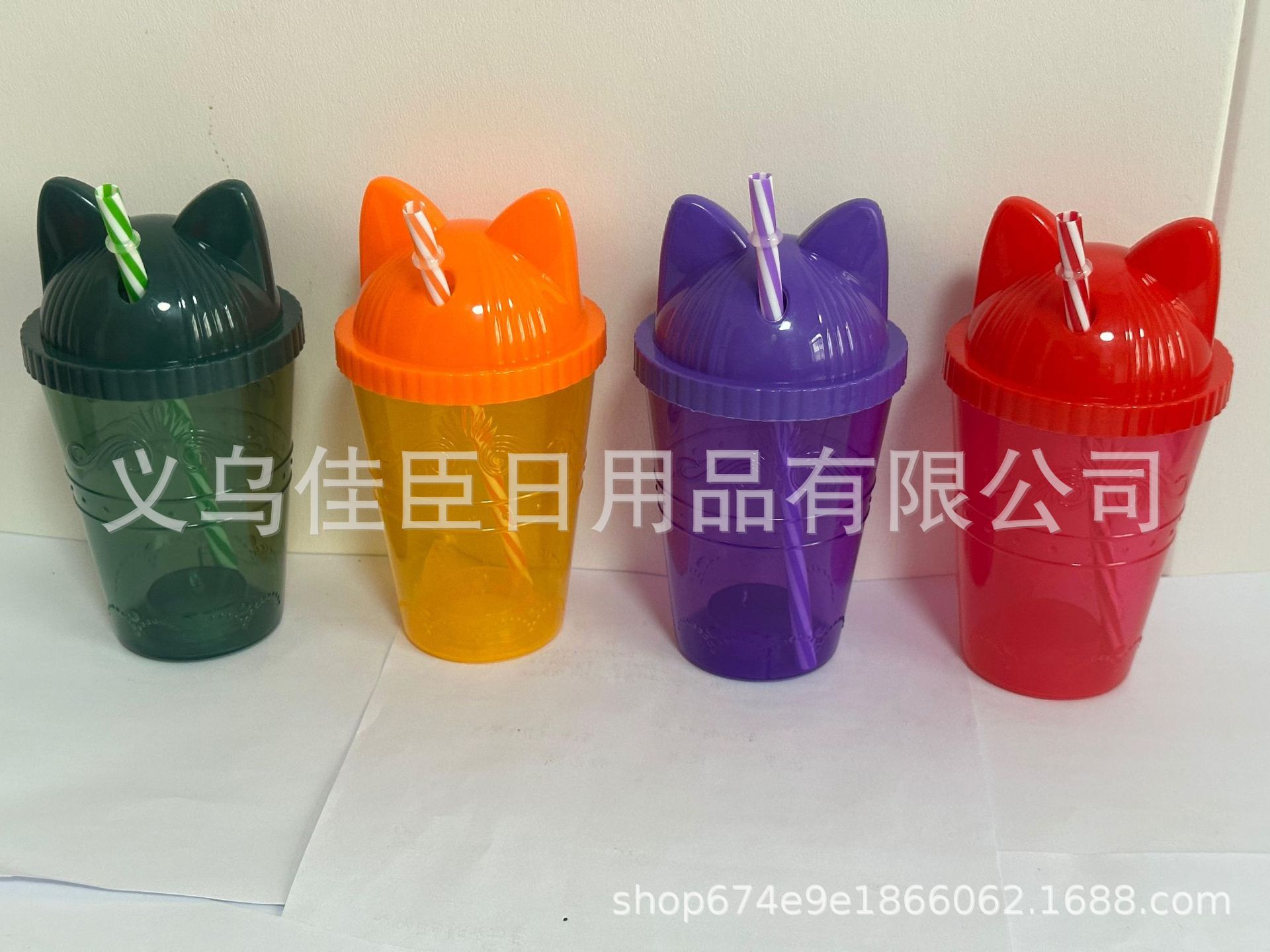 跨境热销猫耳盖子款吸管杯果汁杯夏季饮料杯可爱造型儿童学生水杯