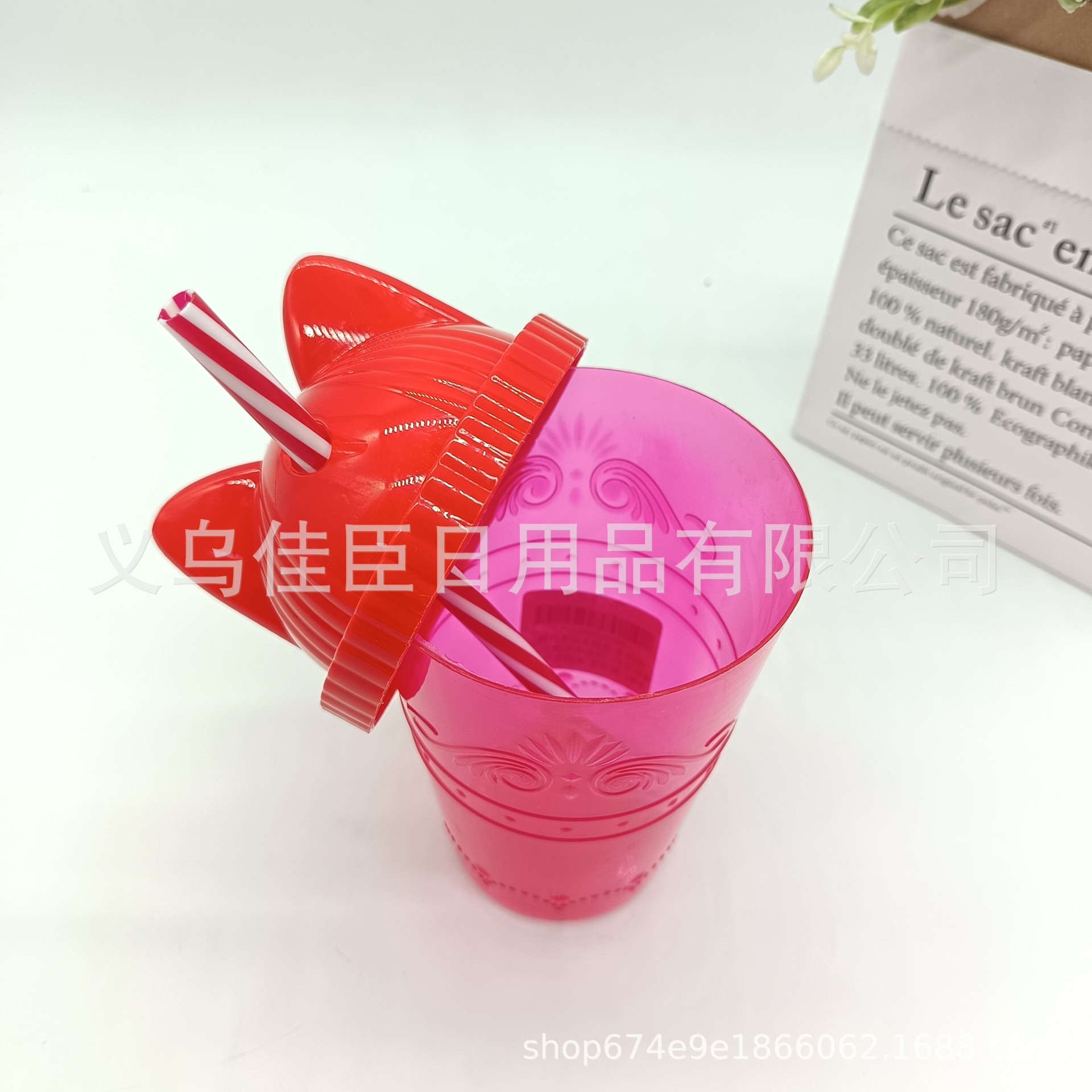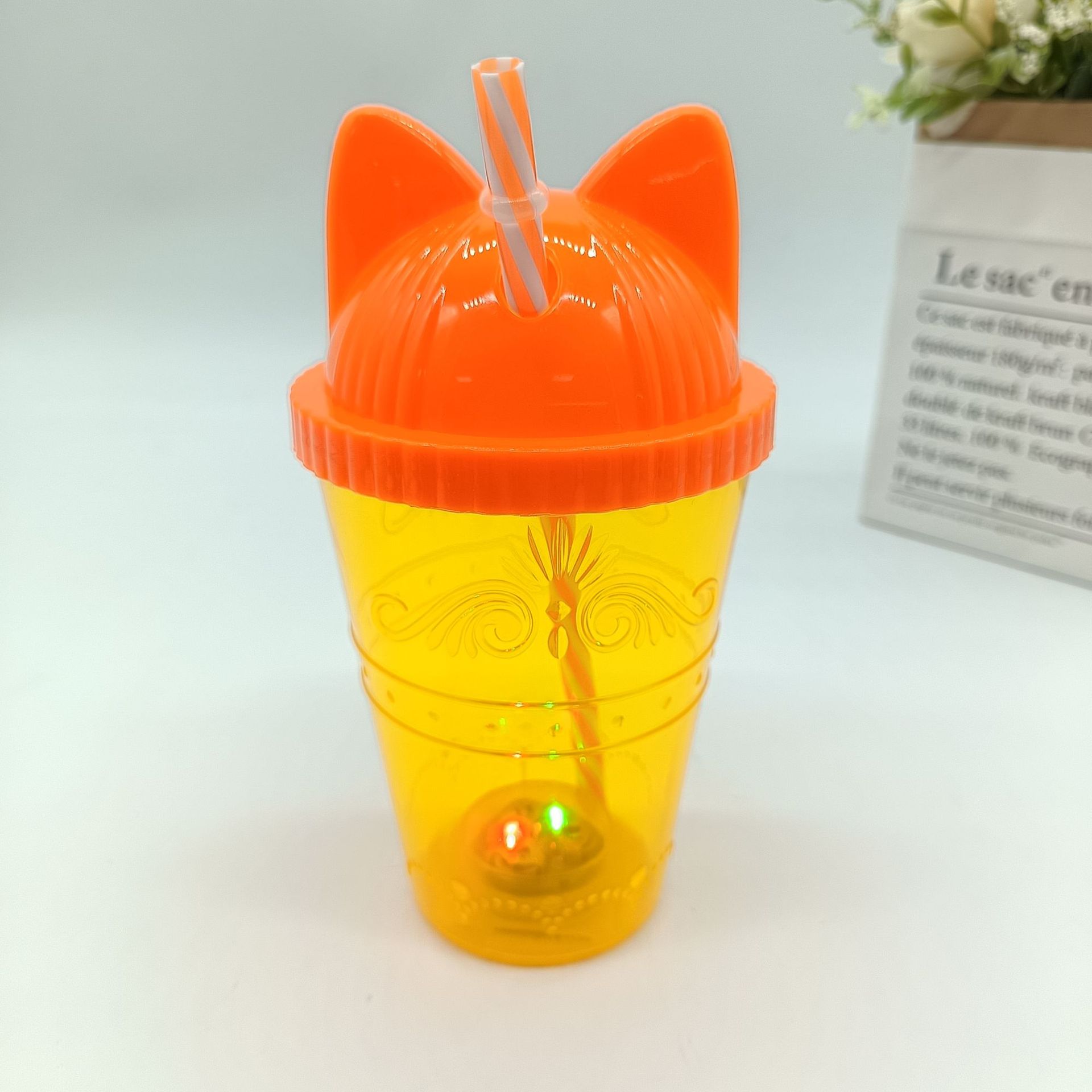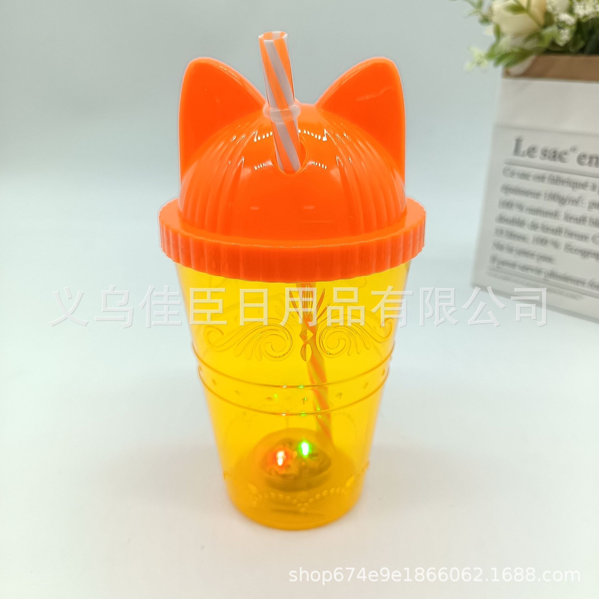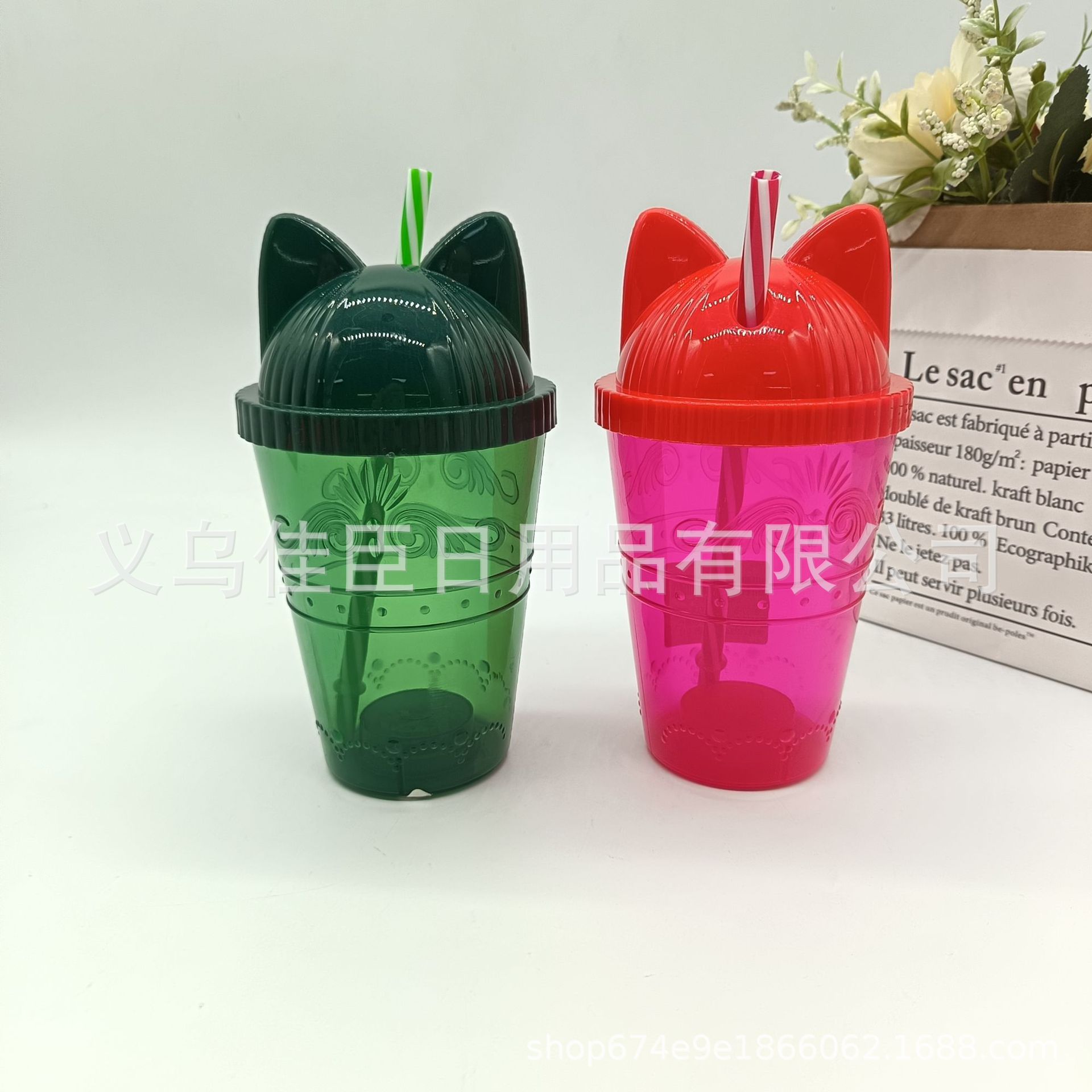 跨境热销猫耳盖子款吸管杯果汁杯夏季饮料杯可爱造型儿童学生水杯