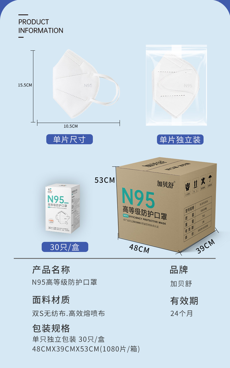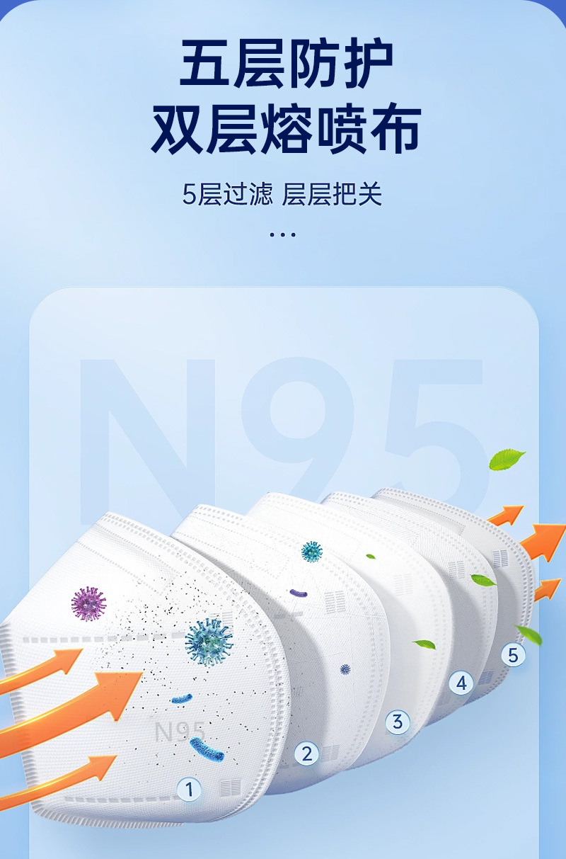 N95成人一次性五层3D立体防护口罩独立包装30只盒装加厚厂家批发