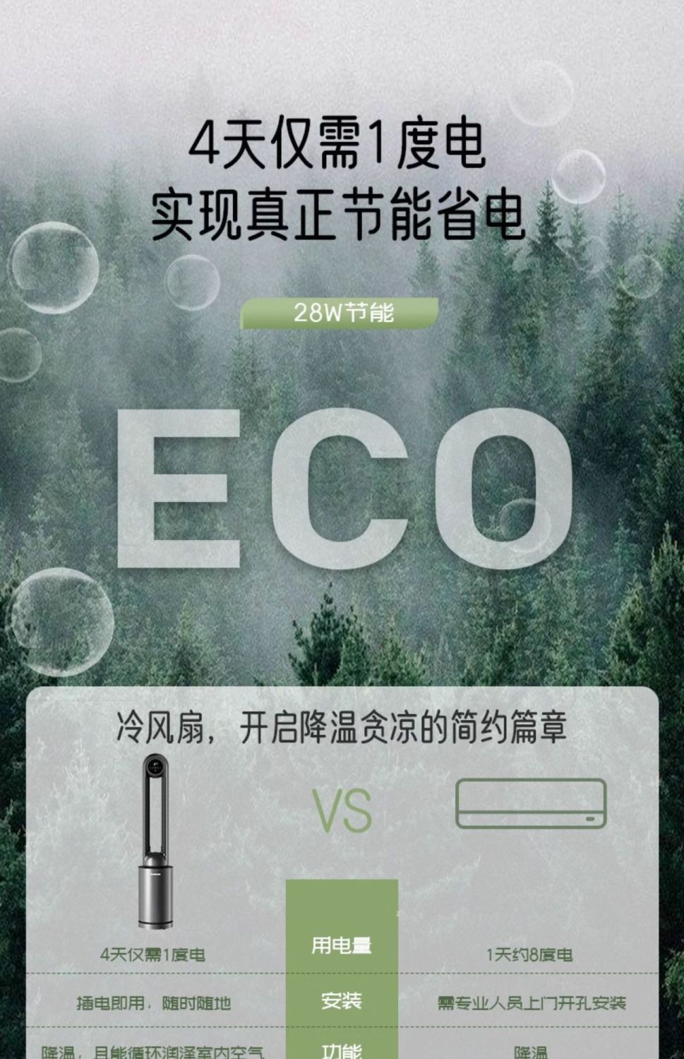 无叶空调扇制冷风扇立式家用冷风机移动单冷塔式水冷小型空调