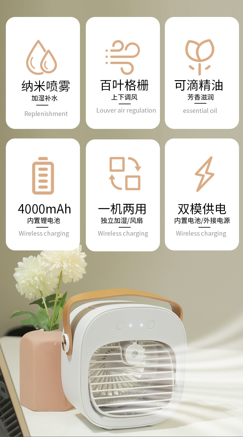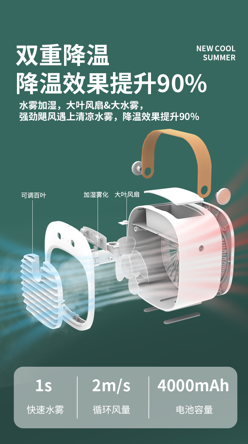 新款冷风机USB喷雾制冷家用便携充电空调扇迷你手提桌面水冷风扇