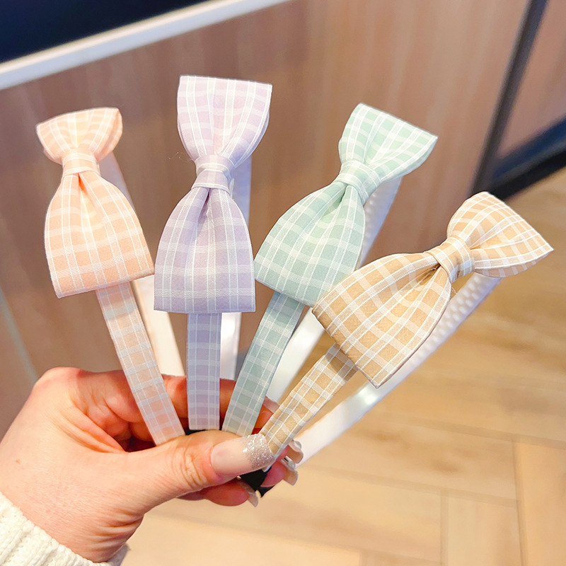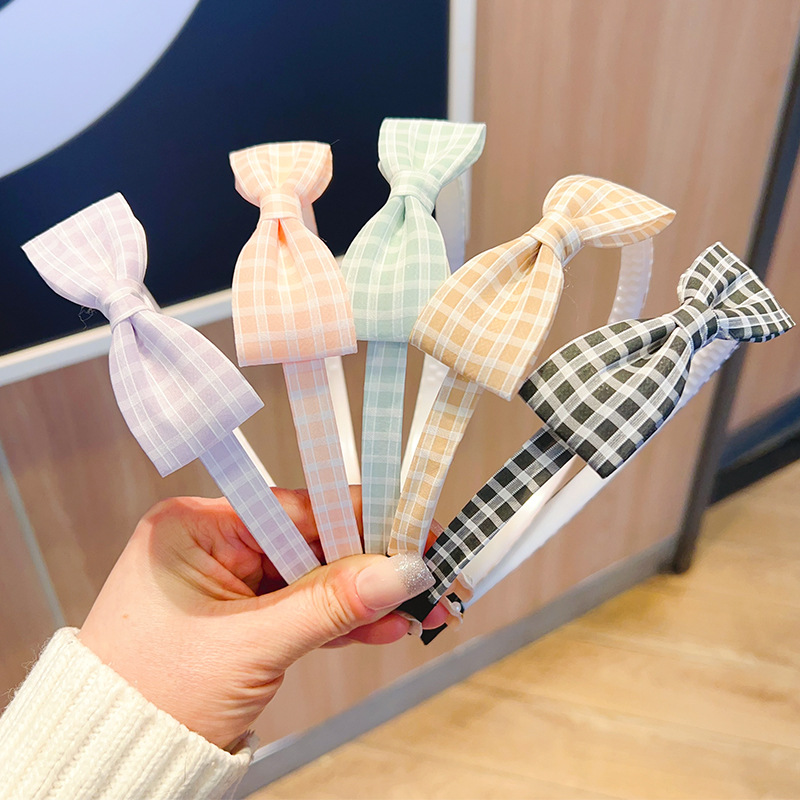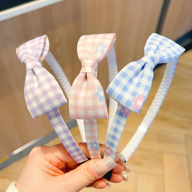 儿童发箍夏季公主布艺格子蝴蝶结头箍女童可爱防滑不勒头碎发发卡