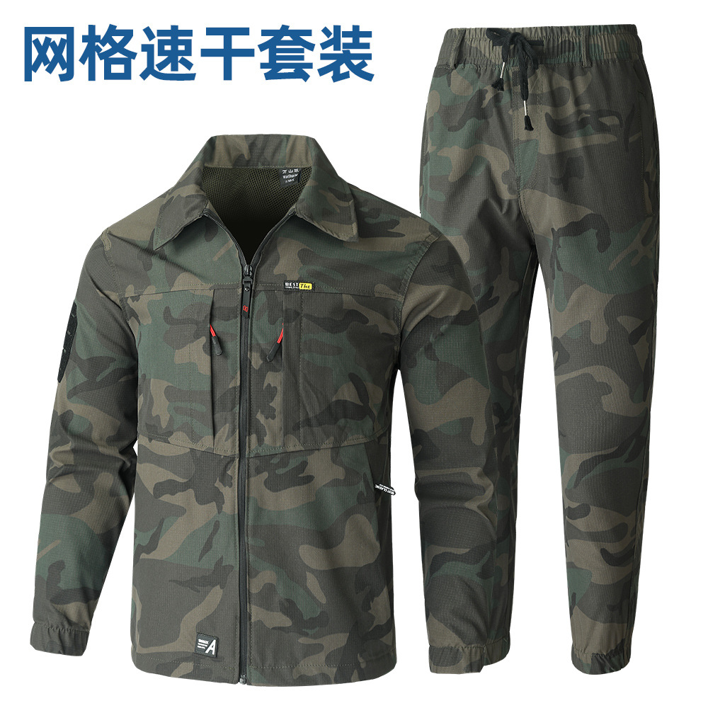 夏季弹力套装速干吸汗工作服空调凉爽劳保工作服耐磨透气工装