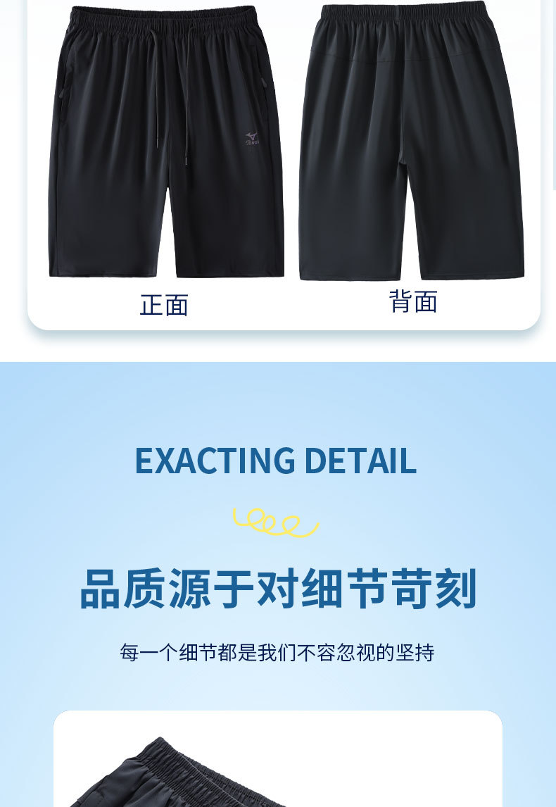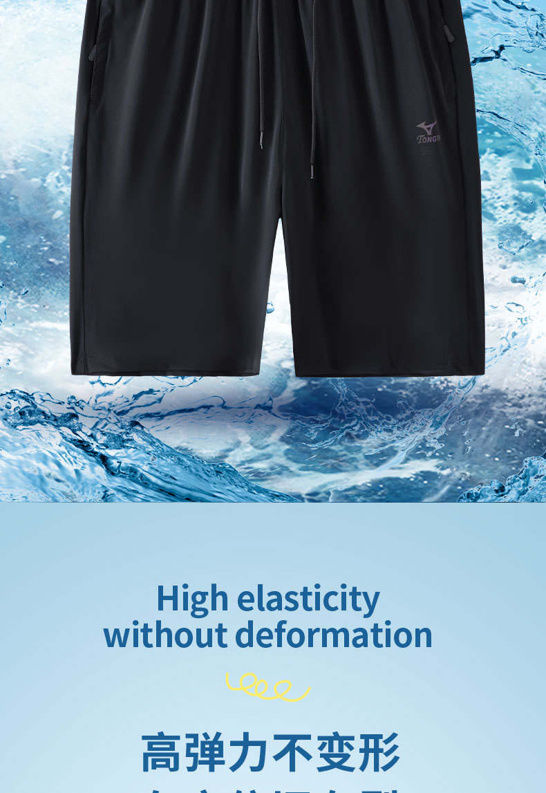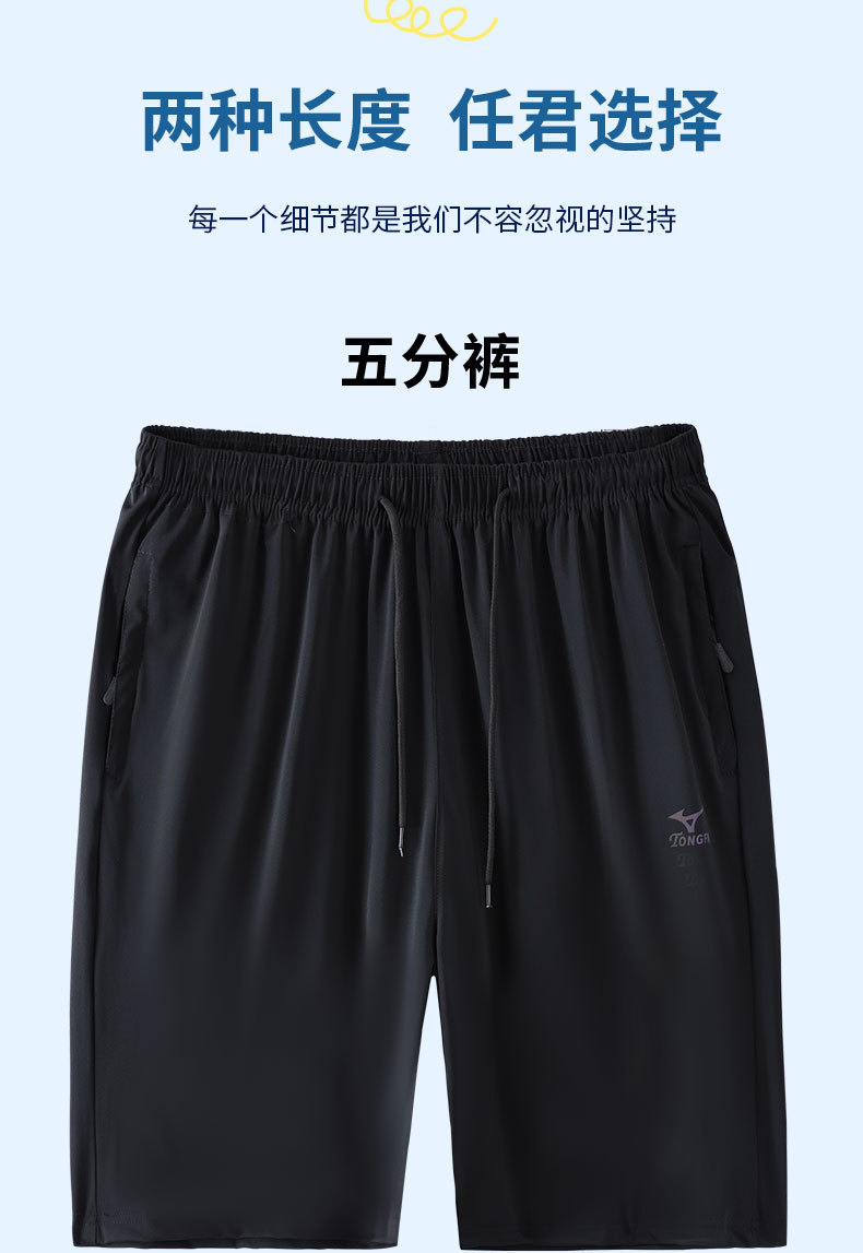 夏季男士冰丝高弹力短裤休闲大裤衩透气速干沙滩裤加肥休闲薄款