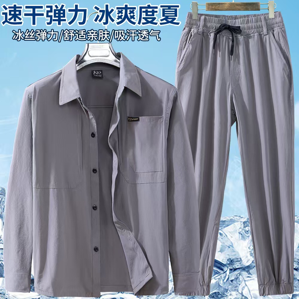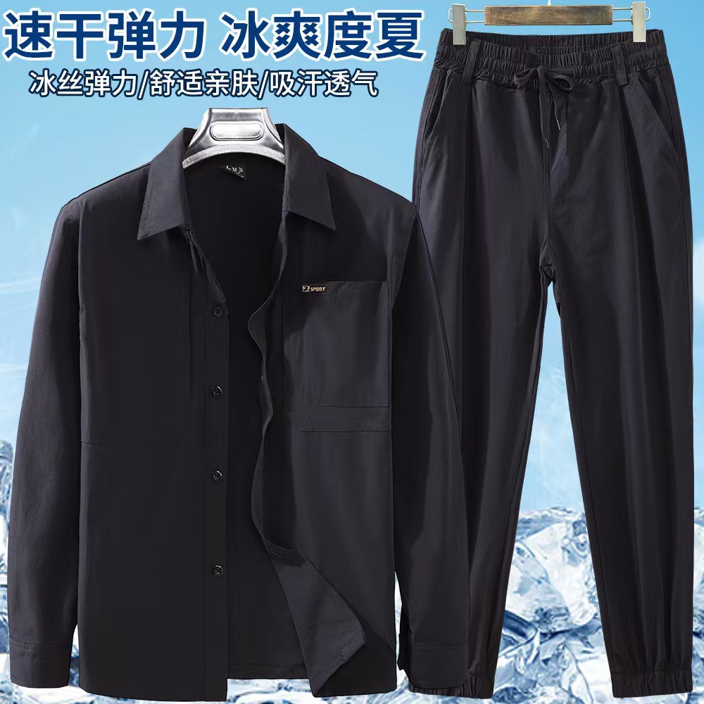 男士夏季速干套装弹力透气休闲户外车间透气轻薄劳保宽松工作服