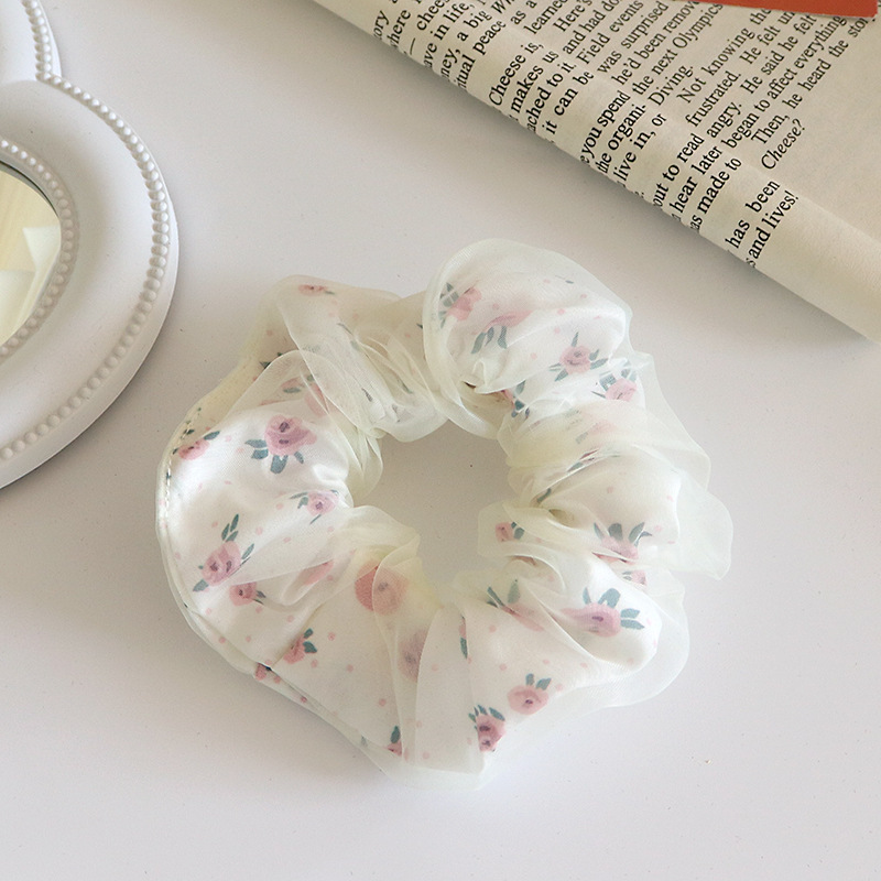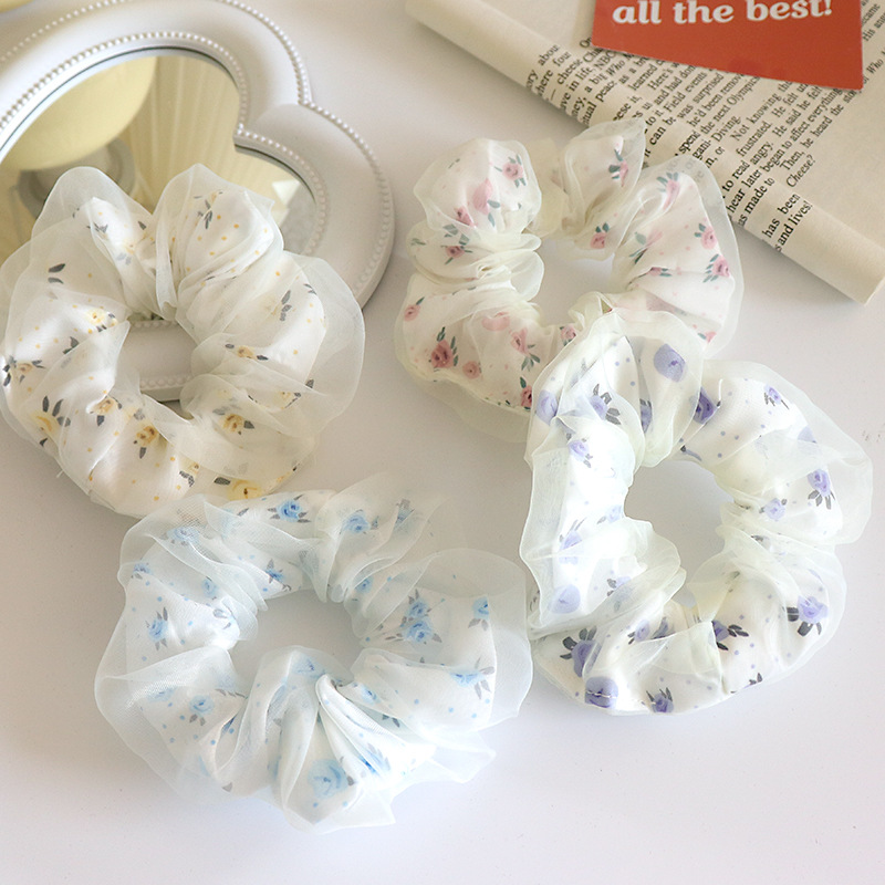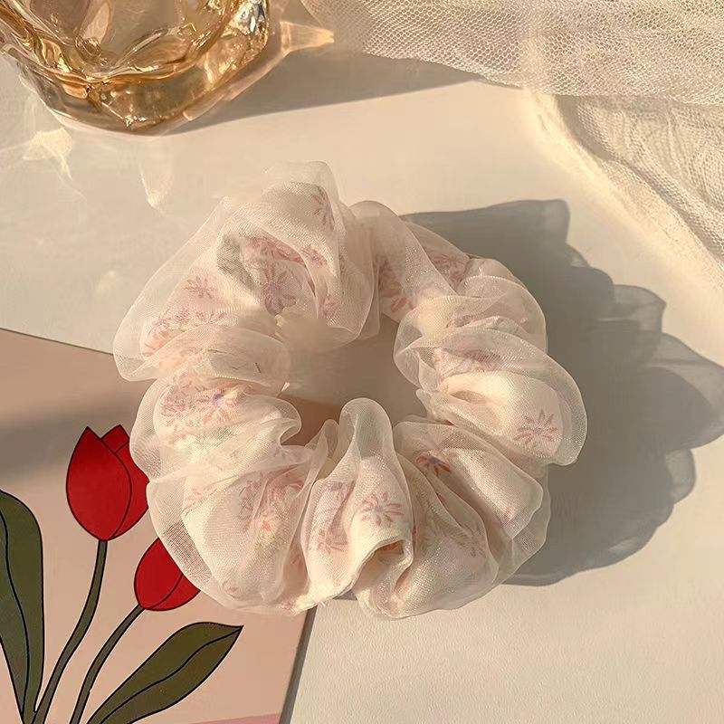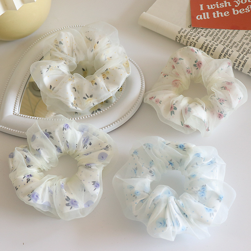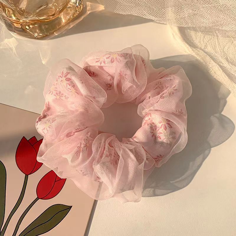夏季时尚网纱丸子头大肠发圈女超大号花朵超仙发绳扎马尾头绳发饰