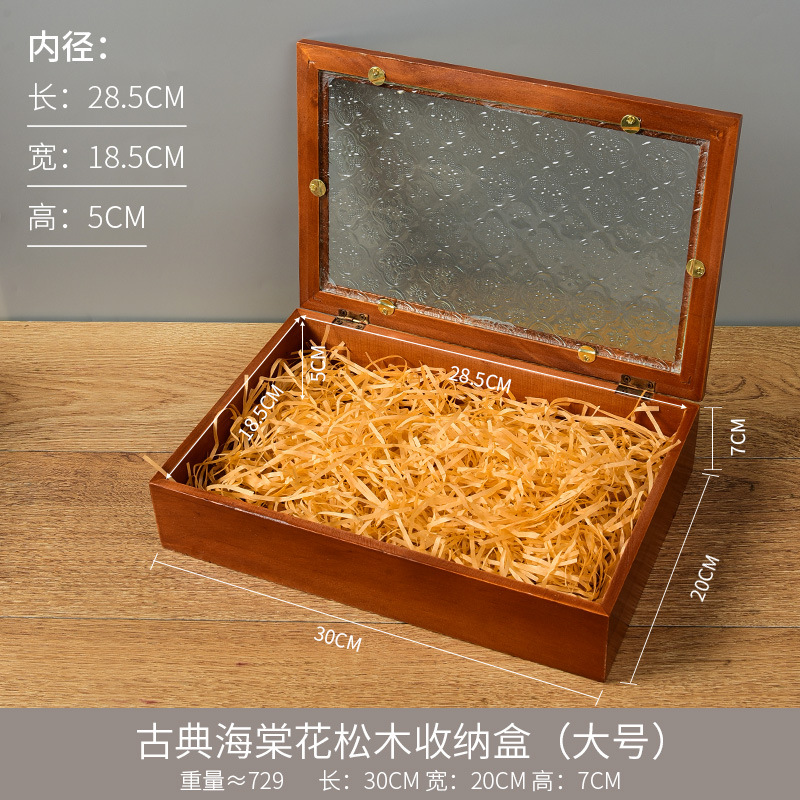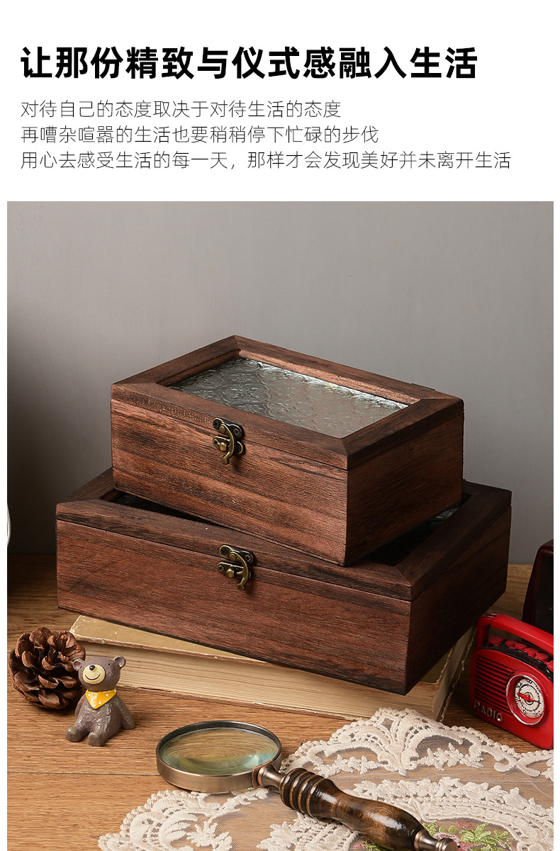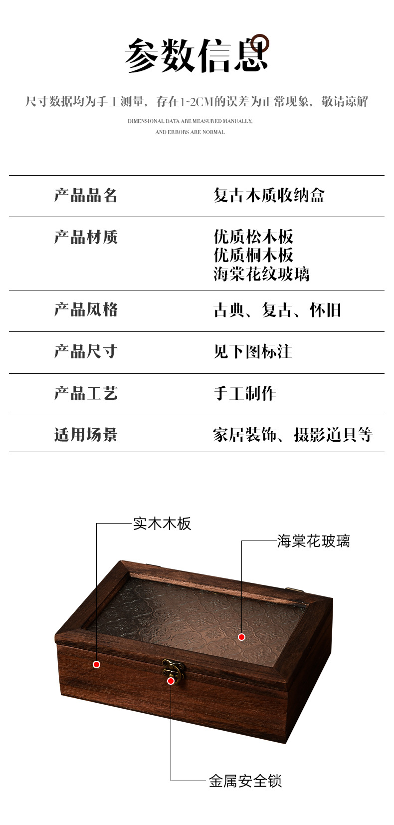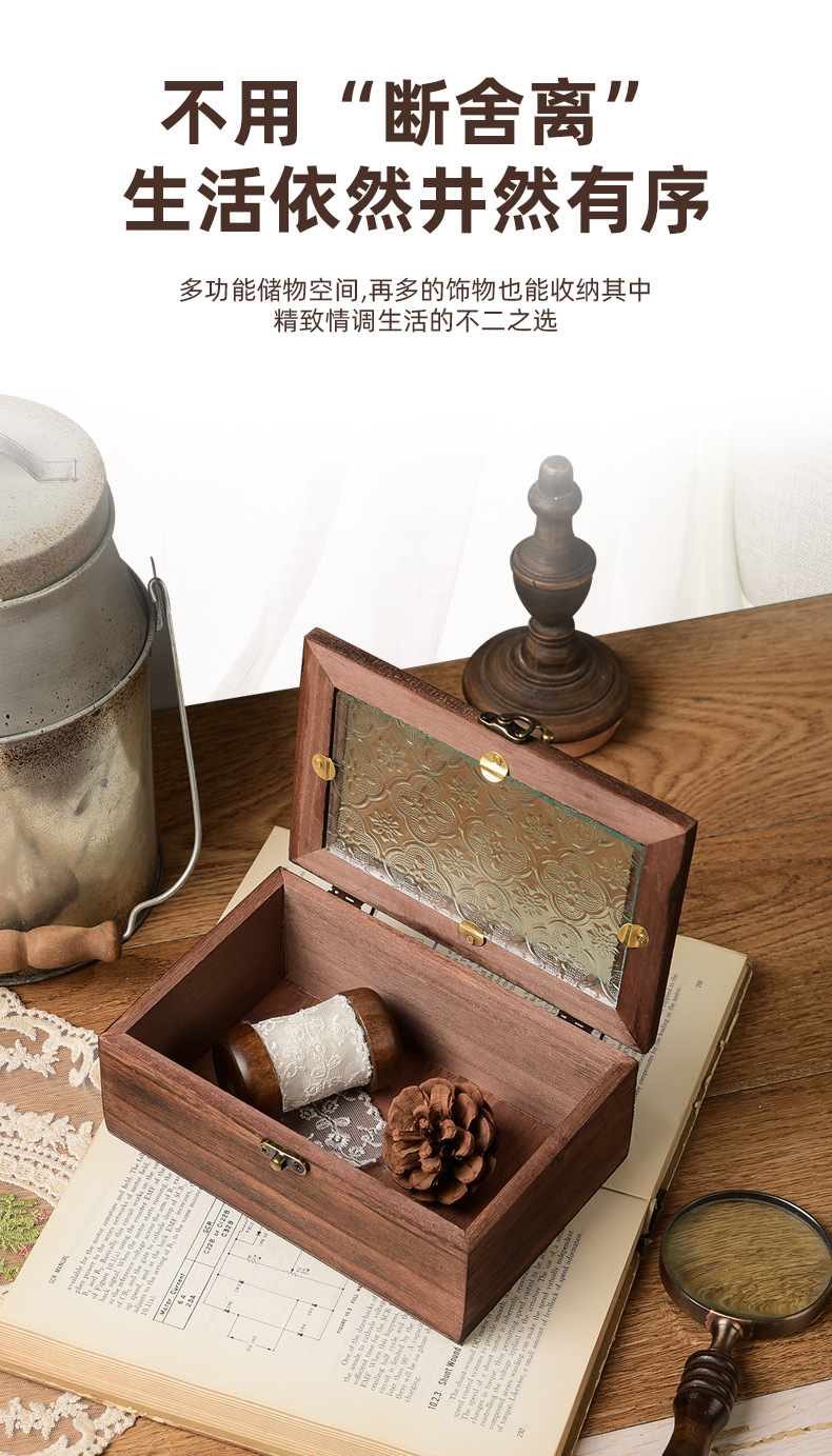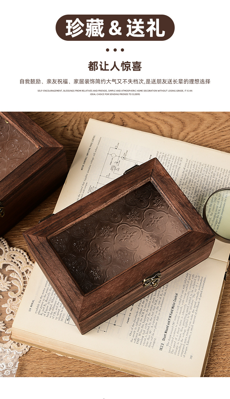 木质海棠花玻璃复古柜 化妆品杂物收纳柜子带抽屉北欧风桌面收纳