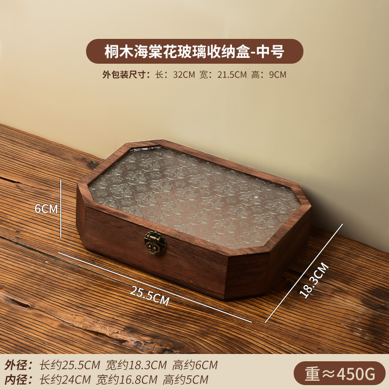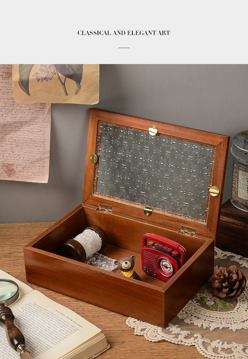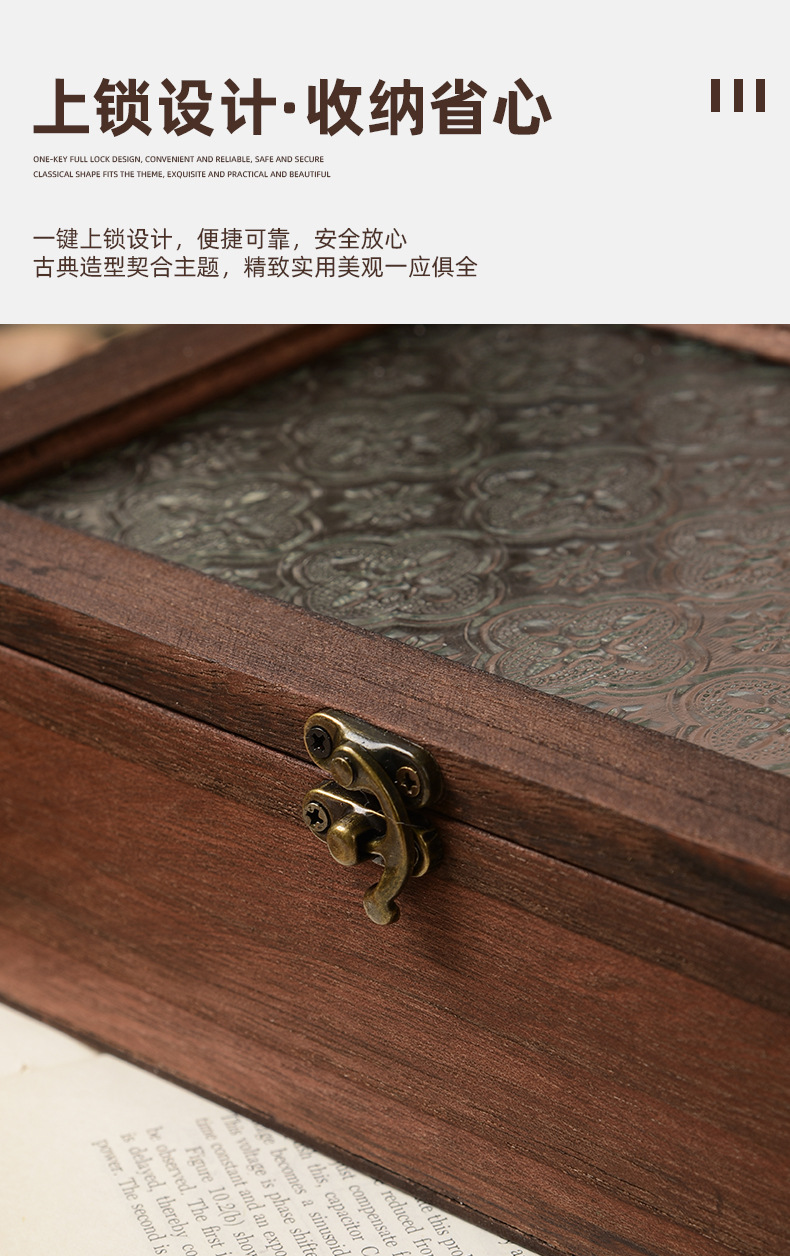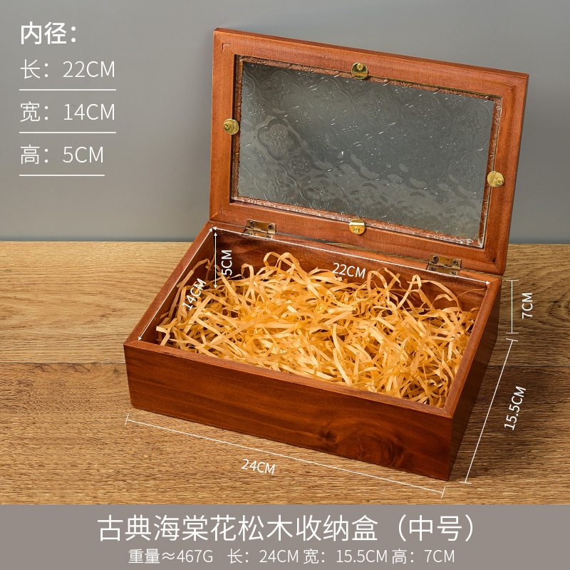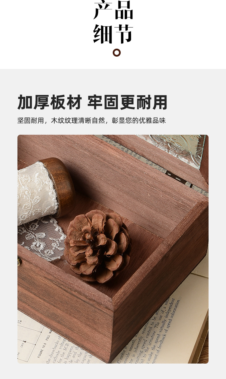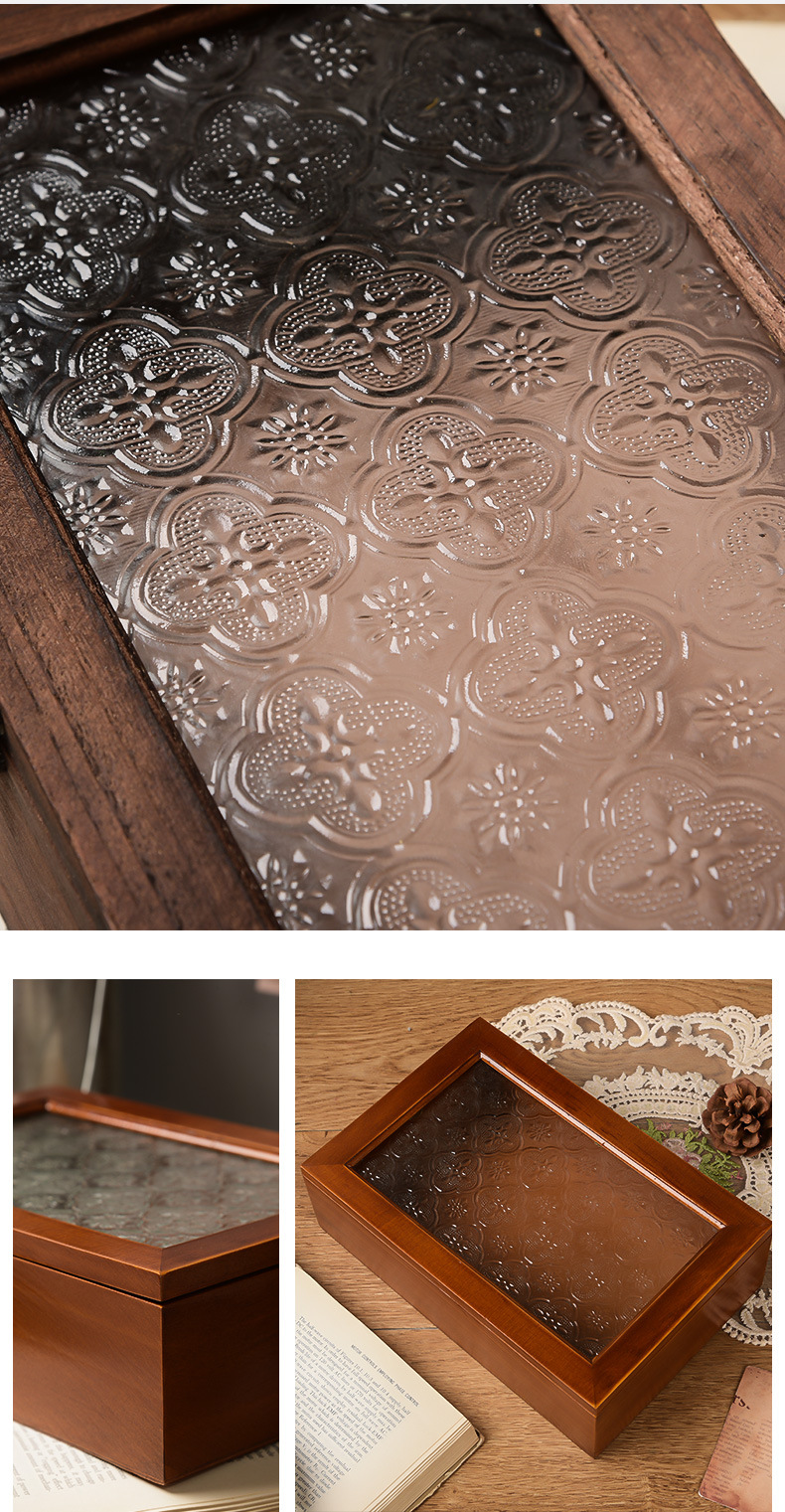 木质海棠花玻璃复古柜 化妆品杂物收纳柜子带抽屉北欧风桌面收纳