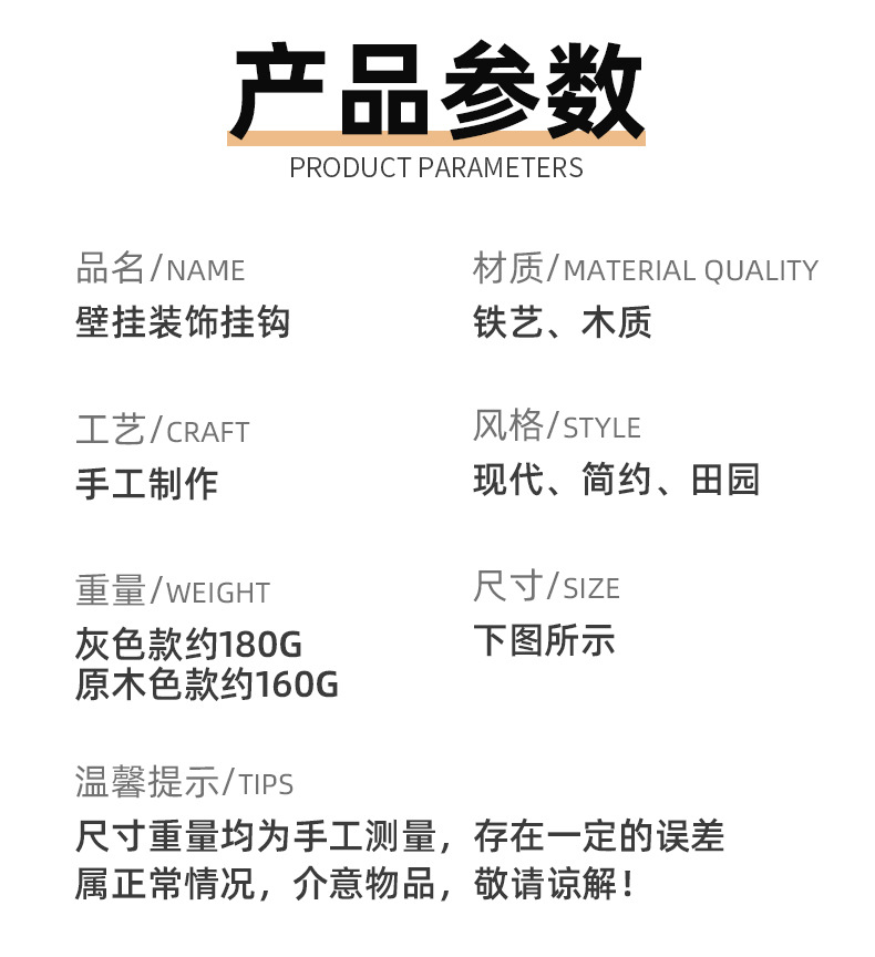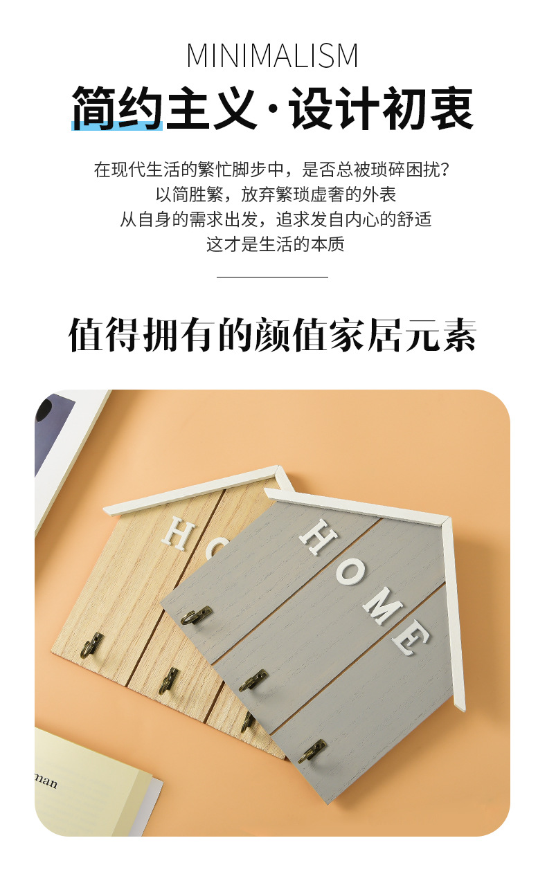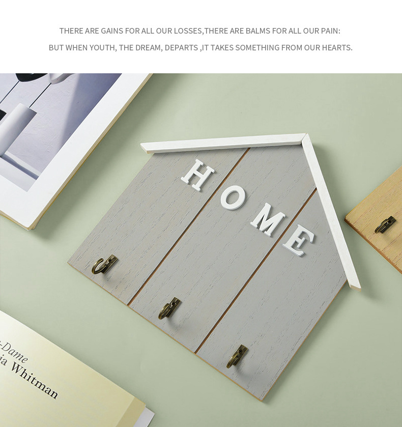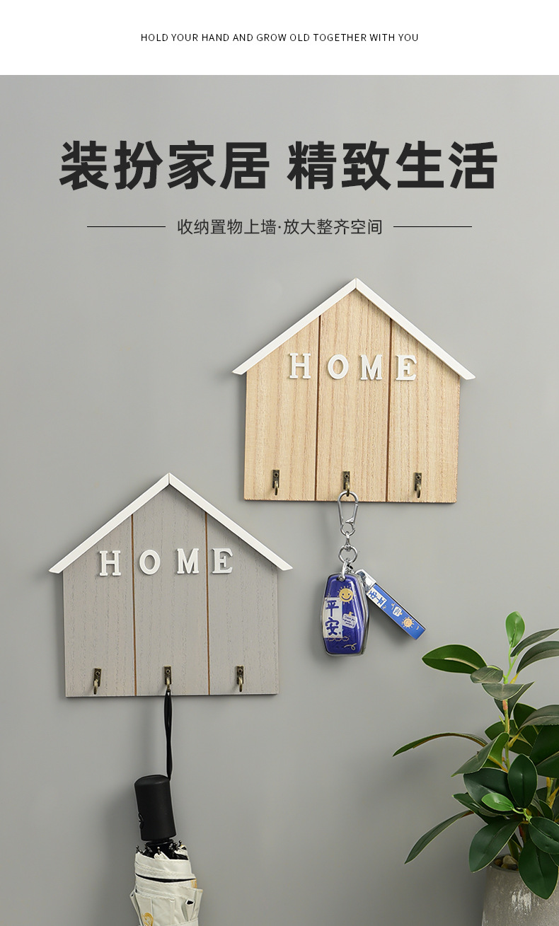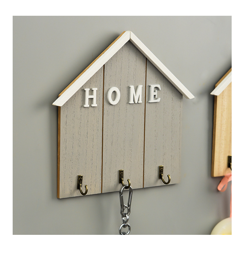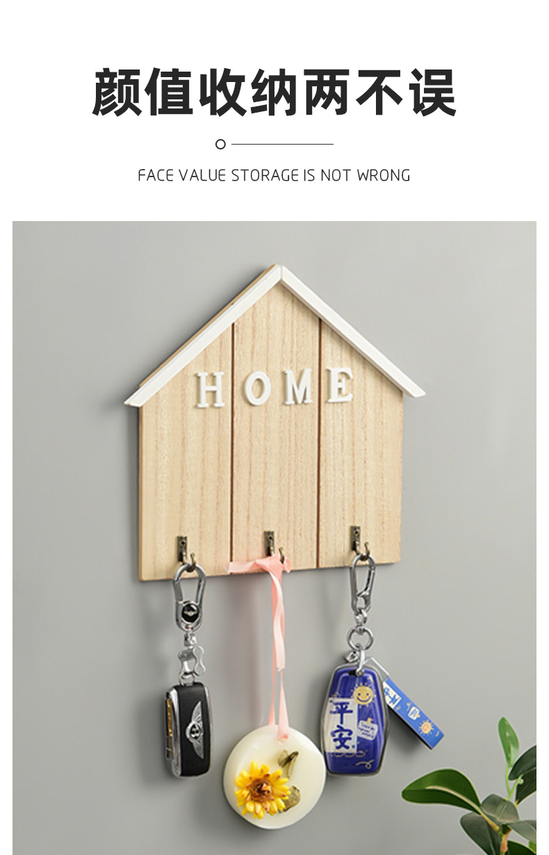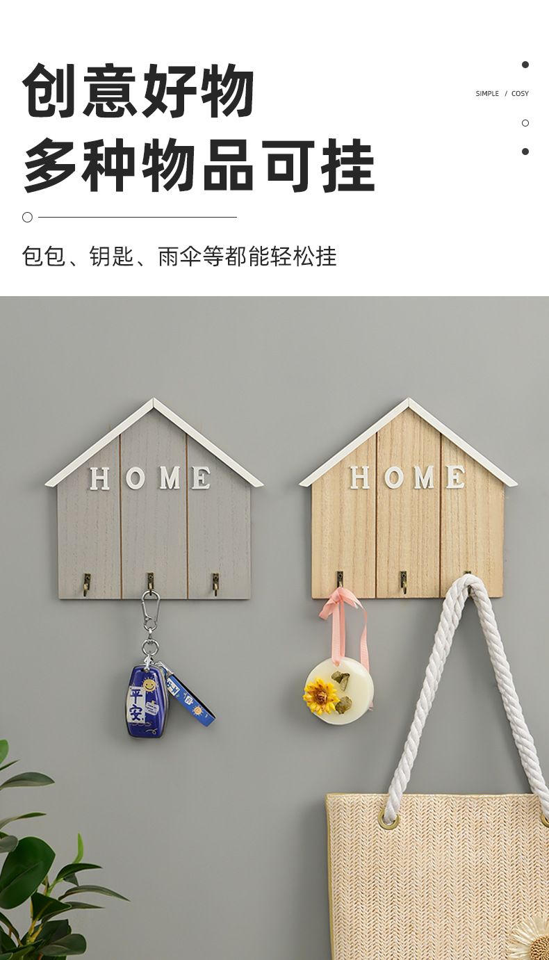 木质免打孔房子款门后墙上衣帽挂钩创意家居卧室墙面装饰钩
