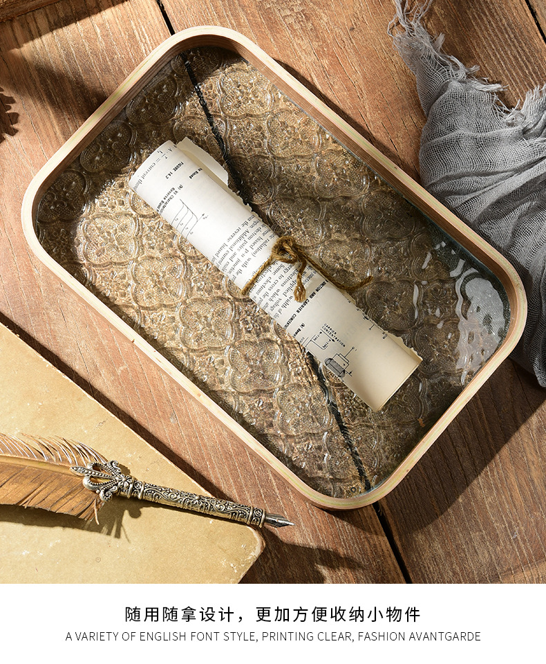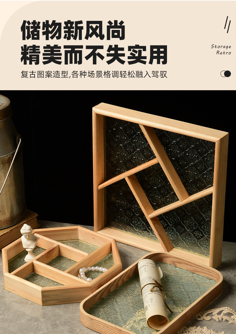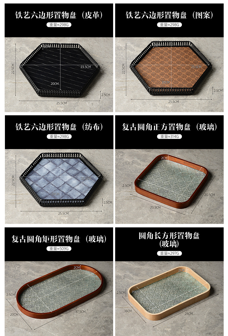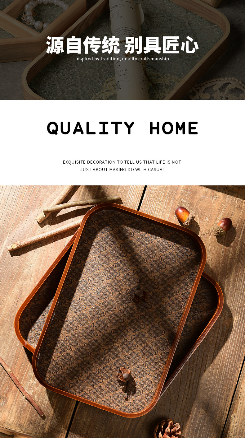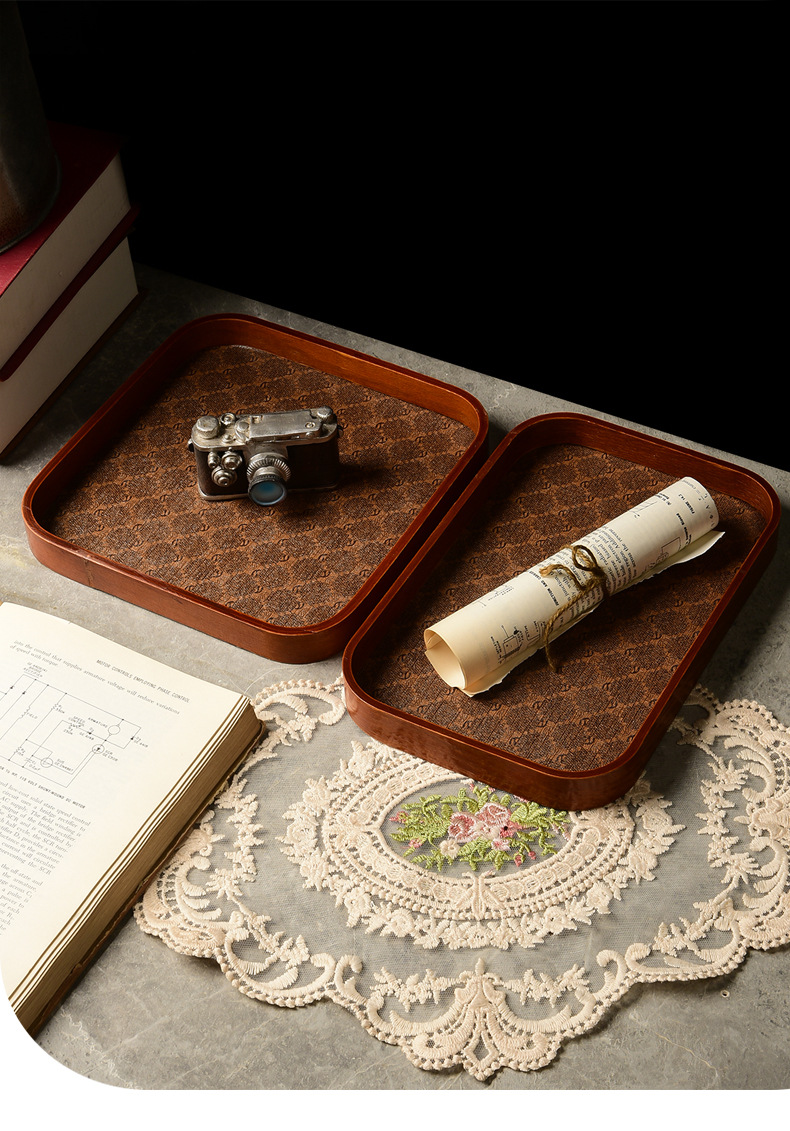 中式网红复古桌面首饰摆件钥匙玄关收纳盒轻奢皮革中式茶盘托盘家
