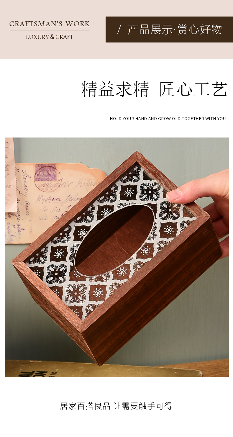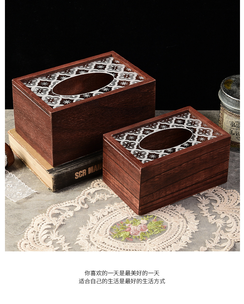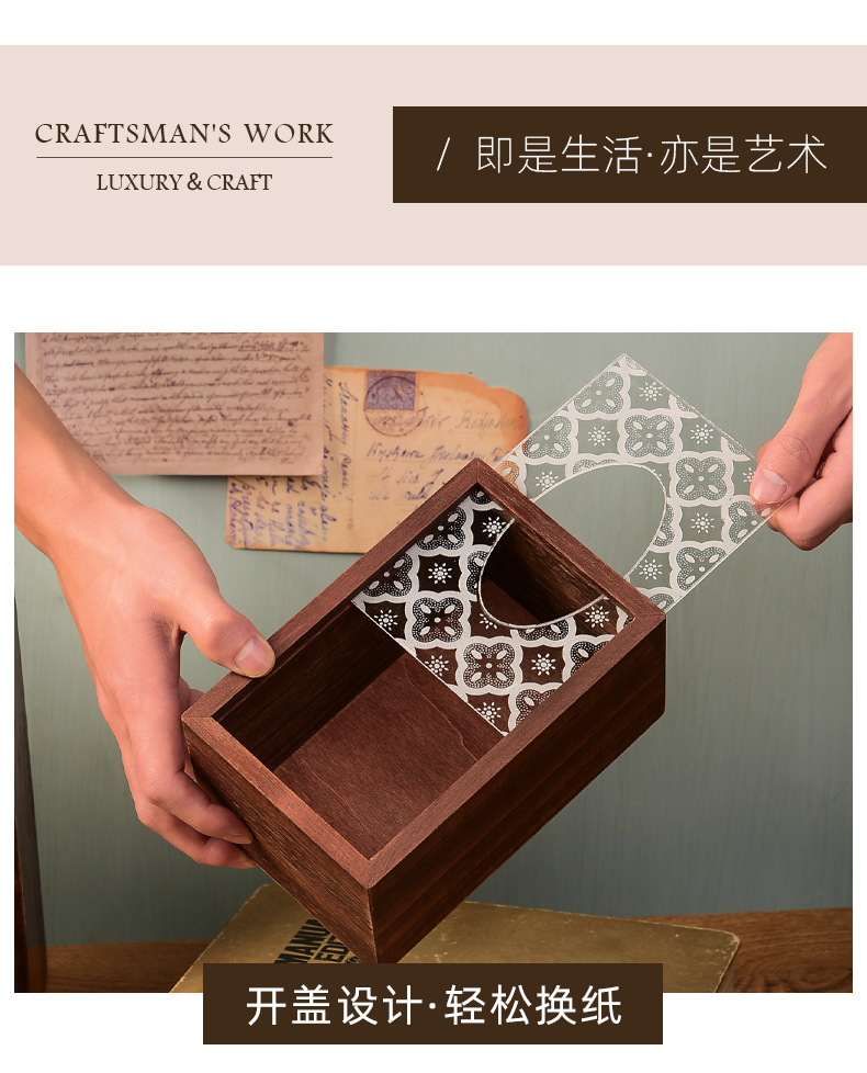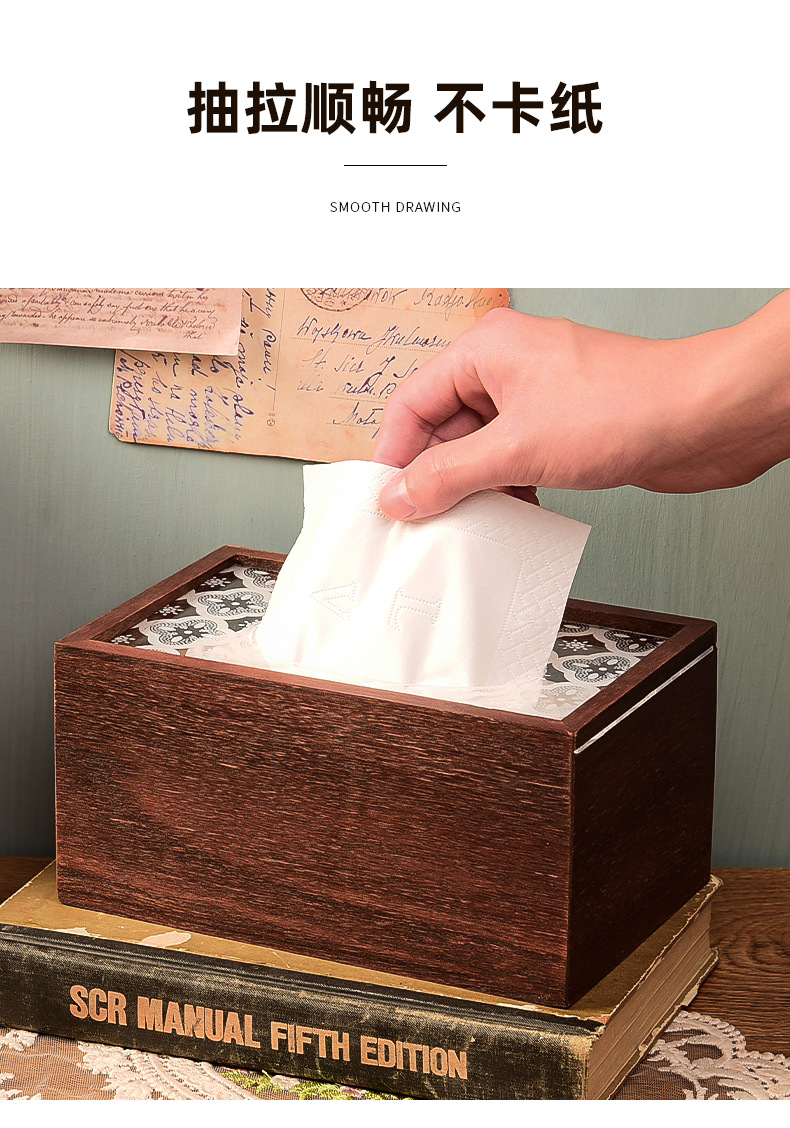 复古纸巾盒创意简约现代家用客厅餐桌餐厅实木抽纸盒收纳餐巾纸盒