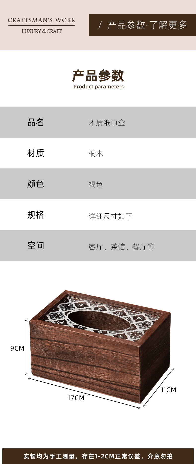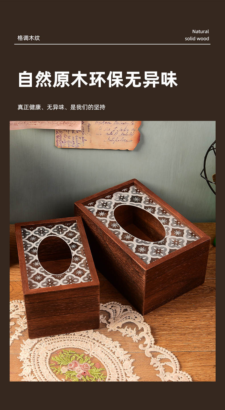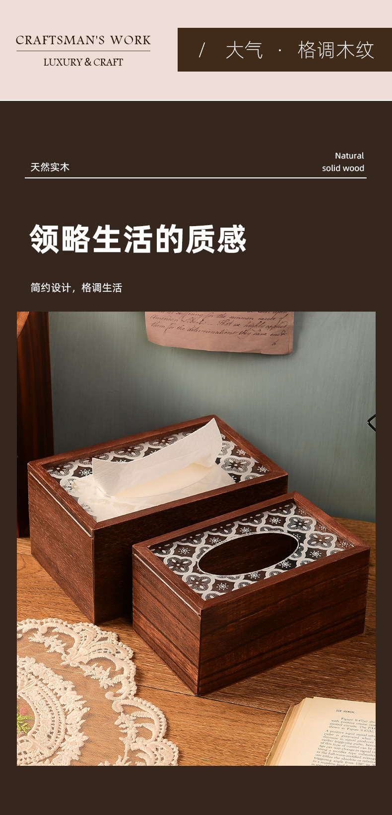 复古纸巾盒创意简约现代家用客厅餐桌餐厅实木抽纸盒收纳餐巾纸盒