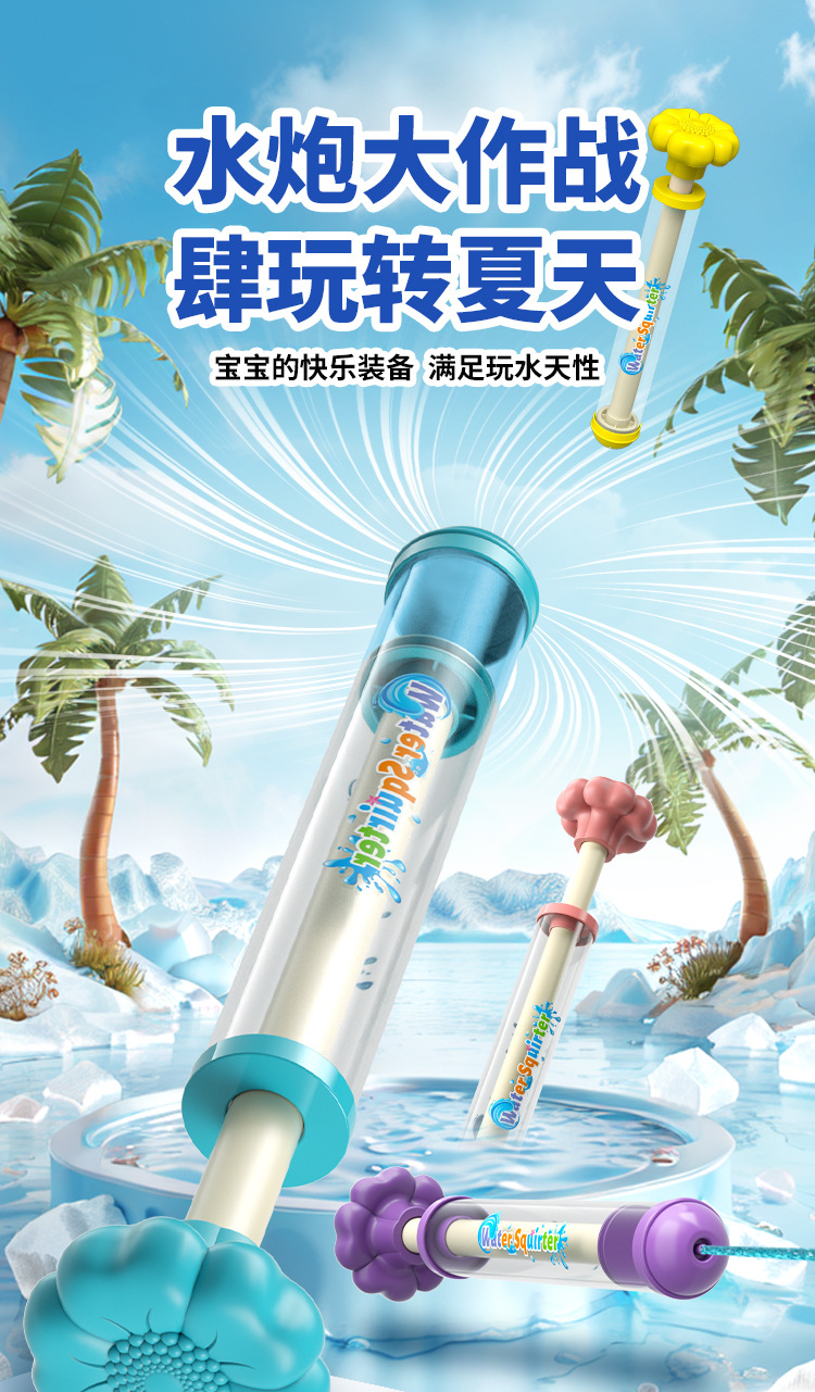 跨境抽拉式喷水枪打水仗夏季沙滩旋转烟花滋水抽恐龙烟花网红水枪