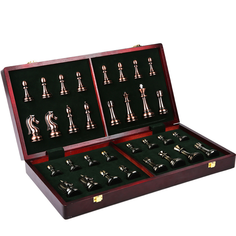 厂家直销 金属国际象棋 高档礼盒套装 复古风金属镀铜色精品棋子
