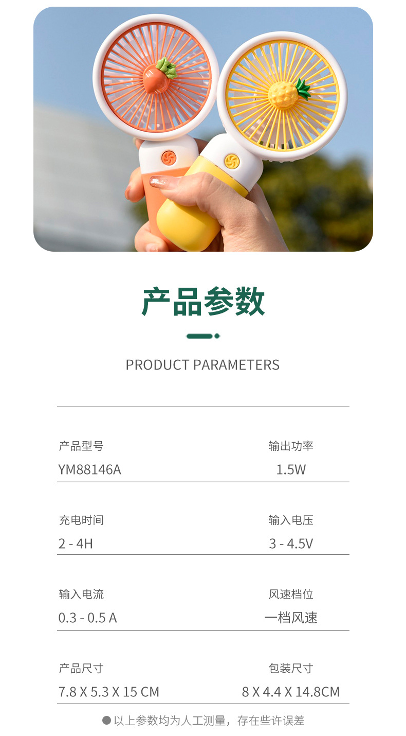 糖果色水果圆形网罩手持支架风扇 手提软硅胶高颜值户外静音风扇