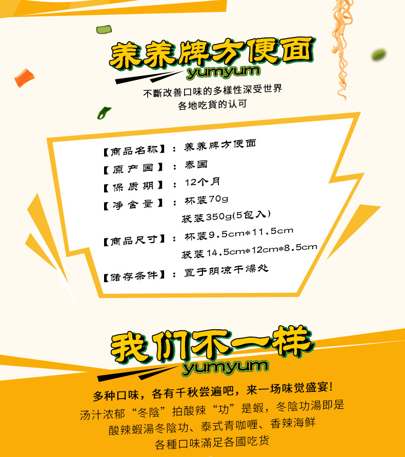 泰国进口泡面养养牌荫功咖喱酸辣虾味浓汤面方便面350g袋装*5小袋
