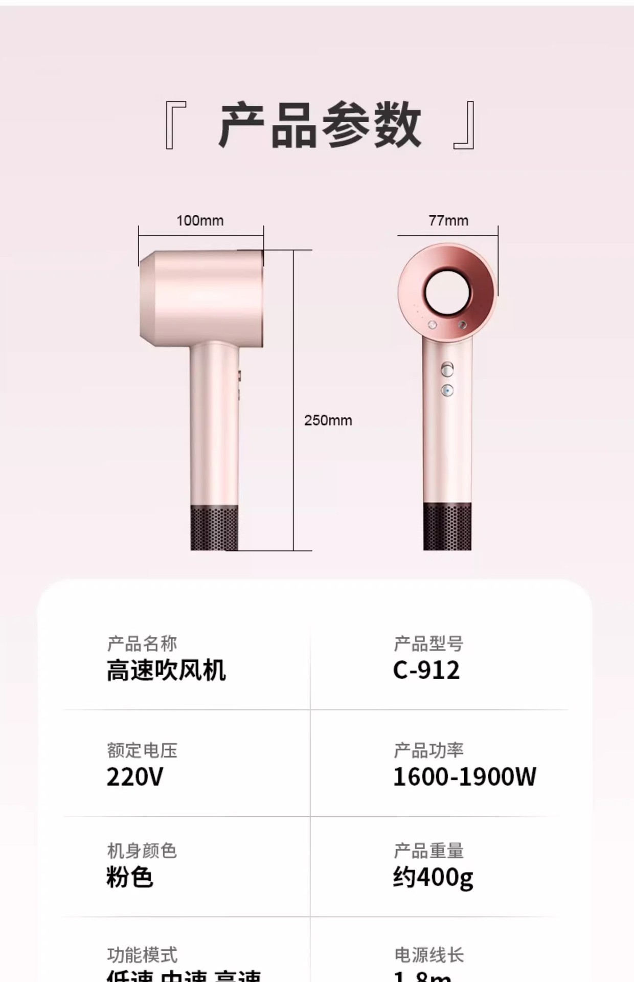 华强北某森顶配高速电吹风机发廊家用大功率负离子无叶中空吹风筒