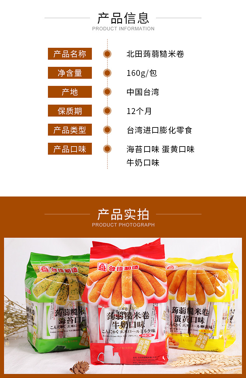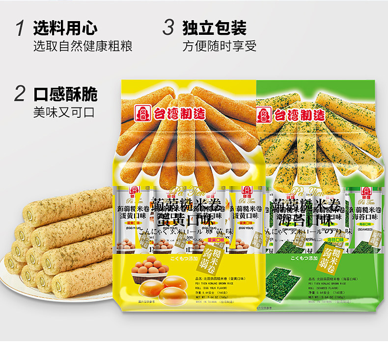 北田糙米卷160g蒟蒻糙米卷代餐99能量棒蛋黄芝士味儿童零食品