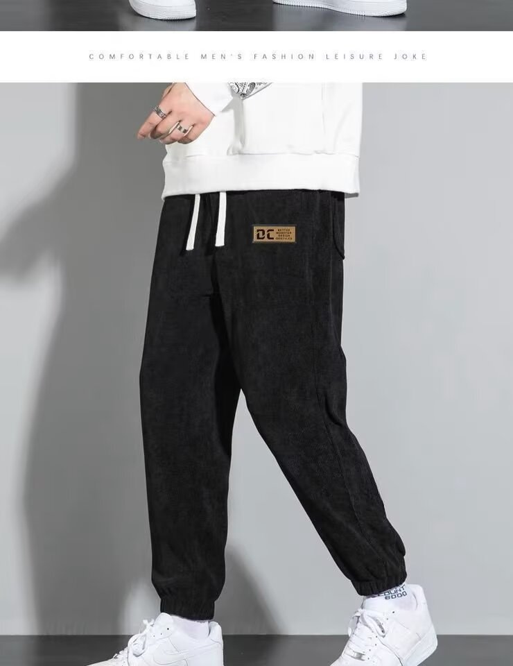 灯芯绒加绒加厚休闲裤男士裤子长裤卫裤秋冬男条绒运动大码束脚裤