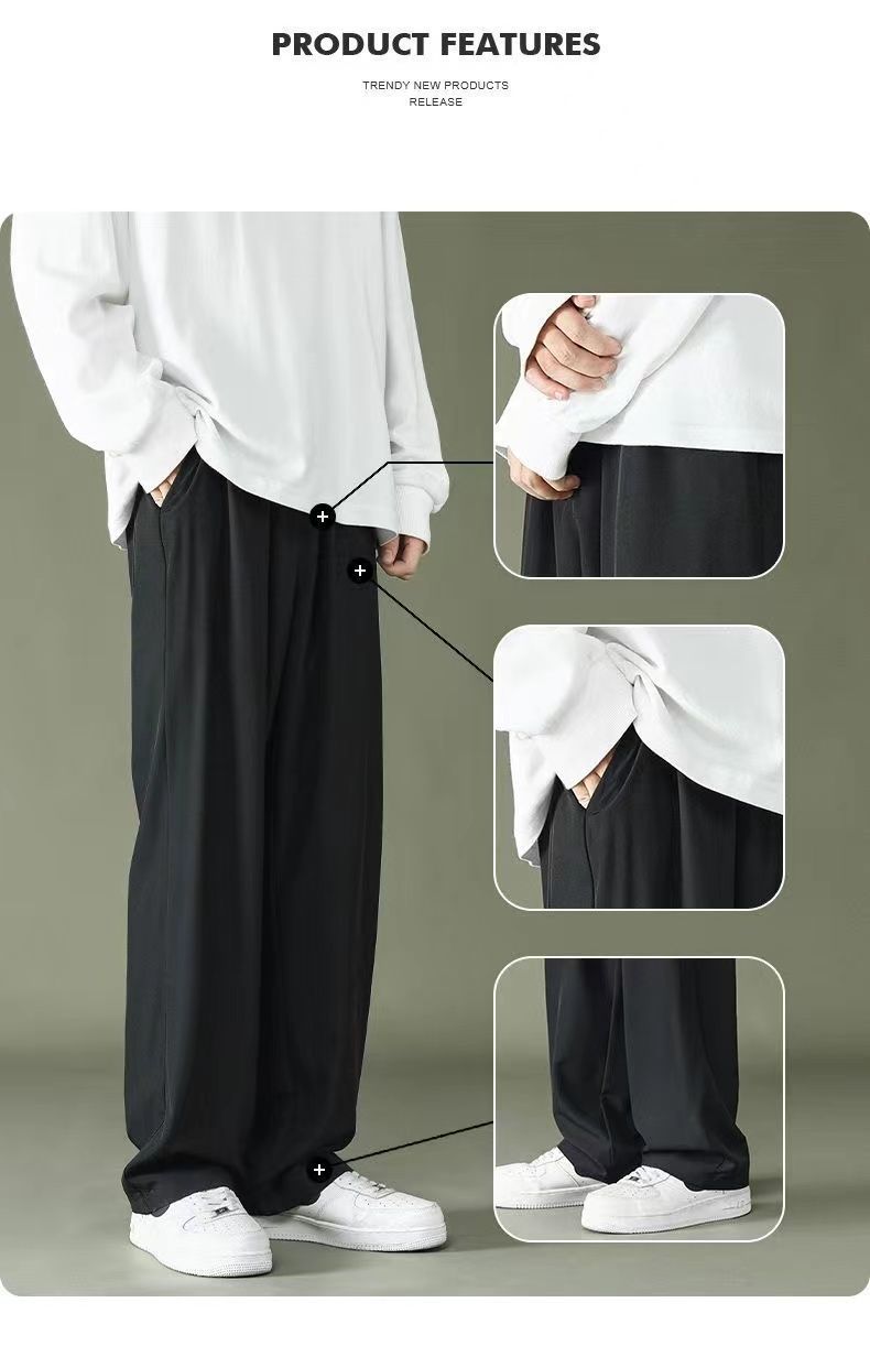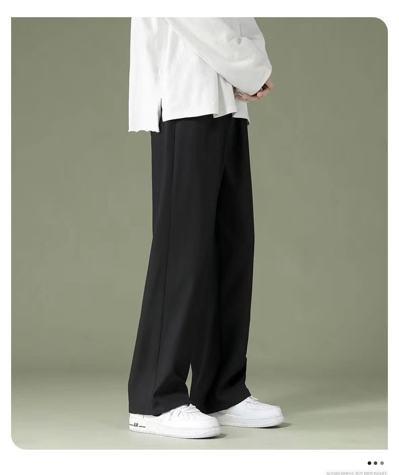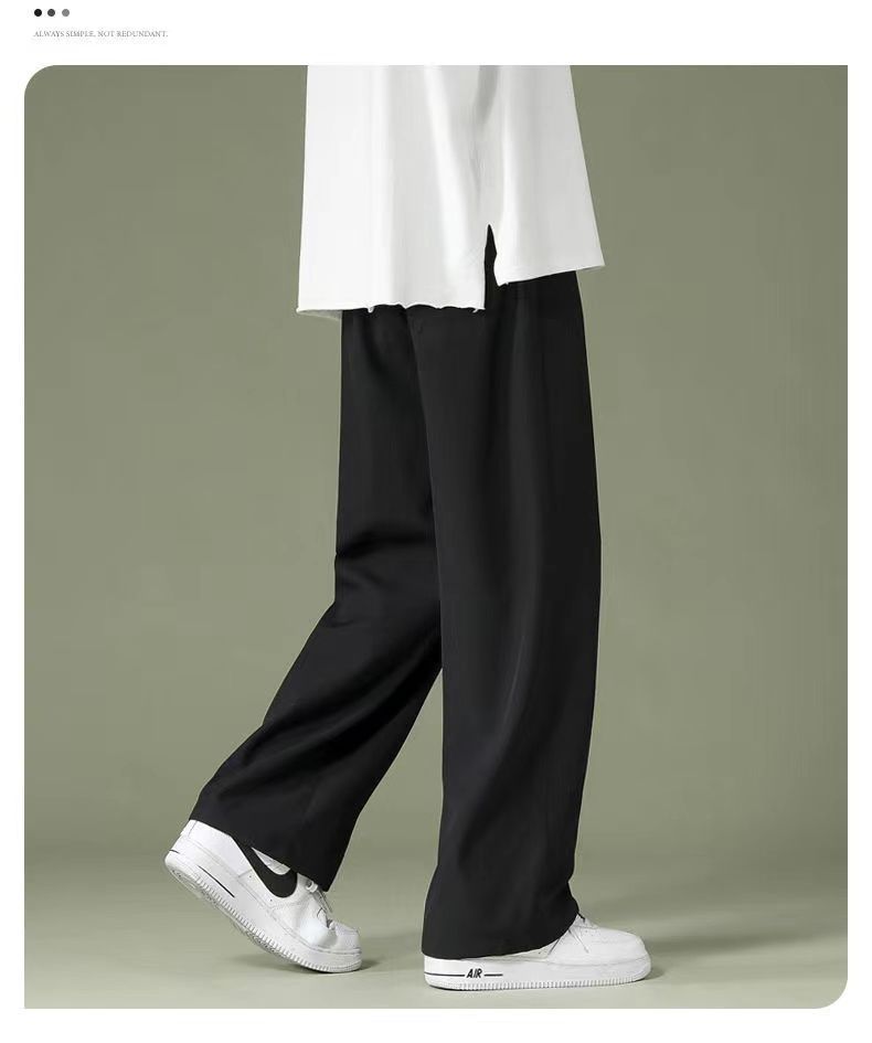 冰丝直筒裤子男士夏季薄款速干男裤潮牌夏天垂感阔腿运动休闲长裤